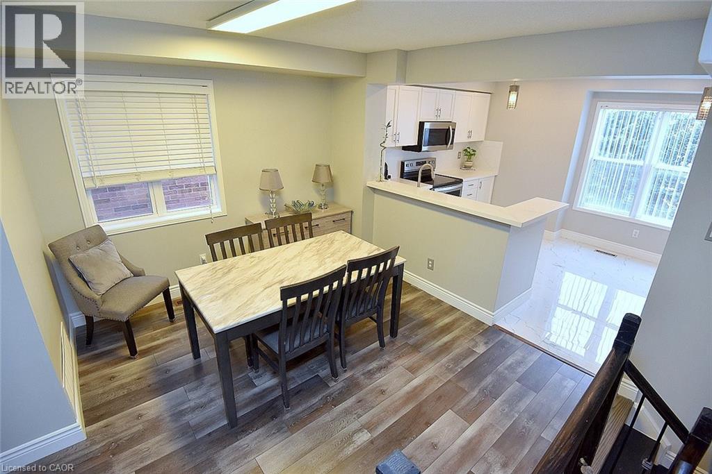 $388.70 MonthlyWelcome to this beautifully renovated end-unit townhouse in the highly sought-after Headon Forest community, offering enhanced privacy and an abundance of natural light throughout. Renovated in November 2023, this thoughtfully updated, carpet-free home showcases new flooring throughout, freshly painted interiors, and updated bathrooms. The bright, open-concept living and kitchen area is designed for both comfort and entertaining, featuring pot lights, a complementary accent wall, a walkout balcony, and a functional layout that maximizes space and flow. The kitchen was upgraded with a new quartz countertop and stylish backsplash, creating a clean, modern aesthetic. The lower level presents excellent potential for an in-law suite, complete with a cozy gas fireplace, an additional bedroom, and a full bathroom—ideal for extended family, guests, or flexible multi-generational living. Upstairs, the home offers three bedrooms and a full bathroom, while the main level includes a convenient powder room. Additional upgrades include new closet doors and smart home features, such as a Nest thermostat, Nest doorbell camera, and a smart garage door system, which can be operated via mobile phone and includes two remote controls for added convenience. Appliance updates include refrigerator (2020), stove (2021), microwave (2021), dishwasher (2025), and washer/dryer combo (2024). The seller is to buy out the furnace and A/C contract prior to close. Enjoy additional outdoor living with a fully fenced backyard, perfect for relaxing or entertaining. With low condo fees, a quiet end-unit location, and excellent natural sunlight throughout, this home also boasts a strong walk score with close proximity to amenities, highways, transit, schools, and parks. An exceptional opportunity to own in one of Burlington’s most desirable communities, offering outstanding value and privacy. (id:24334)