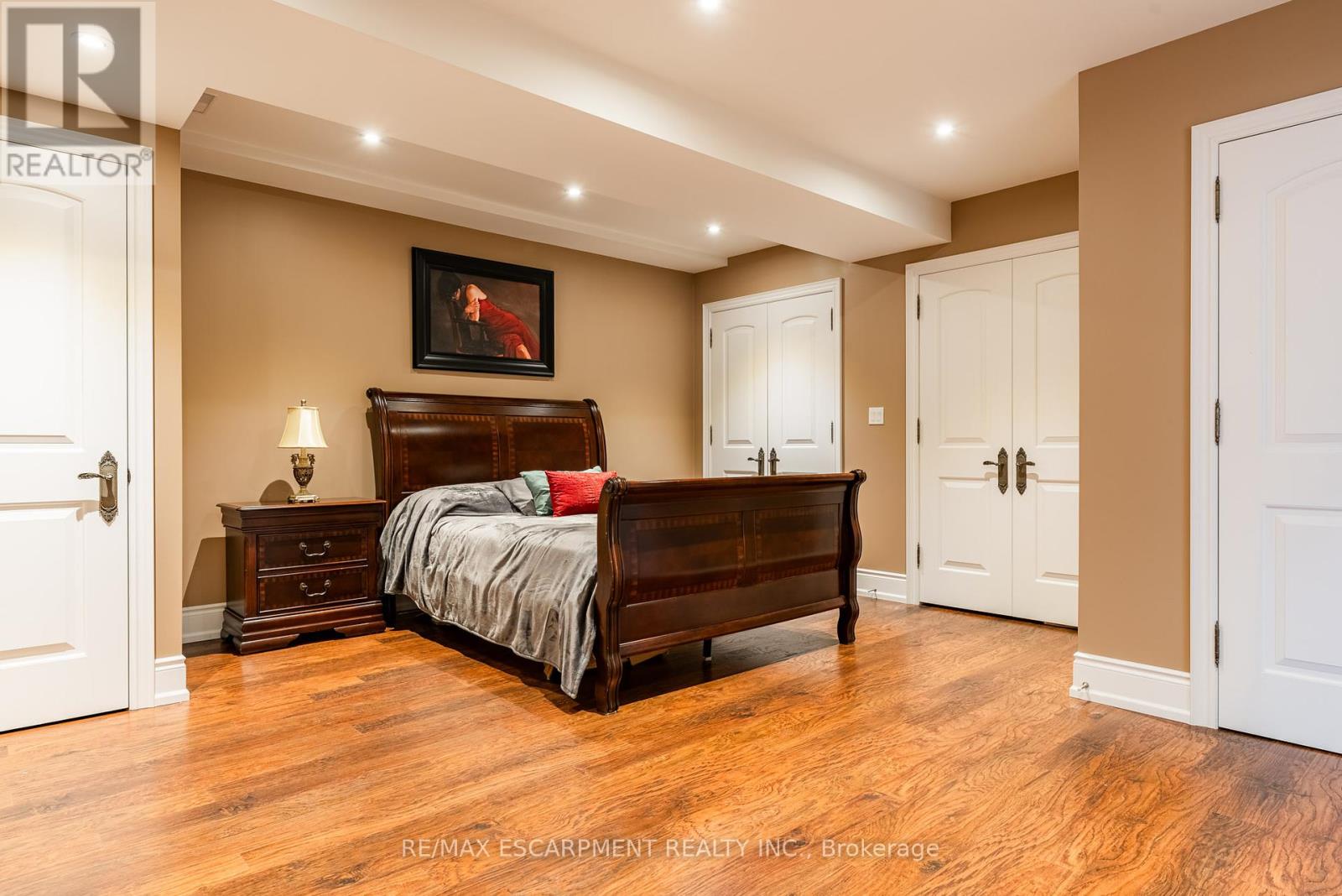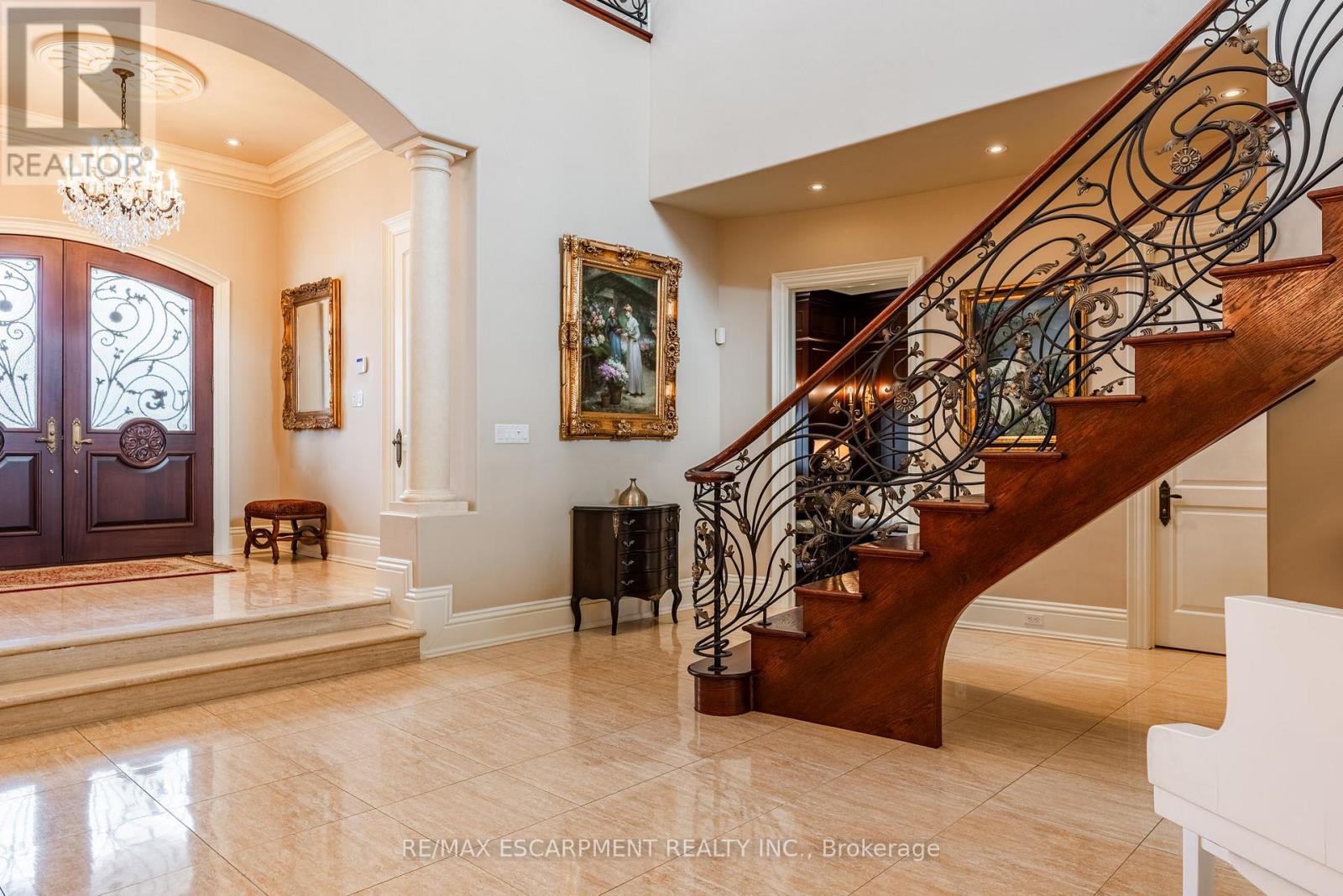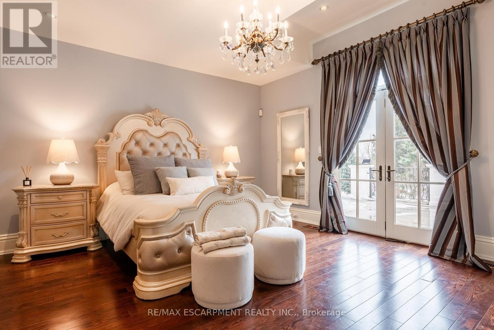 Impeccably nestled in The Bluffs, this extraordinary estate spans over 11,000 sqft. of luxurious living space on approx two acres of treed property. Blending modern sophistication with traditional elegance, this home offers an unparalleled lifestyle in a breathtaking setting. From the moment you step into the grand foyer, the impeccable craftsmanship and seamless flow set the tone for refined living. Architectural excellence is showcased through soaring coffered ceilings, expansive windows, & an intricate wrought-iron staircase. The chefs kitchen is a culinary masterpiece, boasting a walk-in pantry, top-tier custom cabinetry, & premium appliances. A spacious breakfast room opens to the beautifully landscaped backyard, where a heated covered lanai provides the perfect setting for outdoor relaxation. The main-floor primary suite is a private retreat, featuring a cozy F/P, his and her walk-in closets, & a lavish 6pc spa-inspired ensuite. Adding to its allure, an adjoining sunroom offers direct access to the backyard, creating a seamless indoor-outdoor experience. A richly appointed home office, complete with wood paneling & built-in cabinetry, provides an ideal workspace. The second level hosts 3 additional bedrooms, while the lower level is designed for ultimate comfort, entertainment, & hosting unforgettable events. Here, youll find a full bar, oversized wine cellar, & a dance floor, along with a state-of-the-art home theatre, a gym, a gentlemans cigar room, & a spa-inspired bath with a stone steam sauna, walk-in shower, & radiant floor heating. A 5th bedroom completes this level, offering flexibility for guests or extended family. For car enthusiasts, the impressive heated 3-car garage is outfitted with 2 lifts, allowing for up to 6 vehicles to be stored with ease. Built-in speakers throughout the home further enhance the ambiance, providing a seamless audio experience indoors & out. Minutes from major highways & Burlingtons finest amenities. LUXURY CERTIFIED (id:24334)