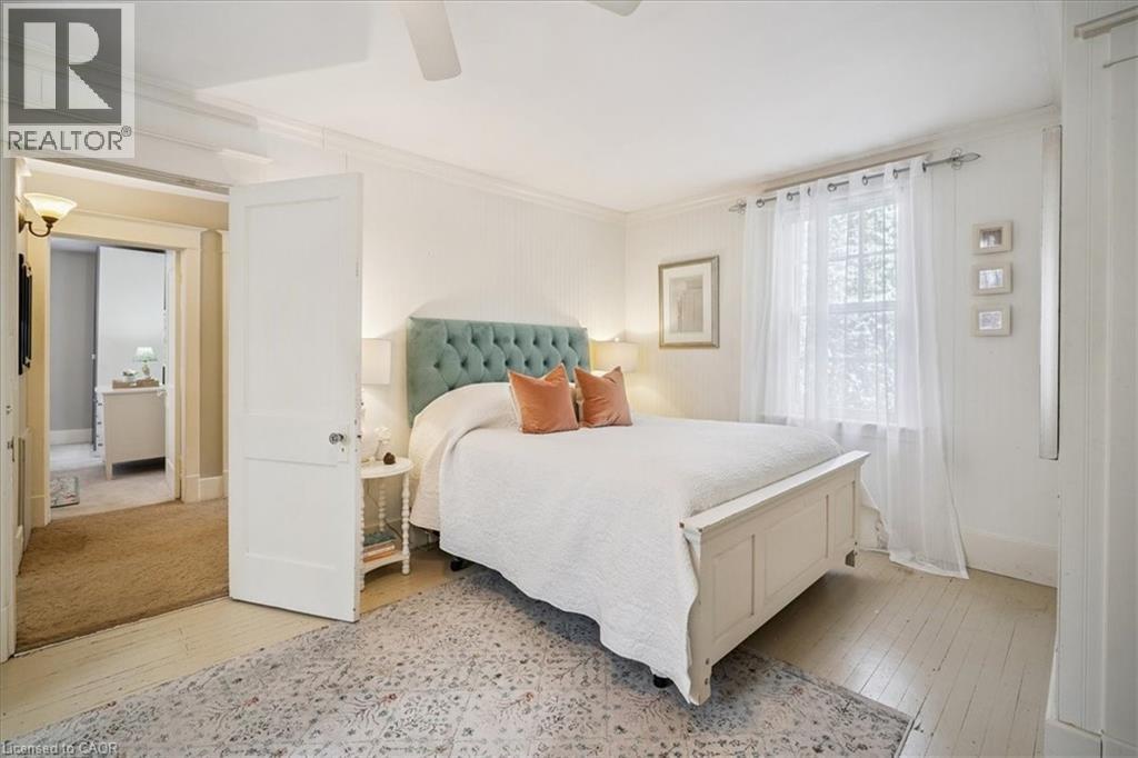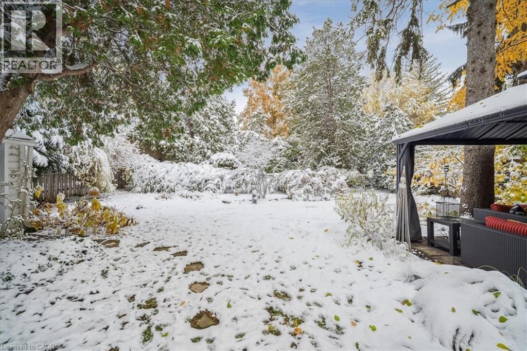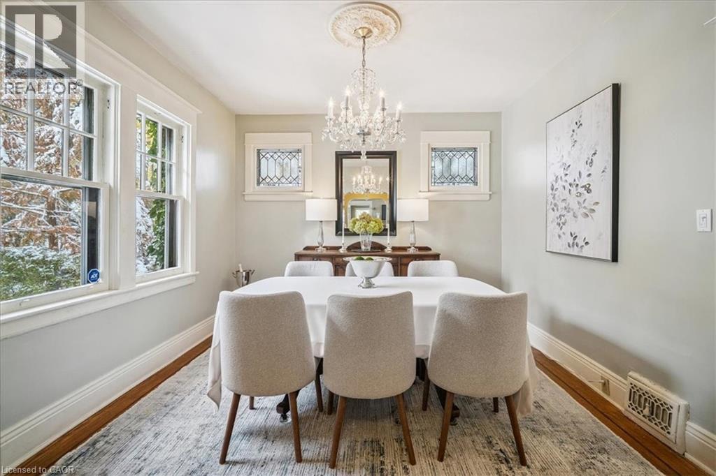 Full of character & charm, this home sits on a picturesque, tree-lined street in coveted Roseland - just steps to the Lake, Downtown Burlington & Roseland Tennis Club. Set on a 62'X120' lot within top-rated school districts, it offers timeless appeal & a highly desirable location. Leaded glass windows, crown mouldings, hardwood floors & a wood-burning fireplace bring warmth & classic elegance throughout. The bright living room is filled with natural light from a large picture window, complemented by a separate dining room & an upgraded kitchen with modern finishes. A sunroom wrapped in windows with walkout access to the backyard provides an ideal home office or cozy retreat. The primary bedroom provides a peaceful escape, joined by two additional well-sized bedrooms. The finished basement with a separate entrance adds versatile living space & a renovated full bathroom. Outside, a private backyard with a stone patio, mature trees & lush gardens creates a serene setting for entertaining. A rare opportunity to own a home with true character in one of Burlington's most sought-after neighbourhoods (id:24334)