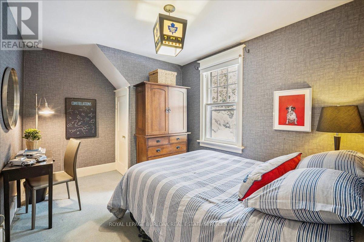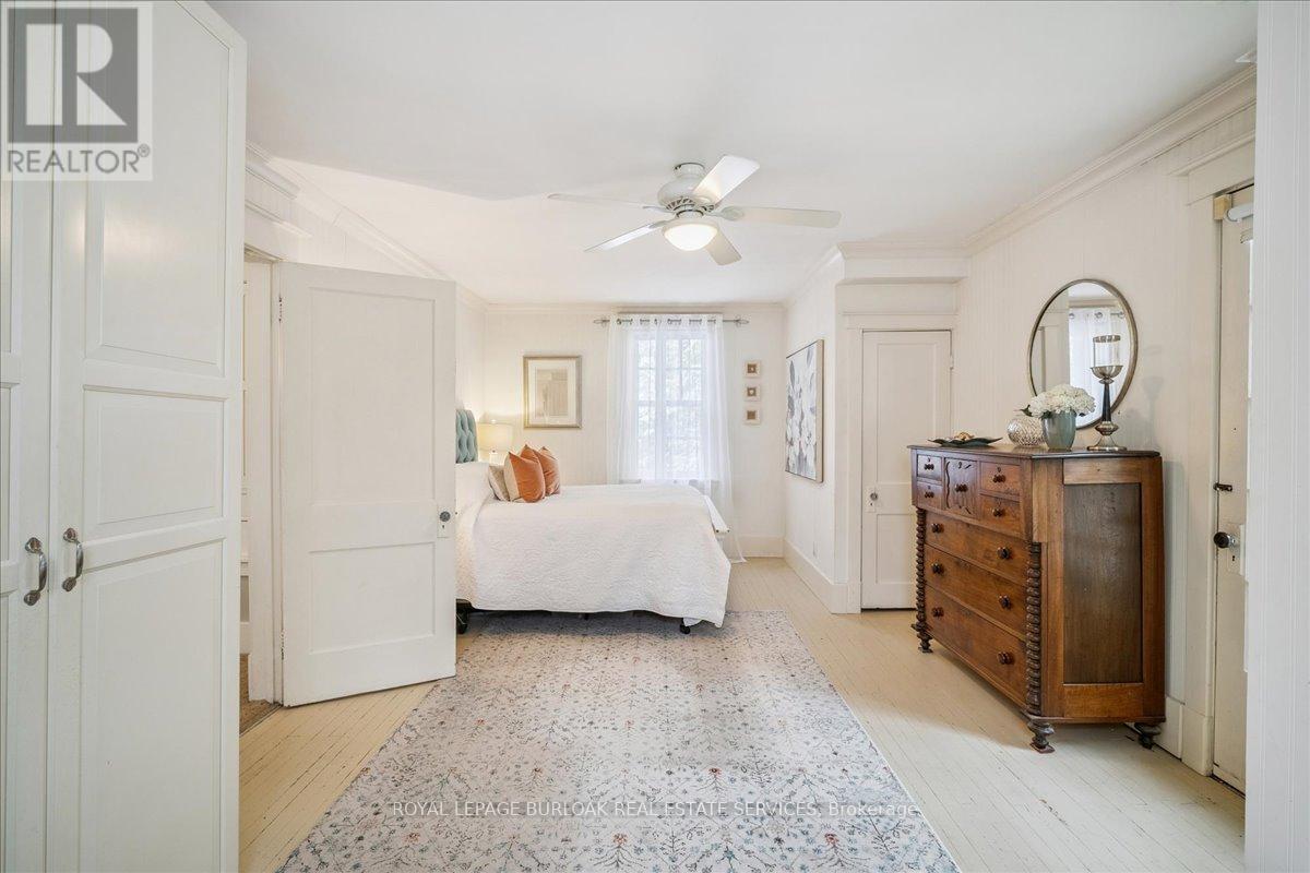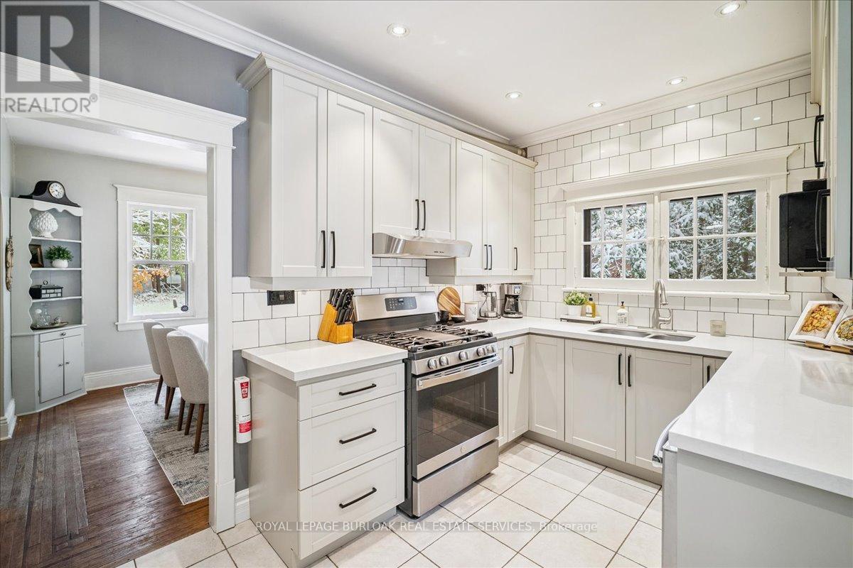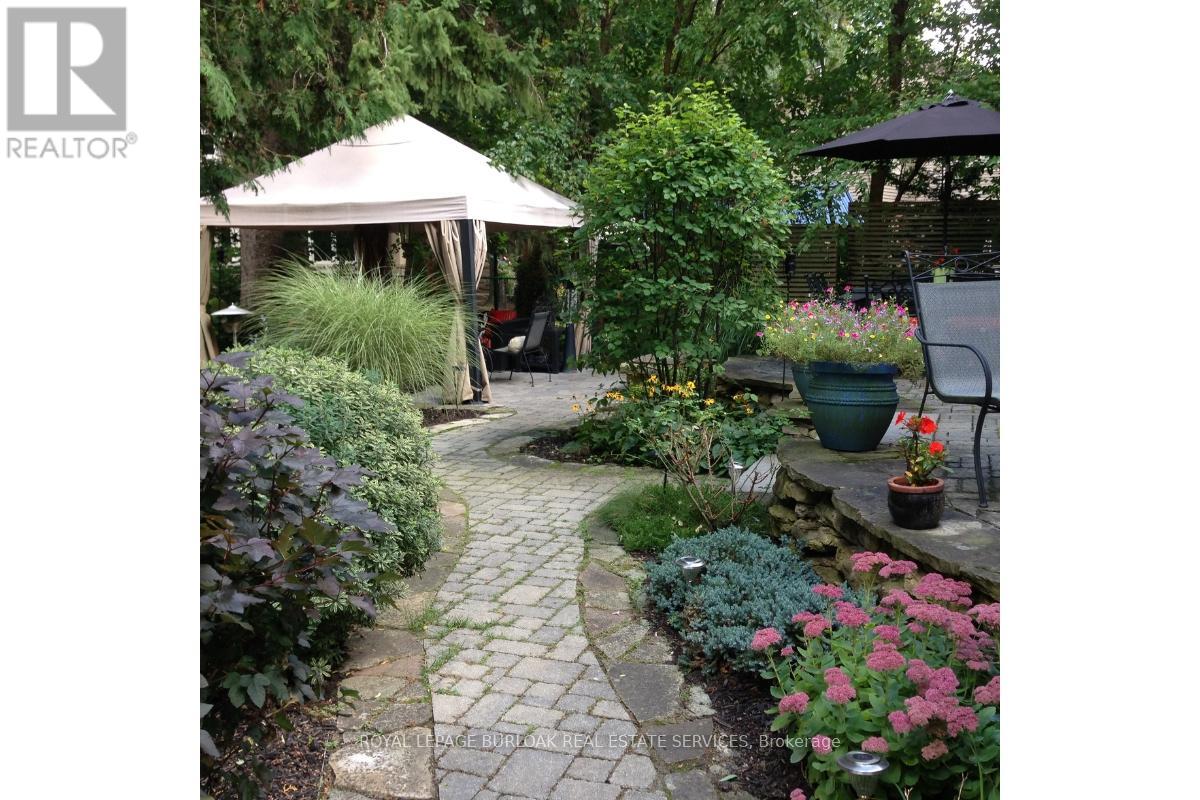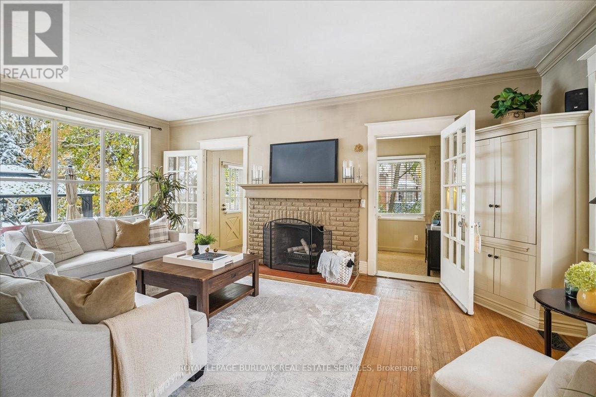 Full of character & charm, this home sits on a picturesque, tree-lined street in coveted Roseland - just steps to the Lake, Downtown Burlington &Roseland Tennis Club. Set on a 62'X120' lot within top-rated school districts, it offers timeless appeal & a highly desirable location. Leaded glass windows, crown mouldings, hardwood floors & a wood-burning fireplace bring warmth & classic elegance throughout. The bright living room is filled with natural light from a large picture window, complemented by a separate dining room & an upgraded kitchen with modern finishes. A sunroom wrapped in windows with walkout access to the backyard provides an ideal home office or cozy retreat. The primary bedroom offers a peaceful escape, joined by two additional well-sized bedrooms. The finished basement with a separate entrance adds versatile living space & a renovated full bathroom. Outside, a private backyard with a stone patio, mature trees & lush gardens creates a serene setting for entertaining. A rare opportunity to own a home with true character in one of Burlington's most sought-after neighbourhoods. (id:24334)