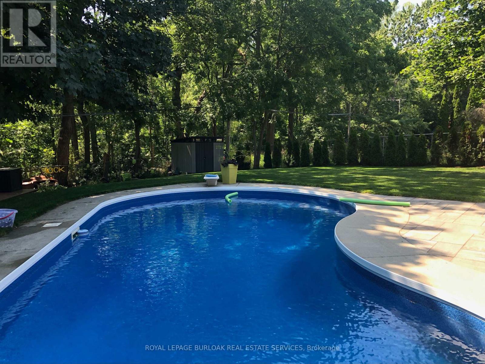 Rare offering in coveted Shoreacres, South Burlington. This beautifully renovated bungalow backs onto a ravine, offering complete privacy and a tranquil, resort-like setting with an in-ground 18 x 36 kidney shape heated pool and 2 decks with forest views-ideal for family living and entertaining. Extensively updated in 2018, the home features a stunning sunroom addition with soaring 15-ft ceilings and serene views of the backyard oasis. The jaw dropping garage is a mechanic/contractors dream, a 1200 sq ft man cave, 16-ft ceilings, 2 x 10 ft doors, drive through back door, 3-5 carparking, 2 x 220 volt outlets, 200 amp hydro service, fully finished with drywall, furnace and a convenient 2-pc bath, it is truly an unmatched garage space in the city. The main floor offers 3 generous bedrooms, a 4-pc bath, hardwood floors throughout and newer windows (2016), providing comfortable one-level living. The fully finished lower level is well suited for extended family or guests, featuring a bright in-law suite with large windows, separate entrance, a 4th bedroom, stylish 3-pc bath with seamless walk-in shower, finished laundry room and abundant storage. A rare, flexible layout in one of Burlington's most desirable neighbourhoods. Country living in the city could not be better. (id:24334)