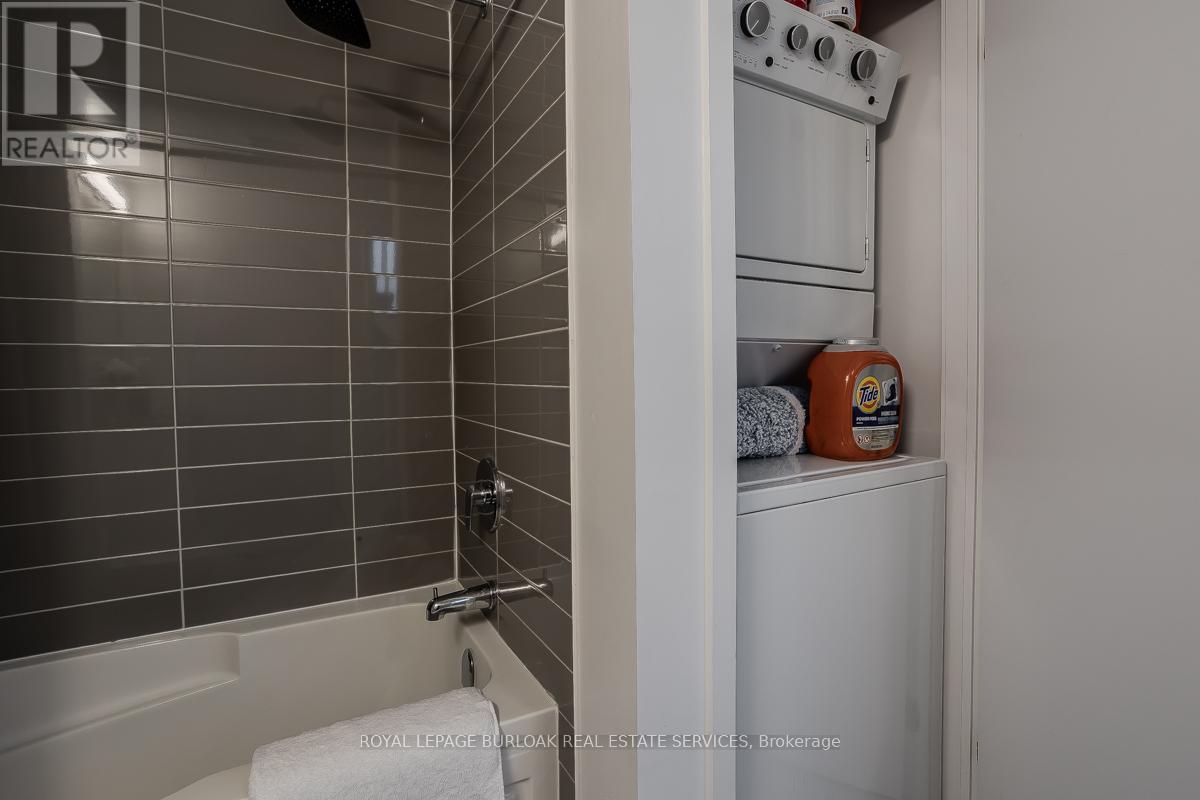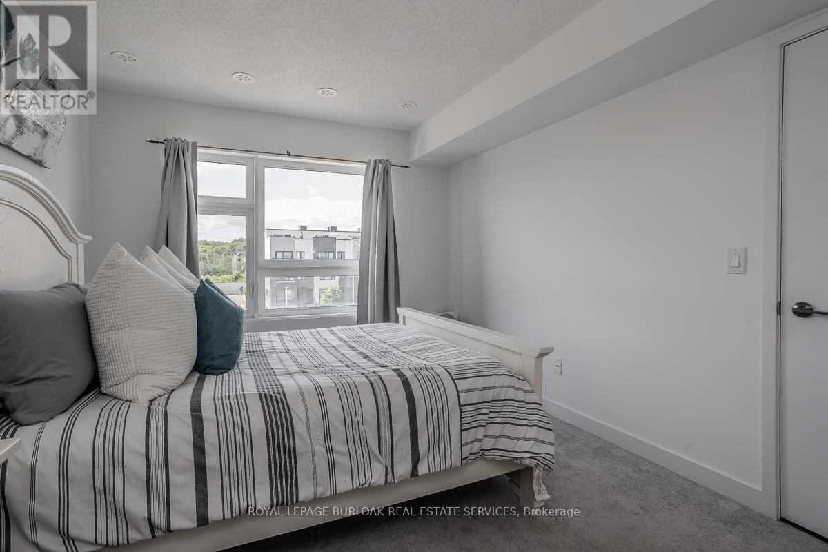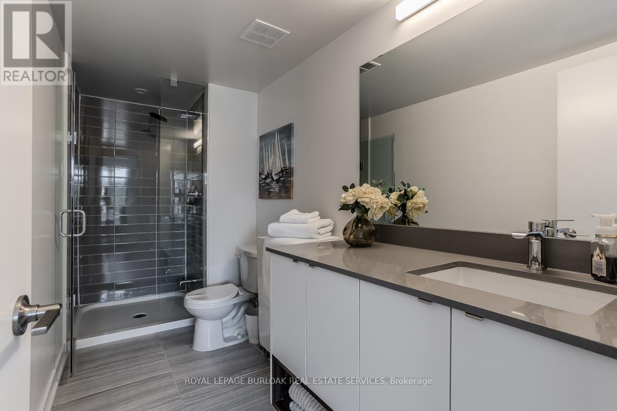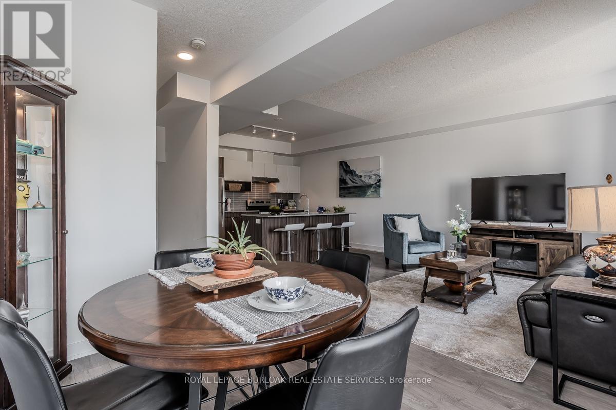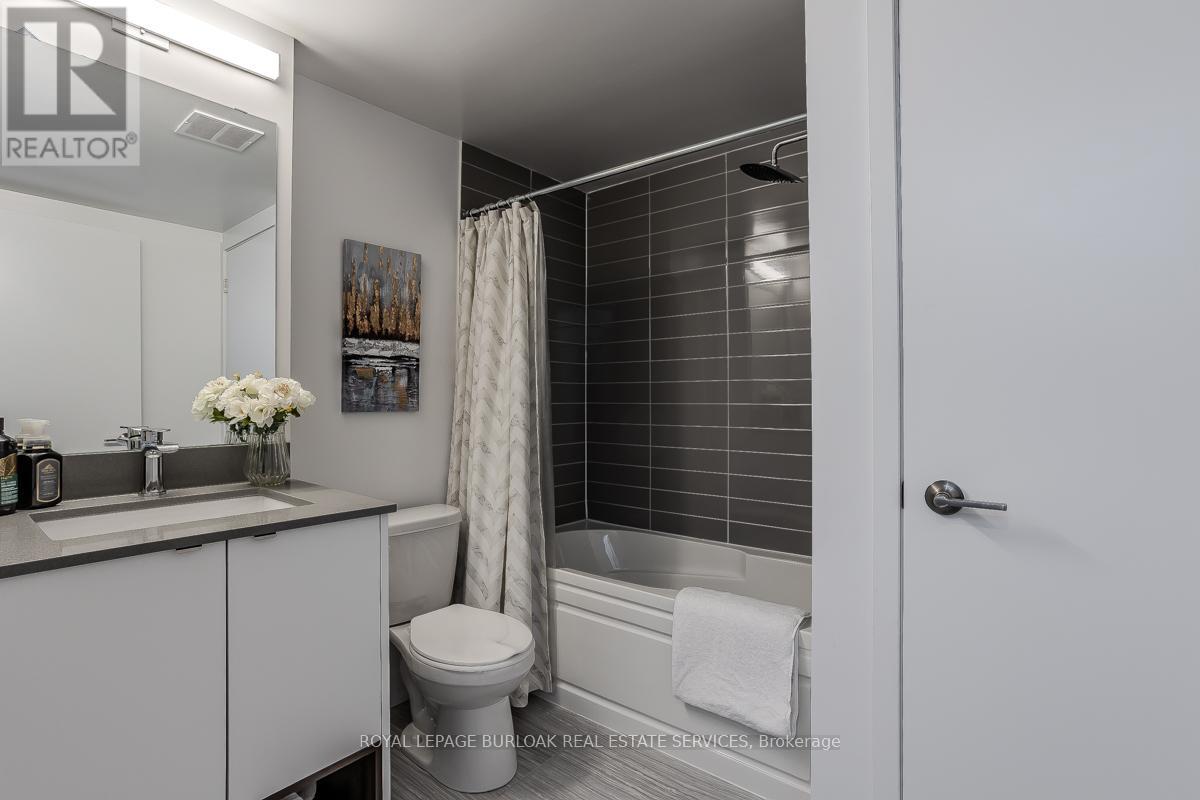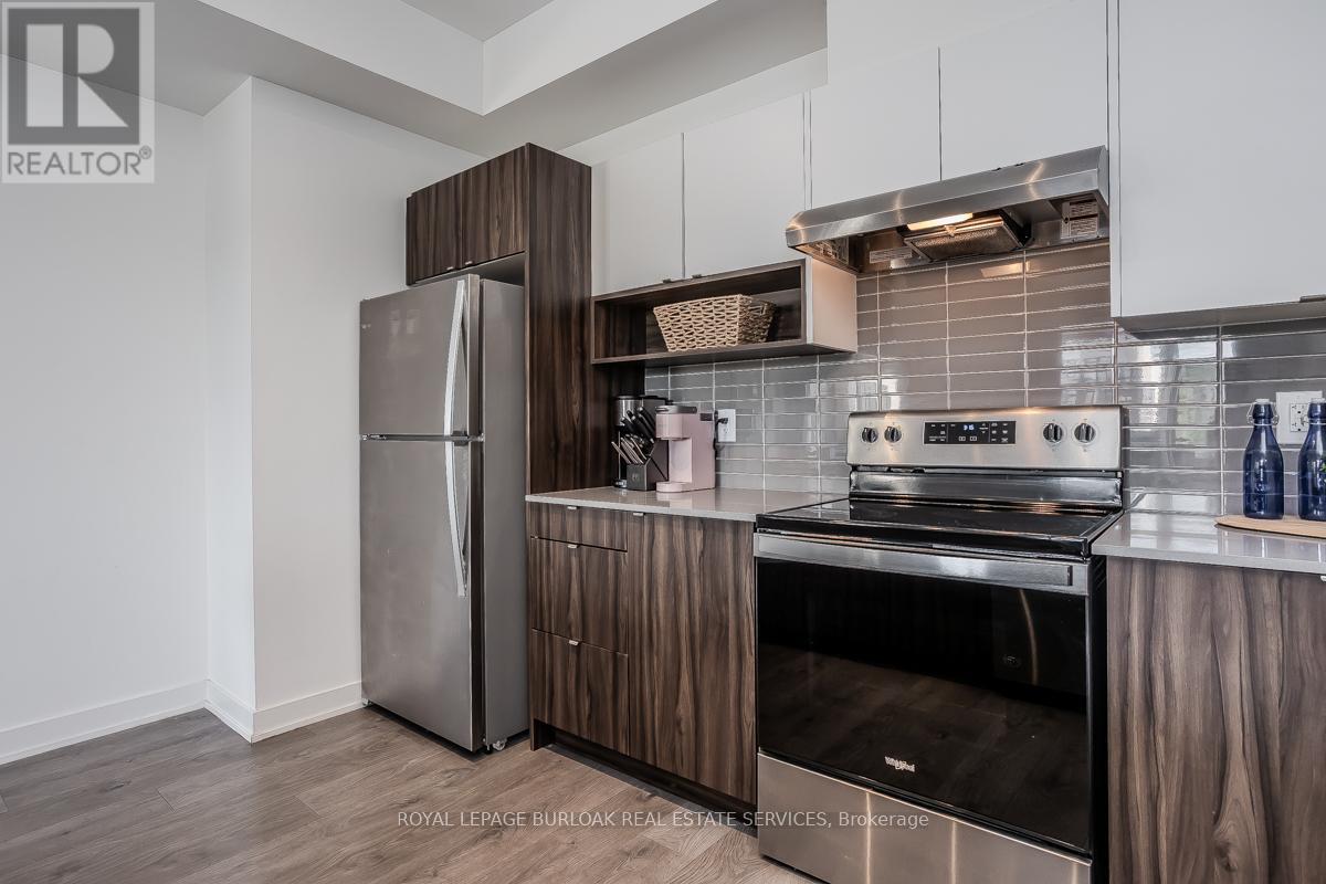 Welcome to this beautifully designed modern 3-storey townhome, perfectly located just minutes from the lake, downtown Burlington, parks, schools, and convenient transit options including the GO Station. Nestled in a quiet, family-friendly enclave, this pet-friendly home offers the ideal balance of comfort, style, and functionality perfect for growing families, young professionals, or anyone looking to enjoy the best of Burlington living. One of the rare highlights of this unit is the 2-car private driveway a unique feature that only two homes in the entire complex enjoy, providing unmatched parking convenience for your family and guests. Step into a bright and welcoming front entry with a convenient 2-piece powder room, perfect for guests. The second level showcases a seamless open-concept layout, ideal for both everyday living and entertaining. Wide plank laminate flooring flows throughout the spacious living and dining areas, where large windows and a walkout to your private balcony flood the space with natural light. At the heart of the home, the contemporary kitchen is sure to impress featuring quartz countertops, stainless steel appliances, custom cabinetry, a stylish stacked tile backsplash, and a large island with breakfast bar, built-in microwave, and dishwasher. Upstairs, you'll find a bright and airy primary retreat complete with a 3-piece ensuite boasting an oversized quartz vanity, porcelain tile floors, and a sleek stacked-tile walk-in shower with a glass door. An additional well-sized bedroom and a 4-piece main bath with matching finishes and a tub/shower combo offer the perfect layout for a growing family, guests, or a home office. Top it all off with a private rooftop terrace offering pond views and a glass railing an ideal space to relax, dine, or entertain under the open sky. Whether you're looking for your first home or a stylish, low-maintenance space for your family, this thoughtfully designed townhome checks all the boxes. (id:24334)