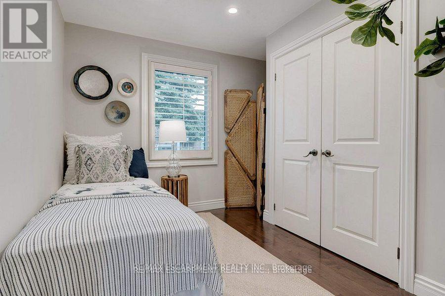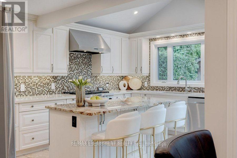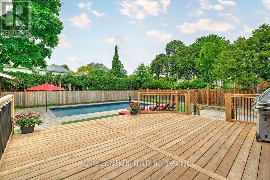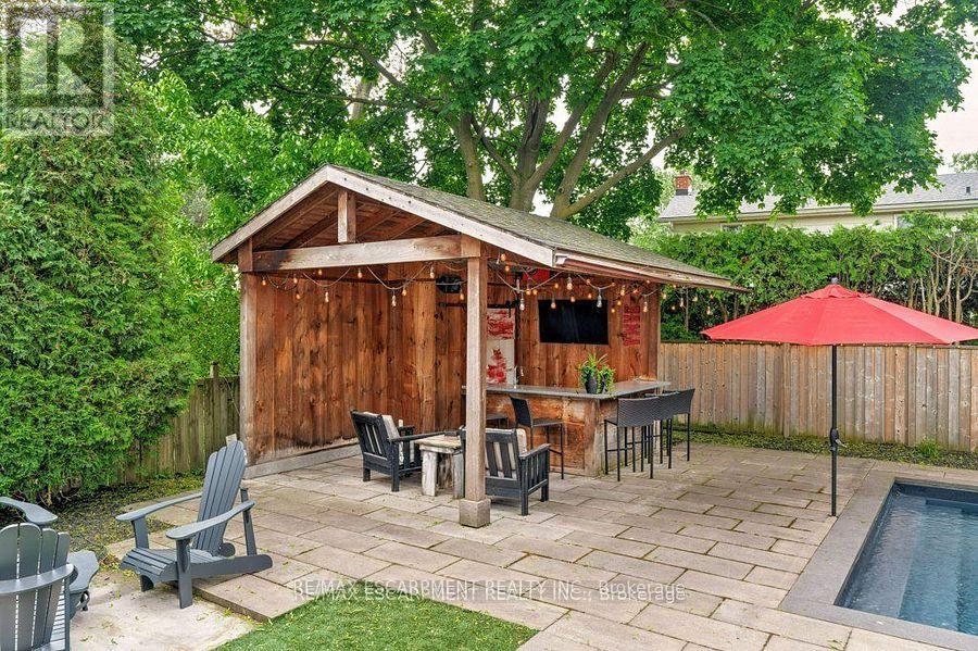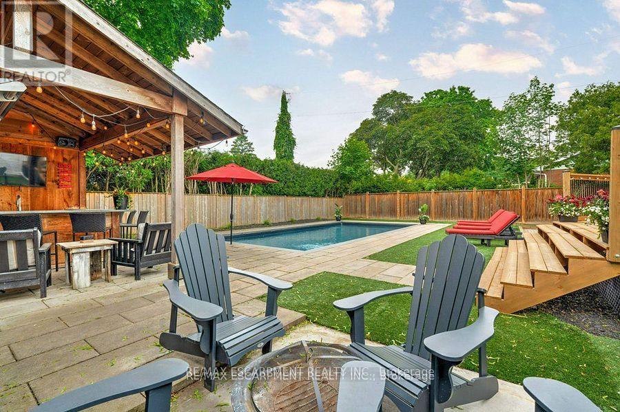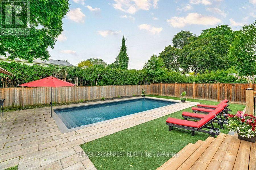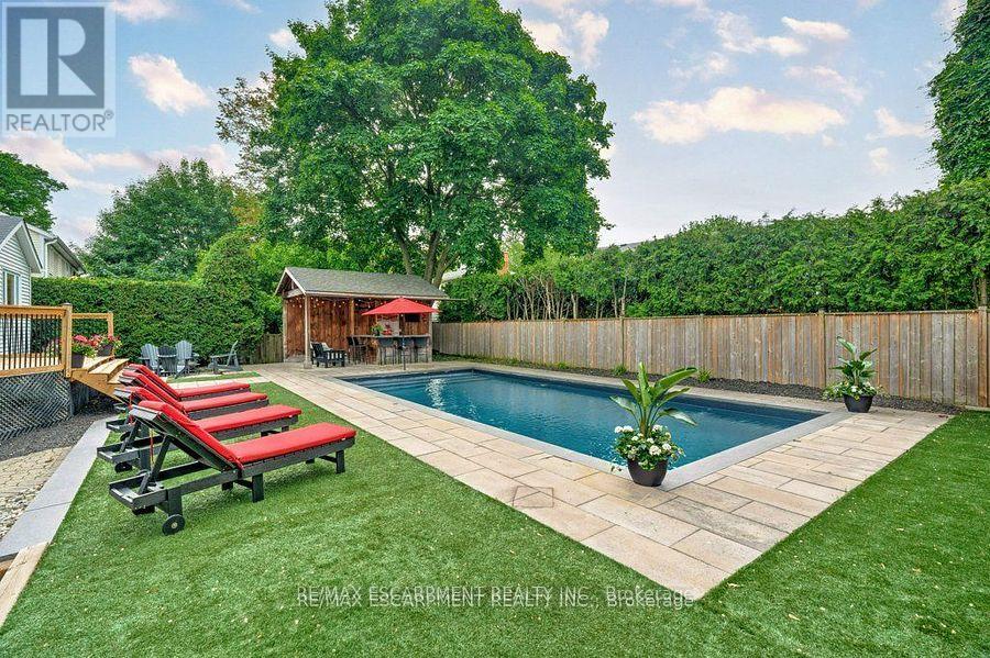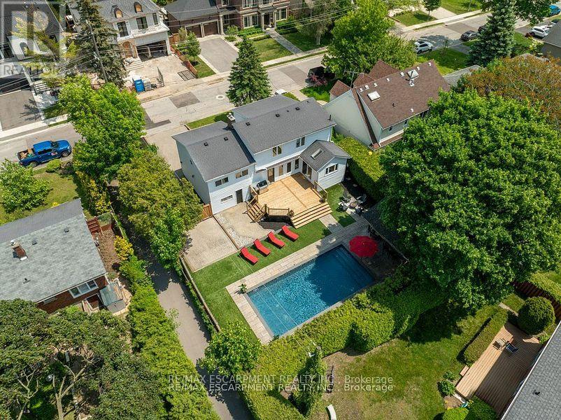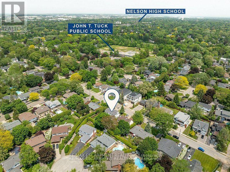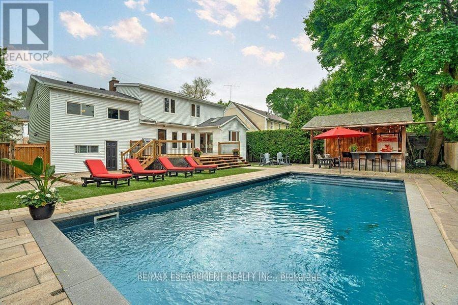 Incredible location in the prestigious Roseland community of South Burlington, this Lovely 4 Bedroom Family home features a gorgeous Backyard Oasis with resort style In-ground Pool. Nestled on a prime street surrounded by Custom Estate Homes, just steps to highly respected John T. Tuck & Nelson Schools. Well designed for Family Living & Fun, this home features a bright, spacious open concept main floor w/Family sized Dream Kitchen & separate generous sized Family Room. The beautifully updated Kitchen is the Heart of this home & a Chefs delight, w/vaulted ceilings, Skylight, B-I s/s appliances, Custom Cabinetry, large Centre Island & w-o to an expansive Deck overlooking the Pool. A separate 360 sq.ft. Family Room is the perfect gathering spot for catching up on each other's day, studying or enjoying epic Games or Movie Nights together! The spacious main level layout also features a bright, family sized Dining Room, Living Room w/cozy gas Fireplace, a Main floor Bedroom, Laundry & beautifully updated 3pc Bath w/heated floors. The upper level features a large Primary Bedroom w/w-i closet plus 2 additional generous sized Bedrooms & updated 5Pc Bath w/double vanity, a sumptuous Soaker Tub & sep. glass Shower. The extremely private backyard is an Entertainer's Delight with poolside Cabana w/Wet Bar, Heater, speakers, TV, complimenting the resort style Pool. Easy maintenance backyard with artificial lawn allows for more family Pool time! Oversized Garage (24' x 16') with convenient Backyard entry; add. driveway parking for 6. Numerous updates t-o: new Lighting '25, Paint '25, New B-I Wall Ovens '25, Landscaping, Decks '24 & more!; see supplements list. Just steps to the Lake, close to fantastic Sports & Rec. Facilities, Shopping, Parks, all Amenities, GO, Transit & walkable to vibrant Downtown Burlington with it's waterfront trails, restaurants and cafes. Exceptional Value in this highly sought after location. (id:24334)