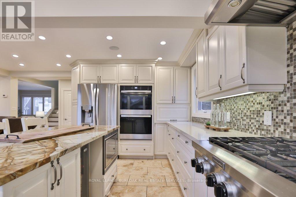 Welcome to an elevated lifestyle in Roseland, one of South Burlington's most coveted neighbourhoods. Set along a tree-lined street full of custom homes, this residence offers the ideal balance of comfort, and location. With 2536sf of living space, the home is designed for effortless living and memorable gatherings. Steps from the lake, waterfront trails, top-rated schools, parks, shopping, dining, and the downtown core, this is a location where every season brings something to enjoy. Commuters will love the easy hwy access and proximity to GO transit. Curb appeal makes a lasting impression with a newly painted exterior, welcoming front porch, interlock driveway w/ parking for 6, and large garage with backyard access. Inside, freshly painted interiors create a bright, welcoming atmosphere. The living room invites you to unwind by the gas fireplace, framed by California shutters and natural light. At the heart of the home, the chef's kitchen blends function and style with vaulted ceilings, a skylight, refreshed custom cabinetry, premium SS appliances, large island, and a walkout to the backyard-perfect for busy mornings, casual meals, and entertaining. The main floor offers a rare and versatile bedroom retreat with heated floors, laundry, and spa-inspired bath, ideal for guests, or multigenerational living. A sun-filled family room with beamed ceilings provides an inviting space for movie nights and relaxing evenings. Upstairs find a spacious primary suite, 2 additional bedrooms, and a luxurious 5pc bath. The fully finished lower level extends the living space with a rec room perfect for games, hobbies, or hosting friends. Outdoors, the backyard transforms into a private resort setting. A heated in-ground pool with walk-in entry, cabana with wet bar, low-maintenance artificial lawn, and a spacious deck with BBQ gas hookup create the ultimate backdrop for summer entertaining, relaxed weekends, and unforgettable memories-bringing resort-style living home, every day. (id:24334)