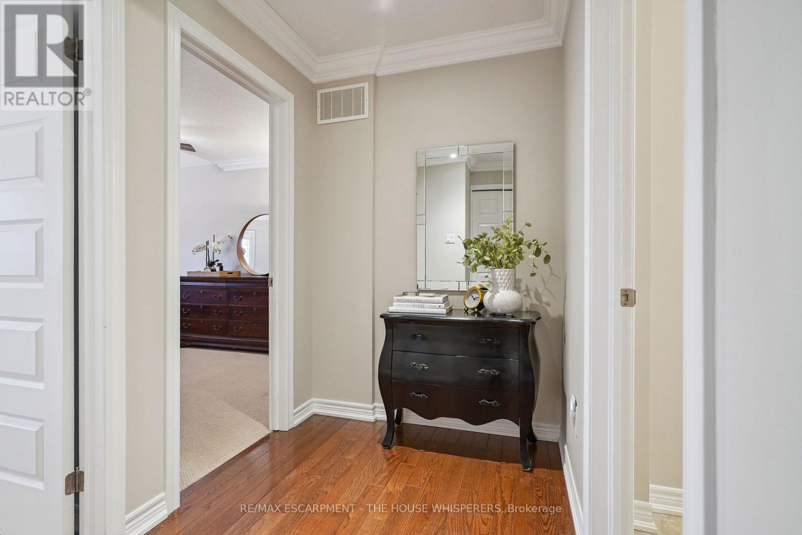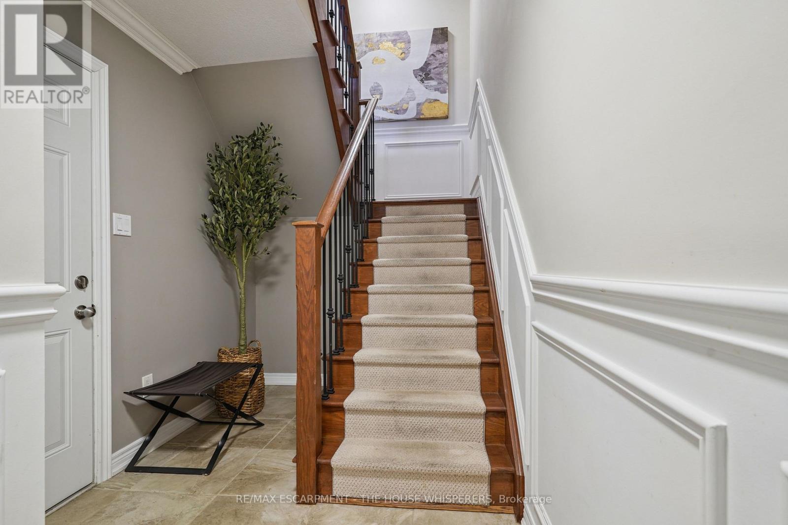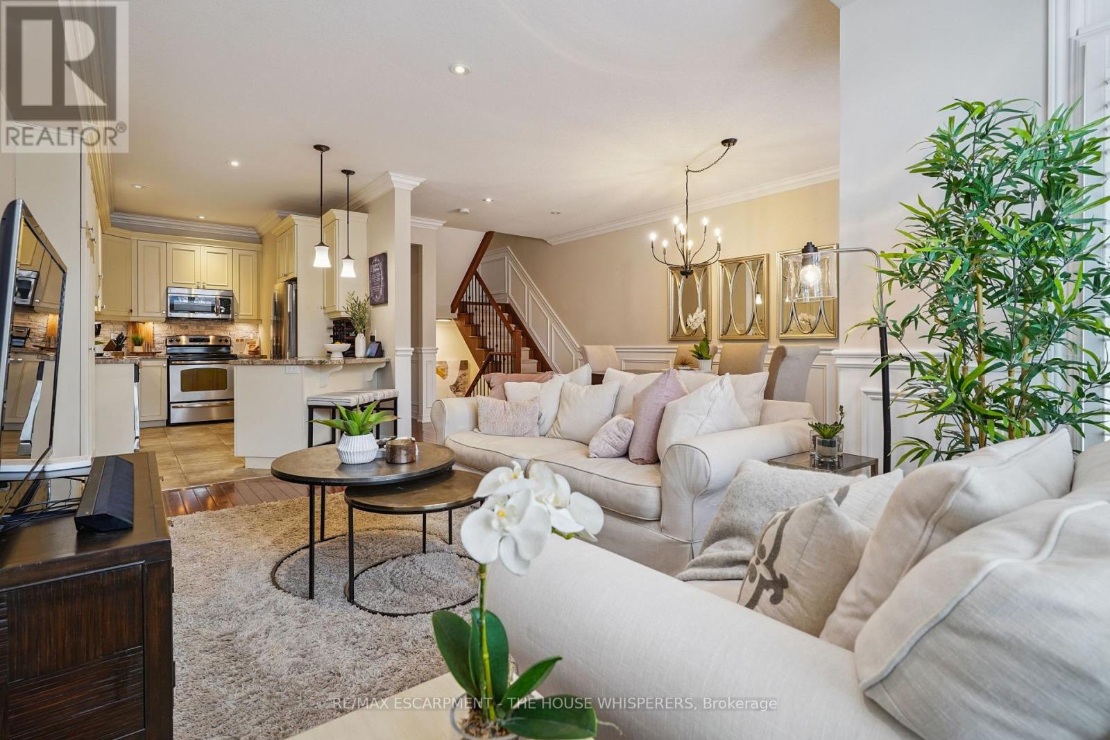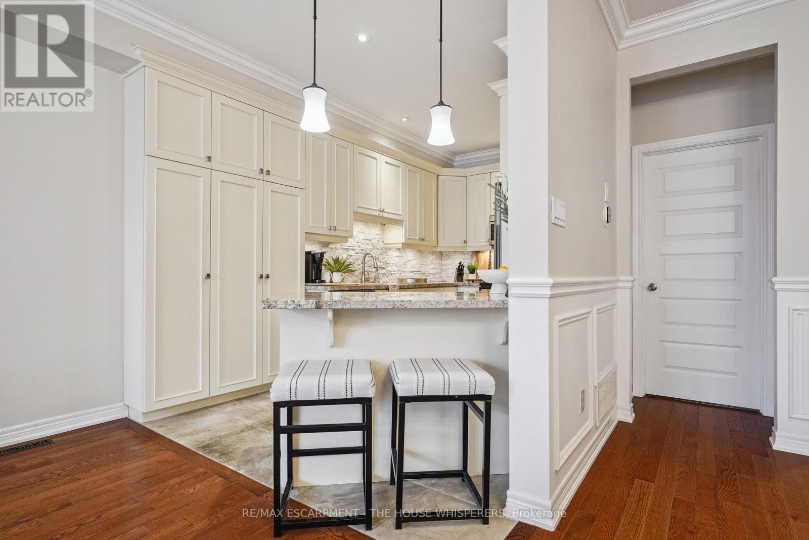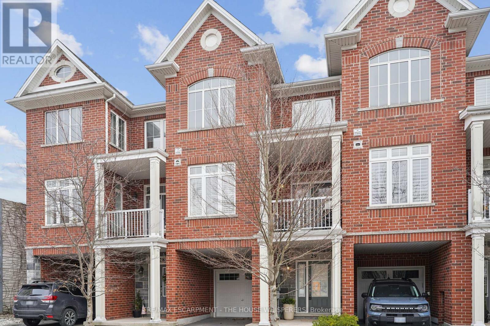 Elegant. Luxurious. Completely Irresistible. From the moment you step inside, this stunning three-storey townhome wraps you in warmth and sophistication. Nestled in the charming and highly sought-after Aldershot neighbourhood on Burlington's desirable west end, this is the kind of home that doesn't just impress; it feels like home. Every detail has been thoughtfully curated. Rich hardwood flooring flows throughout, complemented by a classic oak staircase with wrought iron pickets, soaring 9-foot ceilings on the main floor, and custom crown moulding and wainscotting that speak to true craftsmanship. The chef-inspired kitchen is a showpiece in its own right, featuring custom cabinetry, striking stone countertops, and an elegant stone backsplash. Upgraded lighting sets the perfect ambiance, morning to evening. Step out onto your private balcony, a personal retreat for morning coffees, weekend BBQs, or simply soaking in the fresh air, overlooking a serene parkette with no neighbours across at the end of the complex. Upstairs, two generously sized bedrooms offer the ultimate in comfort. The primary suite is a true sanctuary, boasting dramatic vaulted ceilings and a spacious walk-in closet. Both beautifully appointed bathrooms feature stone countertops, adding a seamless touch of luxury throughout. Practicality meets elegance with your own private driveway and an extra-deep garage offering exceptional storage; a rare and coveted find. And the location? Simply unmatched. Restaurants, boutique shops, Lake Ontario, and scenic parks are all just steps away. A short drive brings you to Aldershot GO Station for effortless Toronto commutes, the world-renowned Royal Botanical Gardens, LaSalle Park, and a collection of premier golf courses. This is truly a turnkey treasure. Move in, place your furniture, and start living the life you've been dreaming of. Homes like this don't stay available for long. Book your private showing today and see for yourself why this is the one. (id:24334)