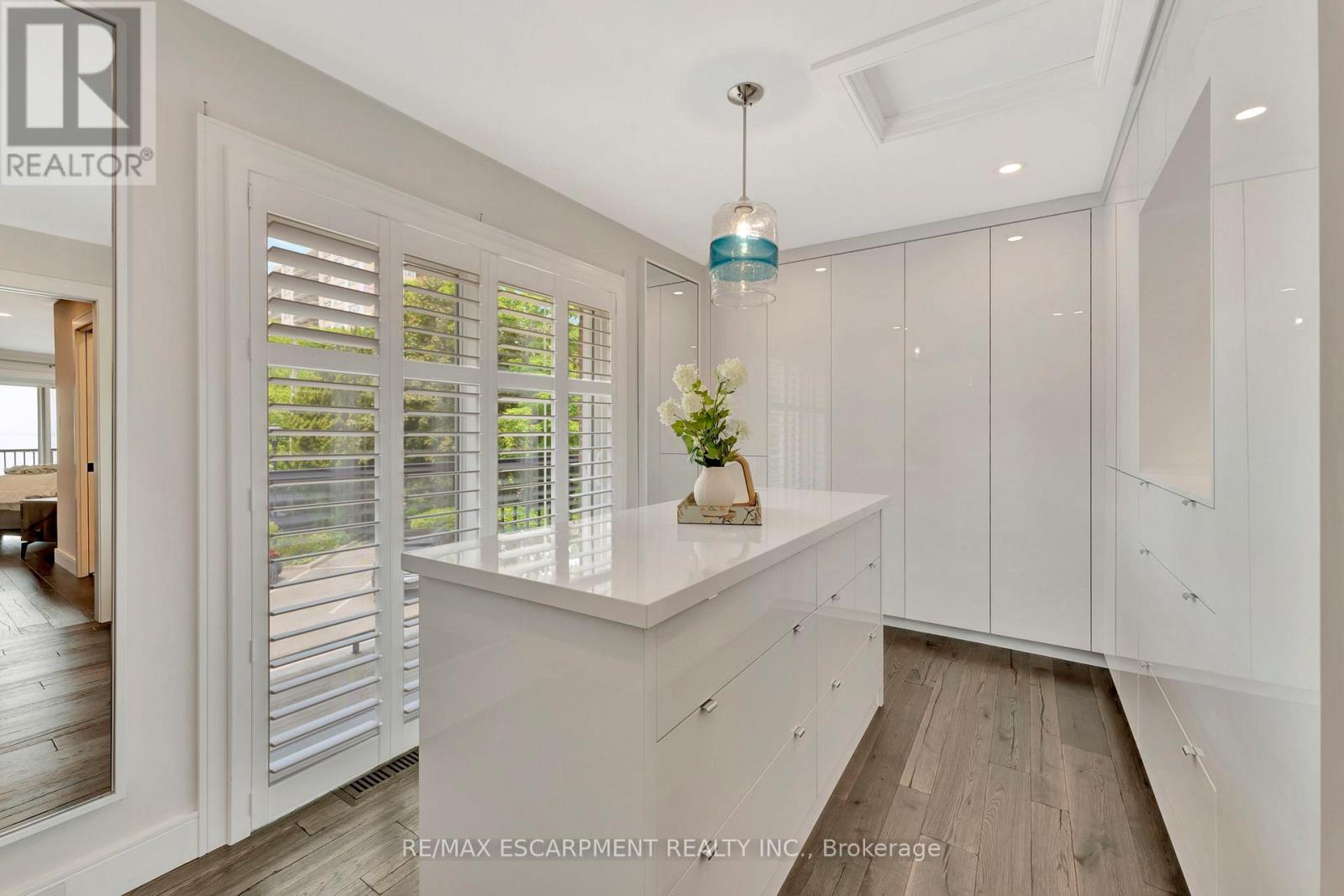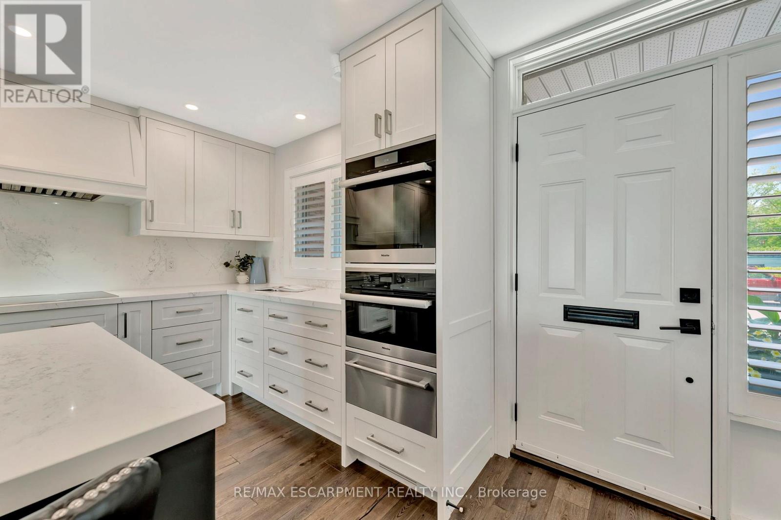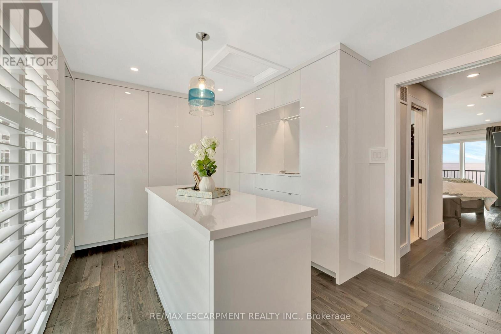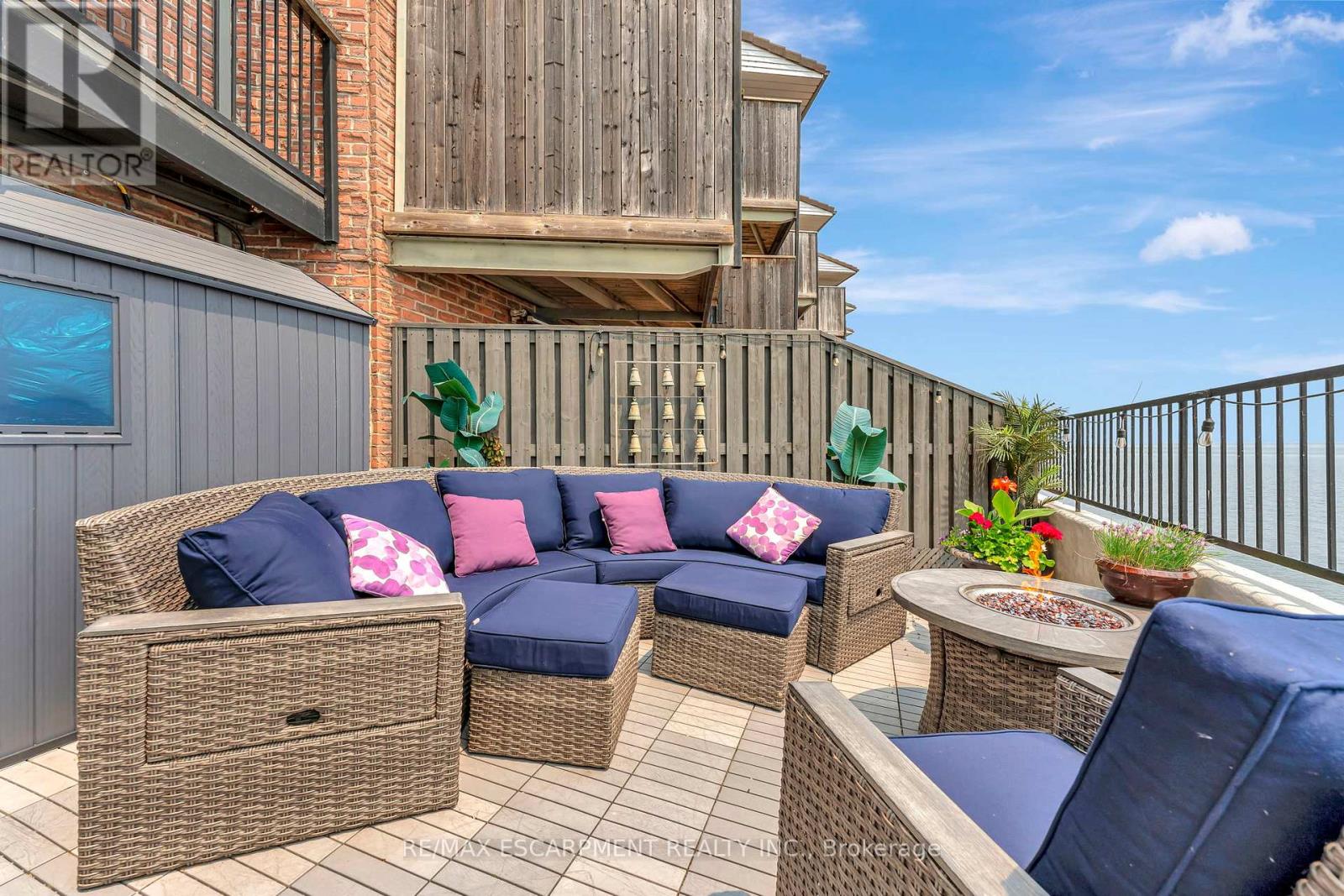 Client Rmks:Welcome to the ultimate lakefront lifestyle. This fully renovated 3-level townhouse offers unobstructed, panoramic views of Lake Ontario so close to the water, you can practically dip your toes in. Located just 600 metres from downtown Burlington, this is a rare blend of tranquility and convenience. This 3-level townhouse (1,600 plus SF) offers 1 bedrooms (potential for 2nd if you converted large walk-in closet back into a bedroom), 3 bathrooms (2 full, 1 powder) and 4 separate patio/terraces (huge 400 SF lower terrace at the water's edge). In 2020 this unit was completely gutted to the studs and rebuilt by the renowned Bespoke Home Solutions with a total renovation budget exceeding $500K . The gourmet kitchen has been masterfully crafted with designer finishes including: Insinkerator food waste disposal, hot water tank/dispenser, Porter & Charles warming drawer, Built in Miele Appliances (including a $7K plumbed in Coffee Machine), microwave/convection oven, Combi Steam Oven, Dacor Fridge & Freezer and Gravelle custom cabinetry throughout. The spacious primary suite is a true retreat, featuring a spa-inspired ensuite with heated floors, a two-person soaker tub, and a private balcony with stunning sunrise views over the lake. The second bedroom has been converted into a designer walk-in closet with custom cabinetry and a centre island, offering both form and function (easily reverted to a bedroom if desired). Lower level family room offers a full bathroom, ample storage and ability to offer a guest suite with use of a murphy bed. Backwater valve in basement. Home is equipped with Sonos built in ceiling speakers with hooked up amplifiers and speaker selector options. Large 400 SF back terrace is fashioned with a BBQ gas line and has a hook up for a Hot Tub. (id:24334)