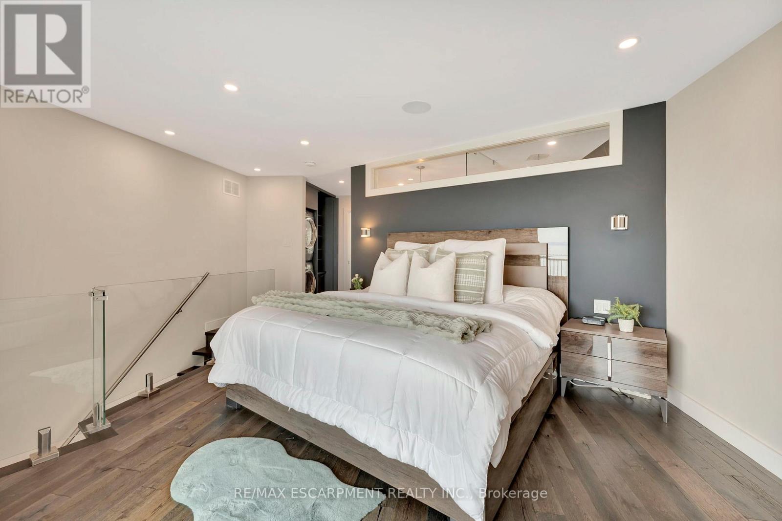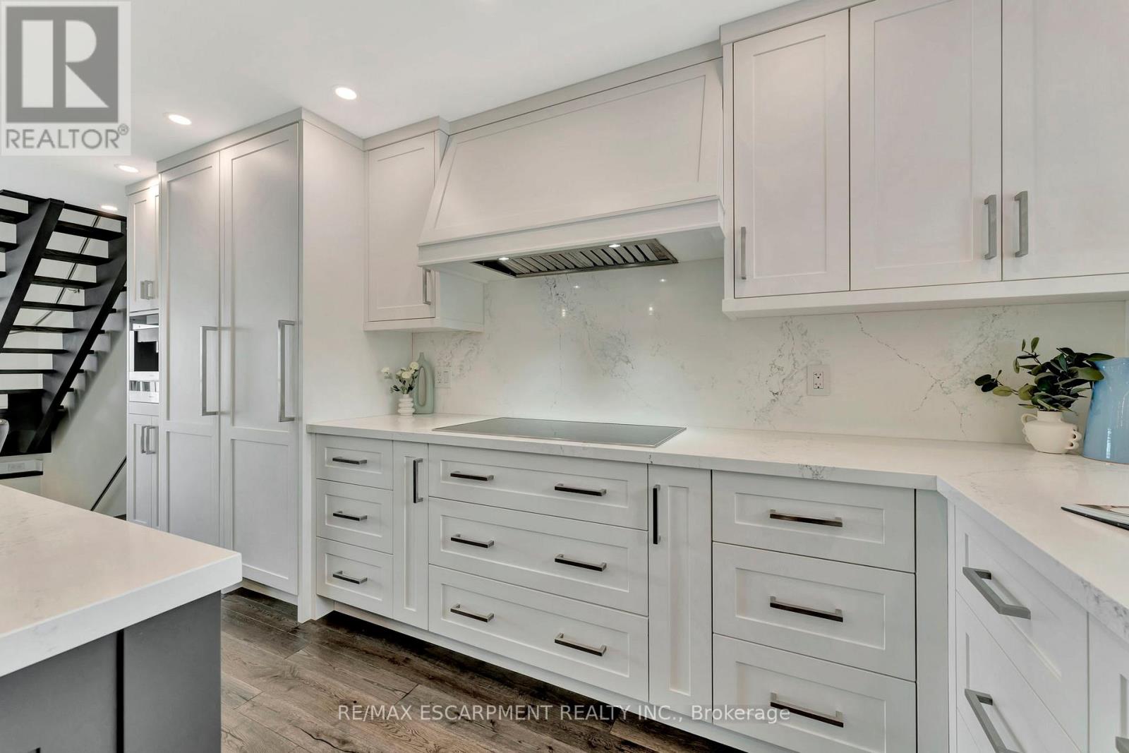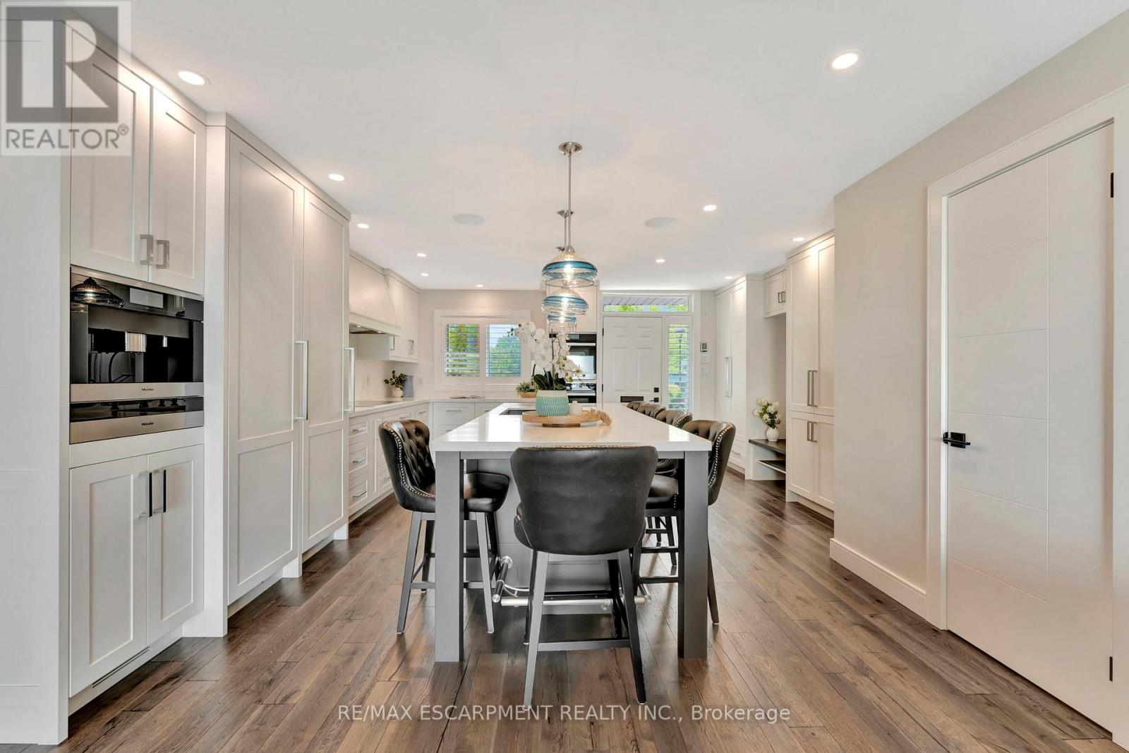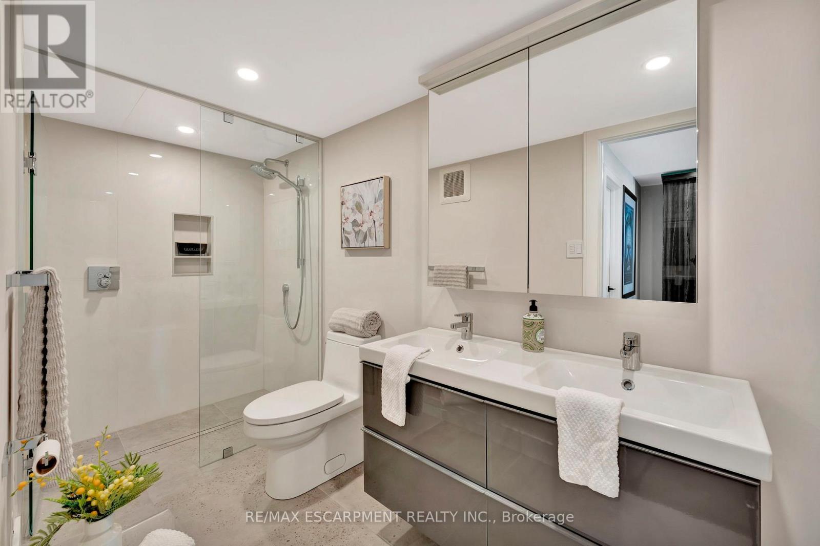 Client Rmks:Welcome to the ultimate lakefront lifestyle. This fully renovated 3-level townhouse offers unobstructed, panoramic views of Lake Ontario so close to the water, you can practically dip your toes in. Located just 600 metres from downtown Burlington, this is a rare blend of tranquility and convenience. This 3-level townhouse (1,600 plus SF) offers 1 bedrooms (potential for 2nd if you converted large walk-in closet back into a bedroom), 3 bathrooms (2 full, 1 powder) and 4 separate patio/terraces (huge 400 SF lower terrace at the water's edge). In 2020 this unit was completely gutted to the studs and rebuilt by the renowned Bespoke Home Solutions with a total renovation budget exceeding $500K . The gourmet kitchen has been masterfully crafted with designer finishes including: Insinkerator food waste disposal, hot water tank/dispenser, Porter & Charles warming drawer, Built in Miele Appliances (including a $7K plumbed in Coffee Machine), microwave/convection oven, Combi Steam Oven, Dacor Fridge & Freezer and Gravelle custom cabinetry throughout. The spacious primary suite is a true retreat, featuring a spa-inspired ensuite with heated floors, a two-person soaker tub, and a private balcony with stunning sunrise views over the lake. The second bedroom has been converted into a designer walk-in closet with custom cabinetry and a centre island, offering both form and function (easily reverted to a bedroom if desired). Lower level family room offers a full bathroom, ample storage and ability to offer a guest suite with use of a murphy bed. Backwater valve in basement. Home is equipped with Sonos built in ceiling speakers with hooked up amplifiers and speaker selector options. Large 400 SF back terrace is fashioned with a BBQ gas line and has a hook up for a Hot Tub. (id:24334)