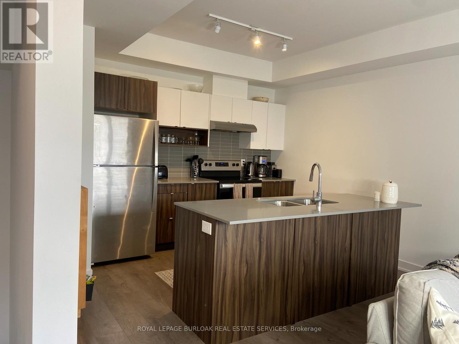 Welcome to this stylish 2-bedroom, 2.5-bath townhome offering modern living in an unbeatable commuter-friendly location. Designed with an open concept floor plan, the main level features a bright and spacious living and dining area that flows seamlessly into the kitchen - perfect for both everyday living and entertaining.Upstairs, you'll find two bedrooms, along with well-appointed bathrooms for added convenience and privacy. The primary bedrooms features an ensuite and walk in closet. Enjoy summer evenings and morning coffee on your private rooftop terrace - an incredible outdoor extension of your living space, ideal for relaxing or entertaining. Additional highlights include a garage with inside access, partial basement for extra storage, and an unbeatable location just steps to Aldershot GO Station - making commuting to Toronto or surrounding areas effortless. Perfect for commuters, young professionals, or downsizers looking for low-maintenance living in a prime Burlington location. (id:24334)