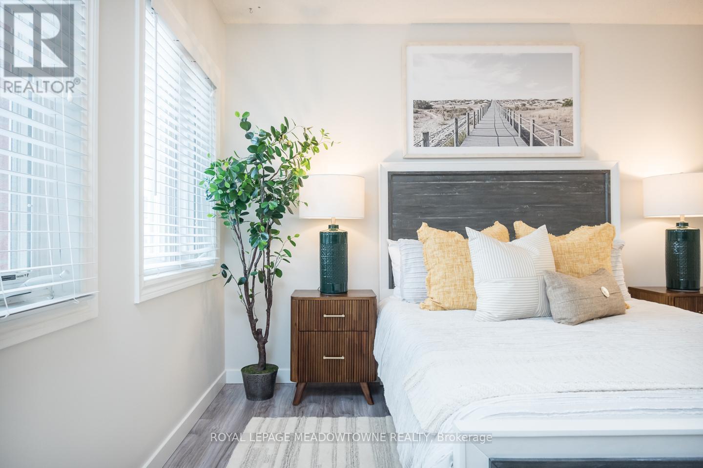 Stylish Uptown Burlington Townhome! Welcome to this beautifully updated 2-bedroom, 2-bathroom townhome offering 1,344 sq. ft. of bright, modern living in one of Burlington's most desirable neighbourhoods. Perfectly located near highways, golf courses, parks, and everyday conveniences, this home combines comfort and style in an unbeatable setting. Enjoy two parking spaces right at your doorstep, a convenient upper-level laundry room, and large windows that fill the space with natural light. The fresh white kitchen features sleek stainless steel appliances, a chic tile backsplash, breakfast bar seating, and a cozy eat-in nook. The open-concept living and dining area extends to the front patio - ideal for morning coffee or evening gatherings. Upstairs, a spacious bedroom with a handy office nook and private balcony pairs perfectly with a full bath, while the top-floor loft impresses with vaulted ceilings, its own ensuite, and plenty of space to unwind. A perfect blend of modern design and easy living! (id:24334)