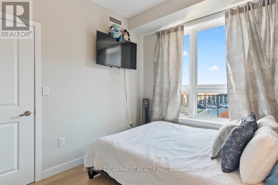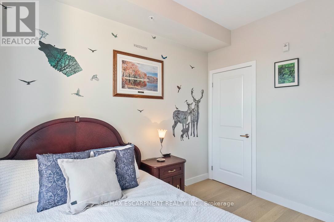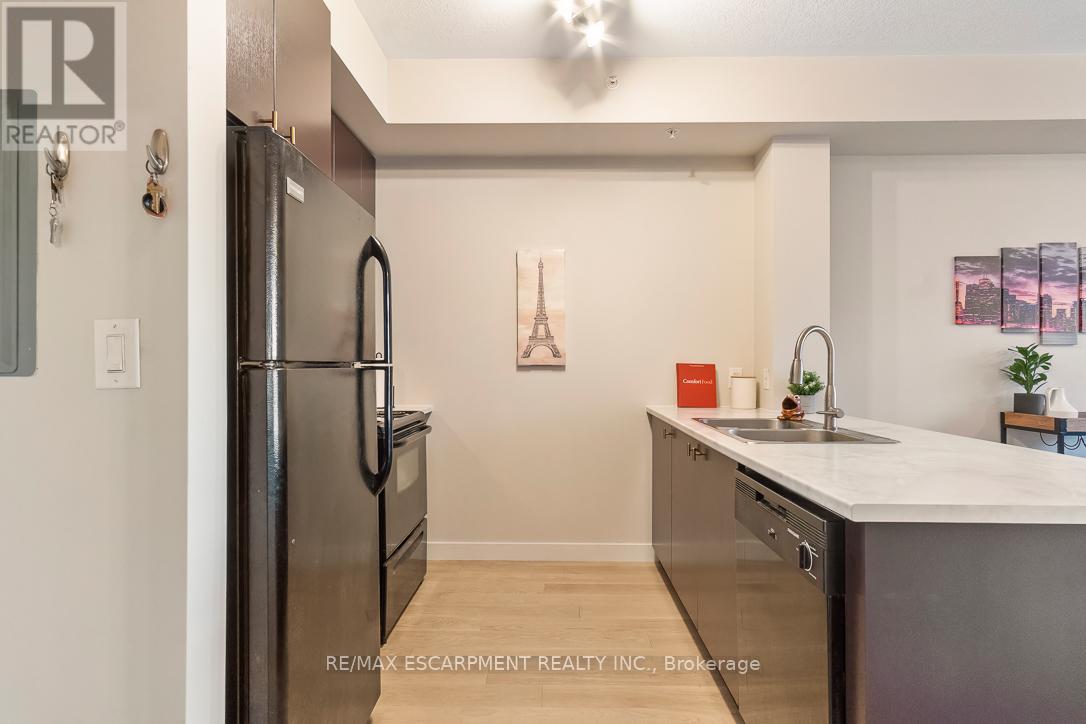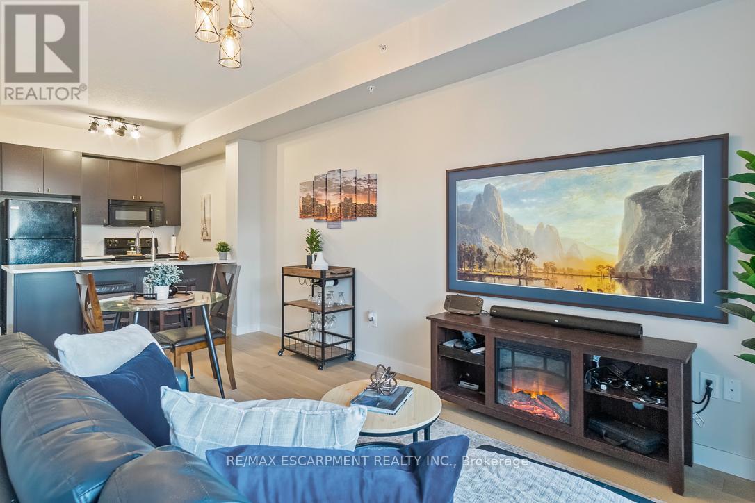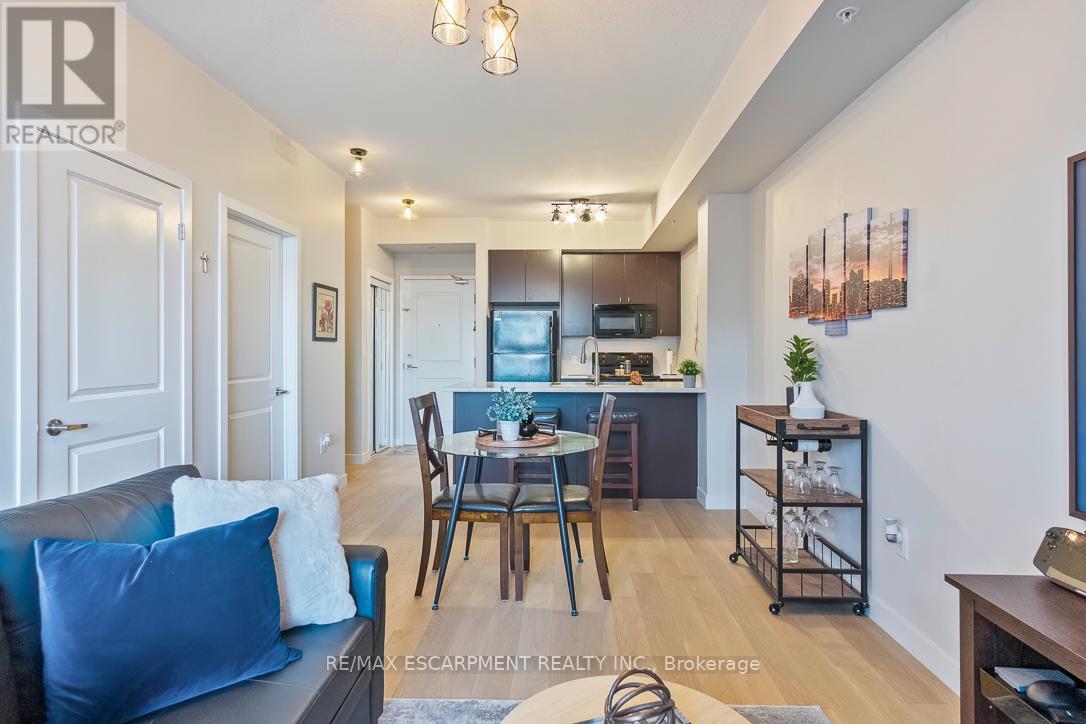 $441.50 MonthlyWelcome to this gorgeous unit in North Burlington's vibrant Vibe Condominiums. This impressive space offers high ceilings, The heart of this home is a sleek, modern kitchen featuring plenty of storage, newly painted cupboards and new countertops. The unit boasts fresh paint, new flooring and trim throughout along with updated lighting and hardware. The spacious bedroom offers a generous space while the den is perfect as a guest space, office, reading area or any other configuration you desire! The private balcony is rich with sunlight and offers the perfect place to relax. Vibe Condominiums offers an array of unbeatable amenities, including a rooftop terrace with stunning views, dining area and bbq's, a party room for hosting lively gatherings that require more space, and a gym for all your fitness needs. Movie nights will never be the same with the fabulous movie room you'll have at your disposal. Enjoy Millcroft Shopping Centre nearby - you'll find all you'll need and after the shopping chores are done for the day just scoot over to the many parks, get lost on the many walking trails and everything else this sought after pocket is known for. Highway access is only a few minutes away along with Go Train access - downtown Toronto is never far away. (id:24334)