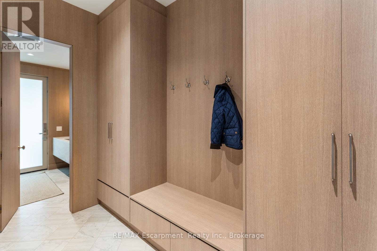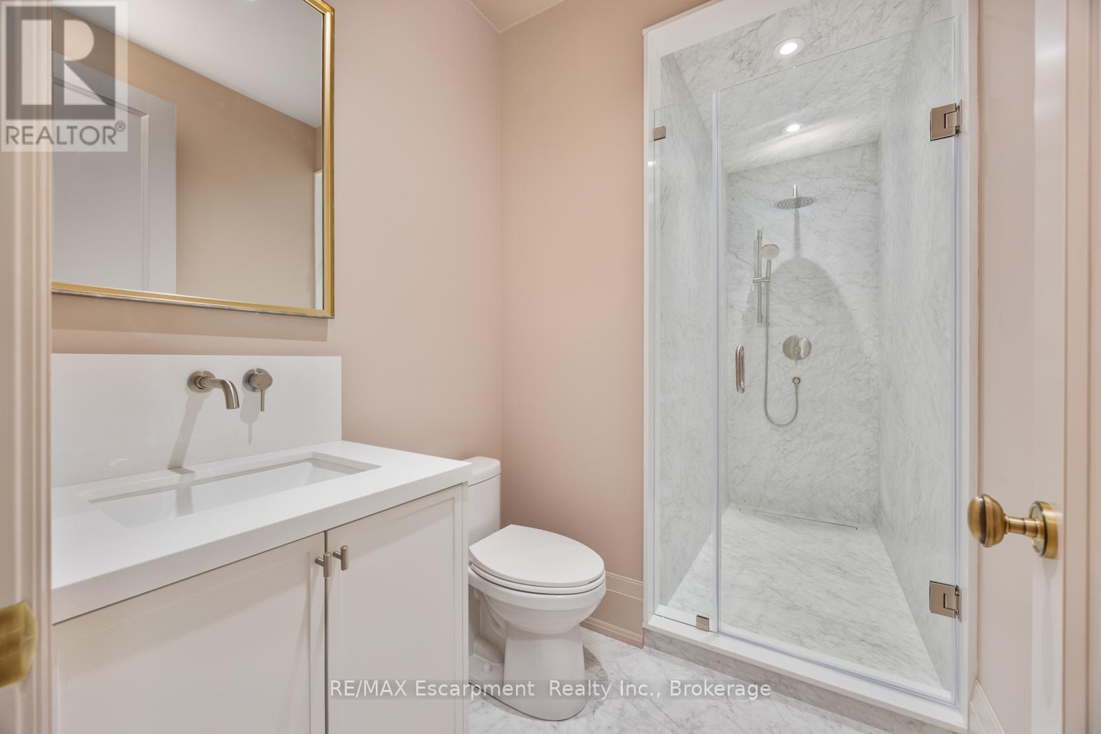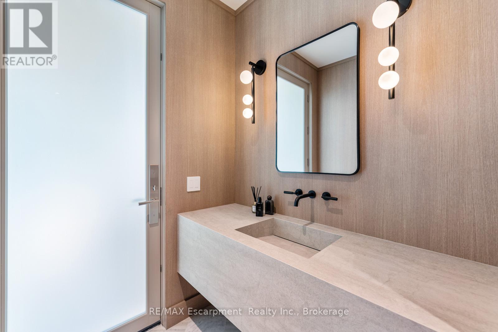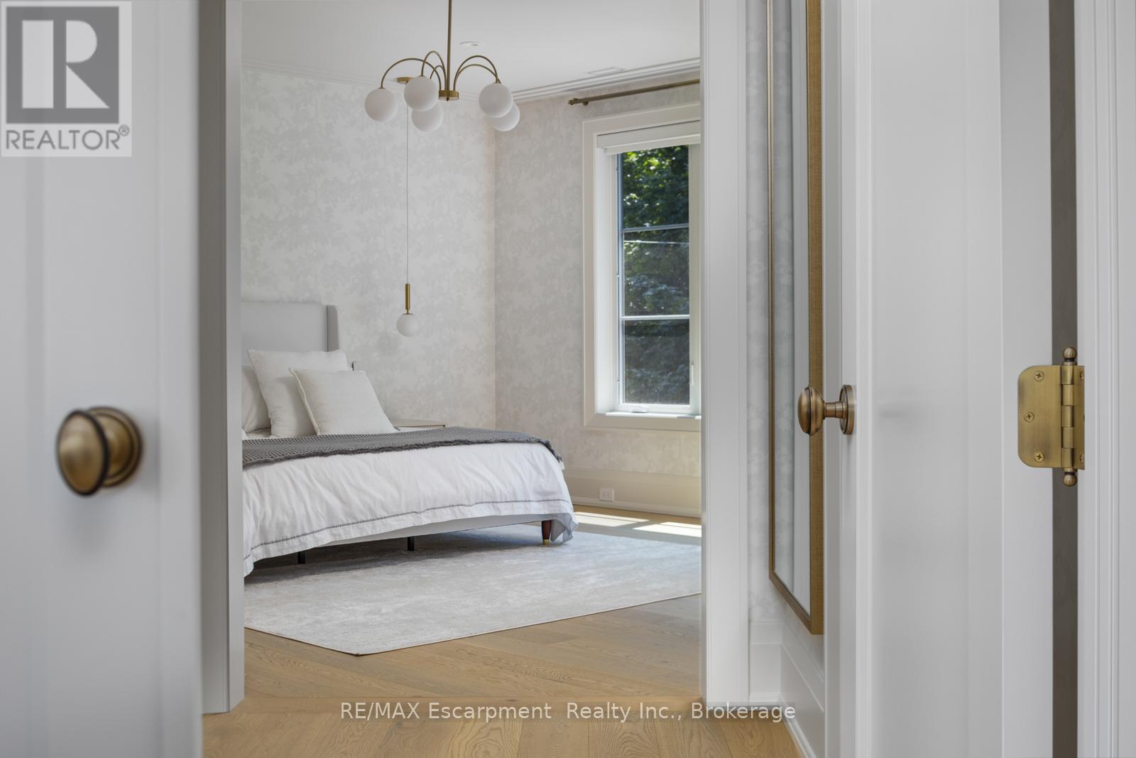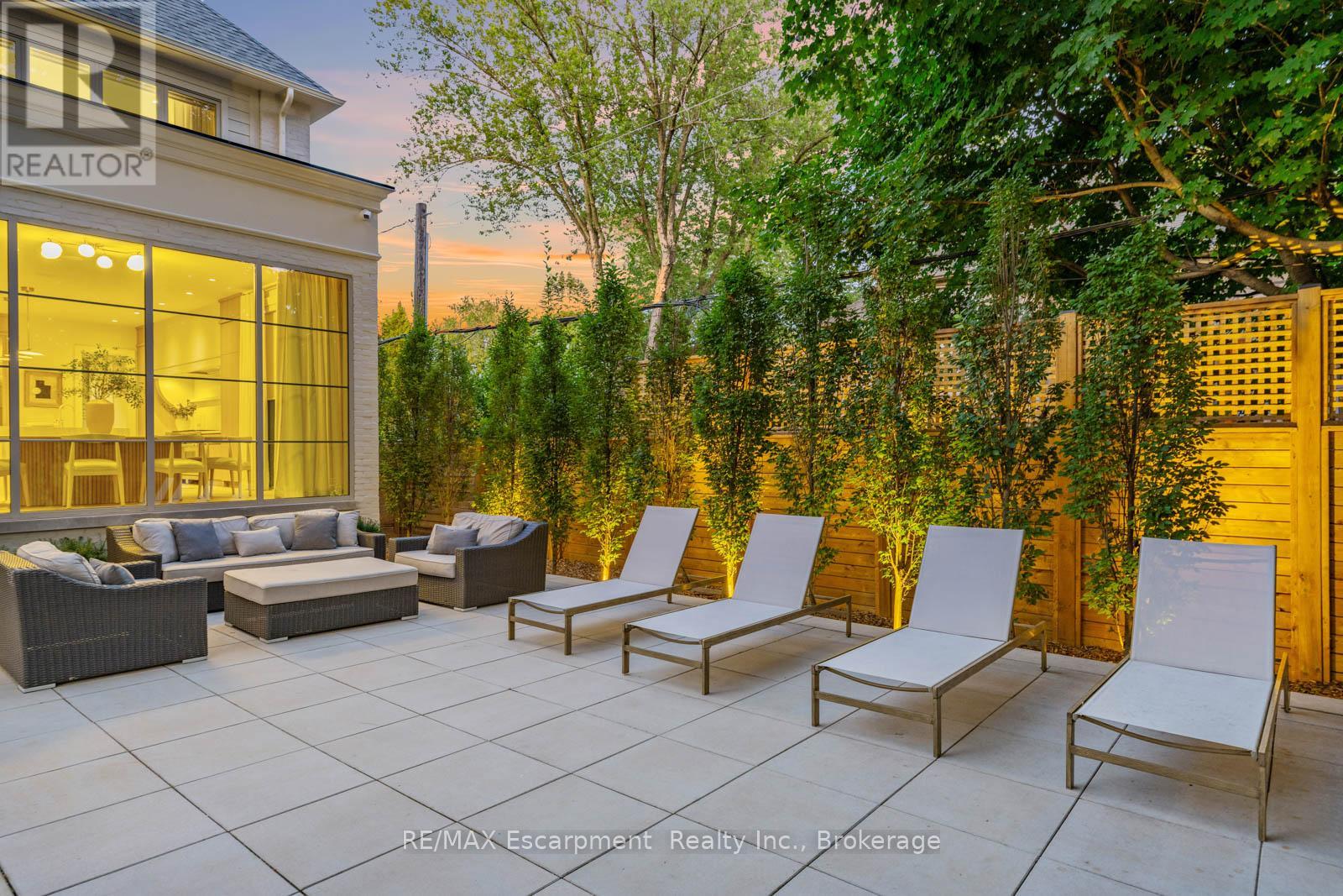 Welcome to 304 Pomona Avenue, a truly magnificent newly built home in Burlington's highly coveted Roseland community. Step inside and you're greeted by an incredible hand-carved plaster staircase rising through all three levels that's perfectly paired with rift-cut white oak herringbone floors that set an elevated tone. A formal dining room makes a statement with decorative ceiling beams, a glass wine display, and a marble wet bar. The private library draws you in, finished with oak panelled walls and a reading nook with floor-to-ceiling corner windows that flood the room with natural light. The living room completes the main level's gathering spaces with its plaster fireplace, oak shelving with integrated lighting, and full in-ceiling speakers. At the heart of the home, the kitchen offers a large custom plaster hood, oversized waterfall island, porcelain counters, and top-tier appliances including a 60" Wolf double oven, Sub-Zero fridge and freezer, and Bosch dishwasher. Pantry storage with reeded glass cabinetry and a walk-through servery extends the workspace. Just beyond, the breakfast area opens to a beautiful and serene covered terrace with a built-in BBQ, outdoor fridge, fireplace, and cedar-lined ceiling-overlooking the saltwater pool and landscaped gardens. Upstairs, four bedrooms each include private ensuites. The primary suite features a spacious walk-in closet and a spa-like bath with dual vanities, soaker tub, heated floors, and oversized shower. A full laundry room with custom cabinetry completes this level. The lower level expands the living space with a second kitchen, home theatre, gym, fifth bedroom, full bath, and radiant heated floors. Outside, stone patios, mature landscaping, irrigation, and a hydrangea wall create a welcoming backdrop. With 4+1 bedrooms, 7 bathrooms, and over 6,000 sq. ft. of living space, this Roseland residence combines thoughtful design with everyday comfort. Move in and enjoy! Luxury Certified. (id:24334)