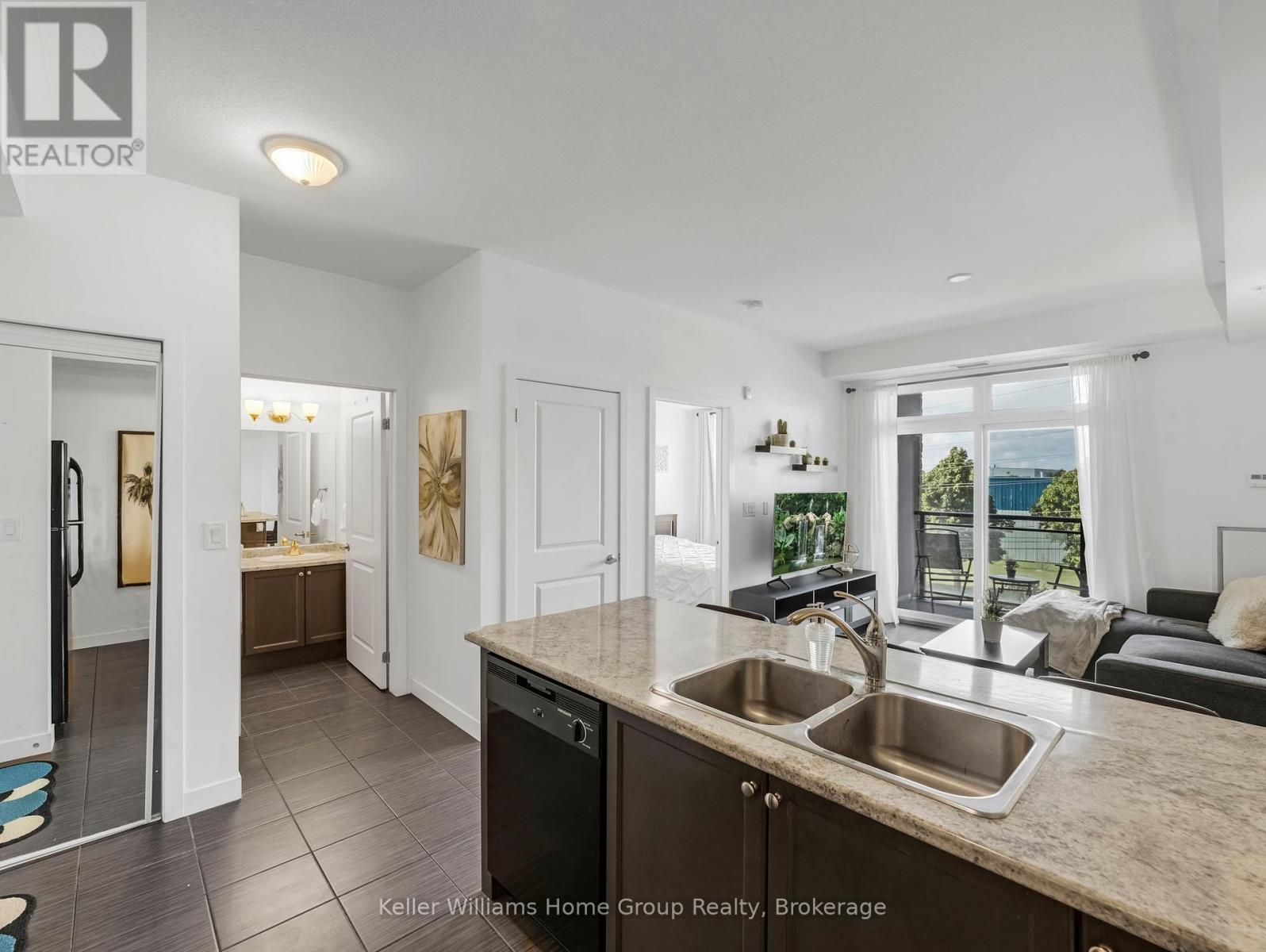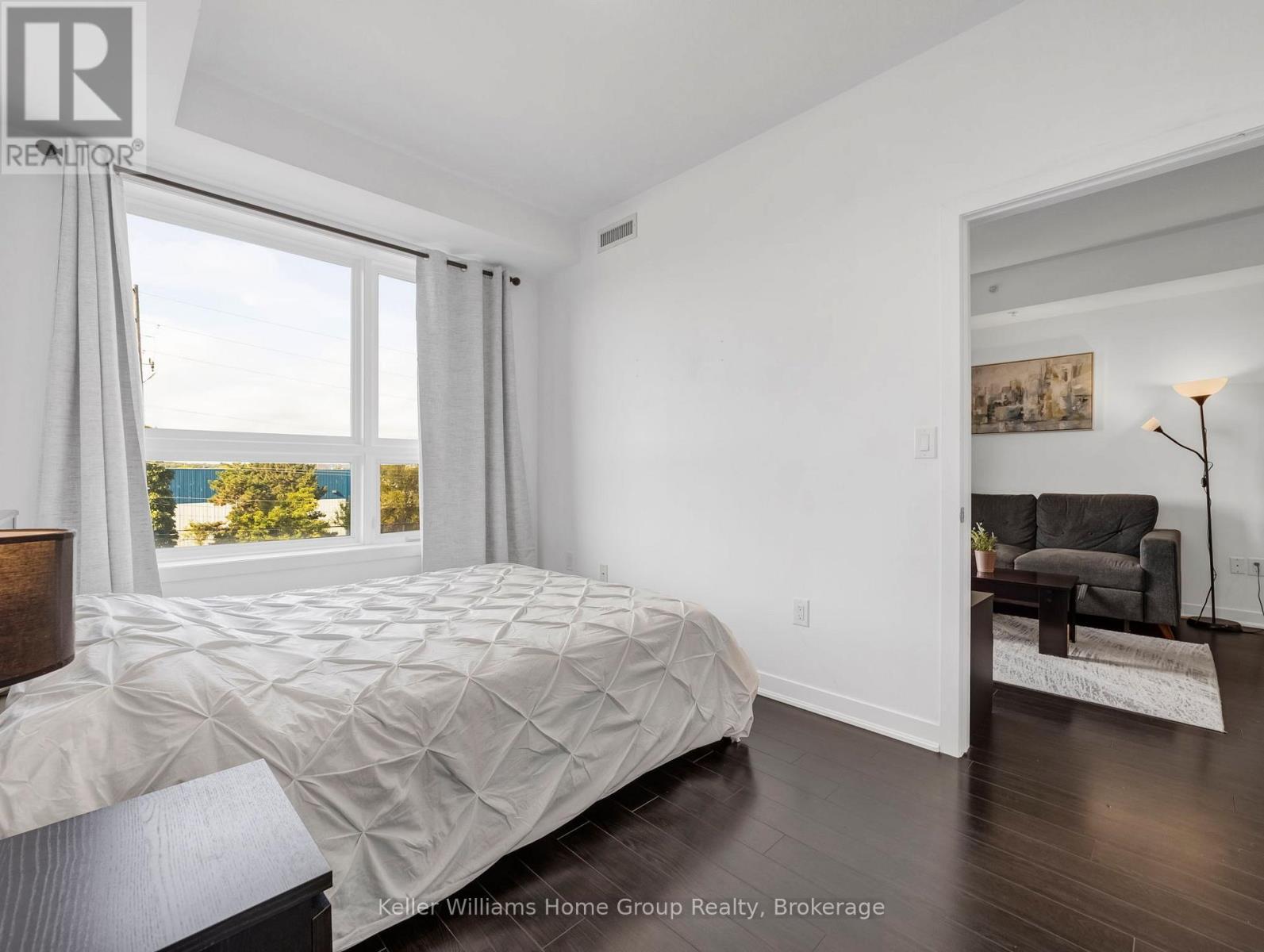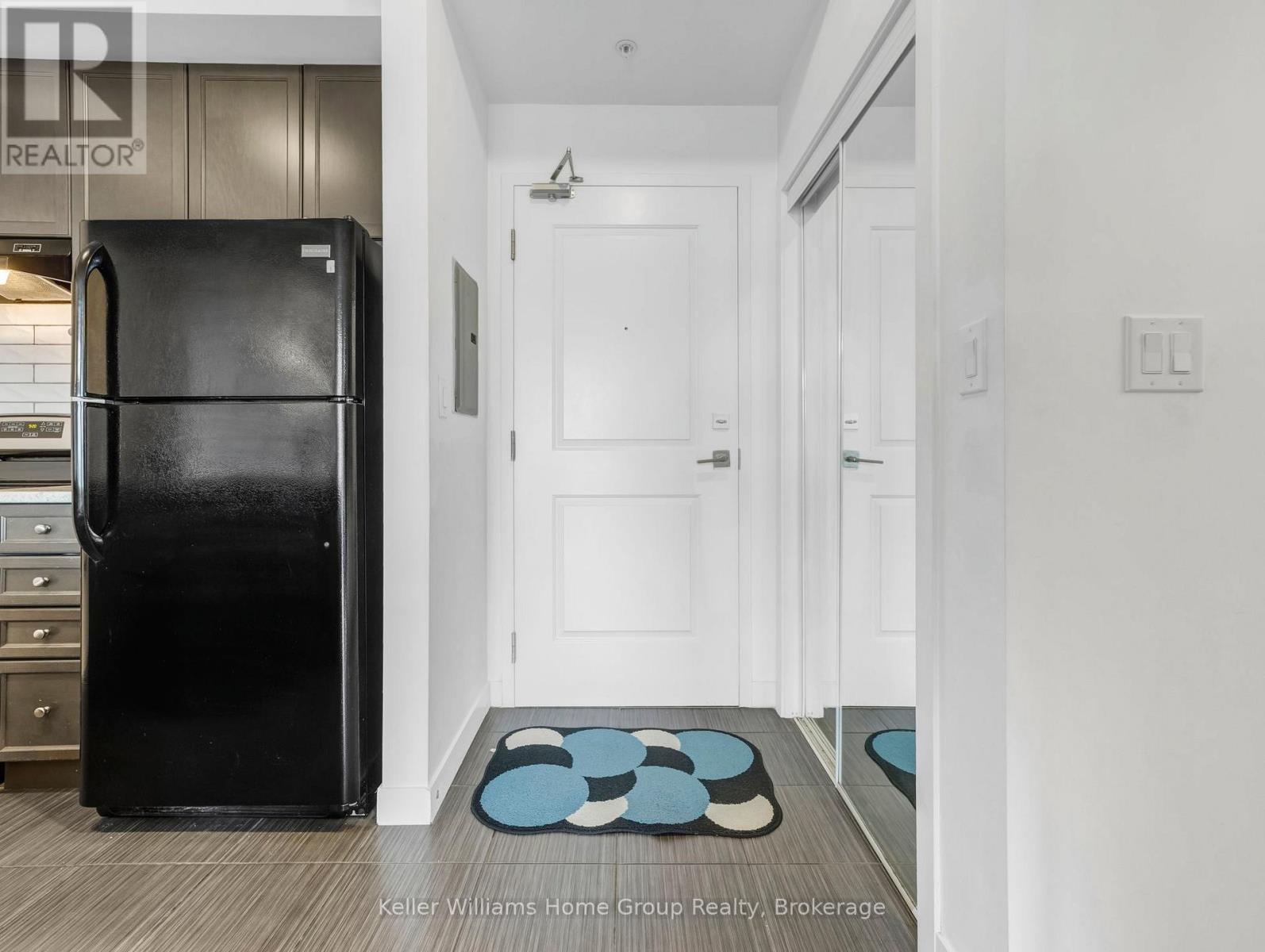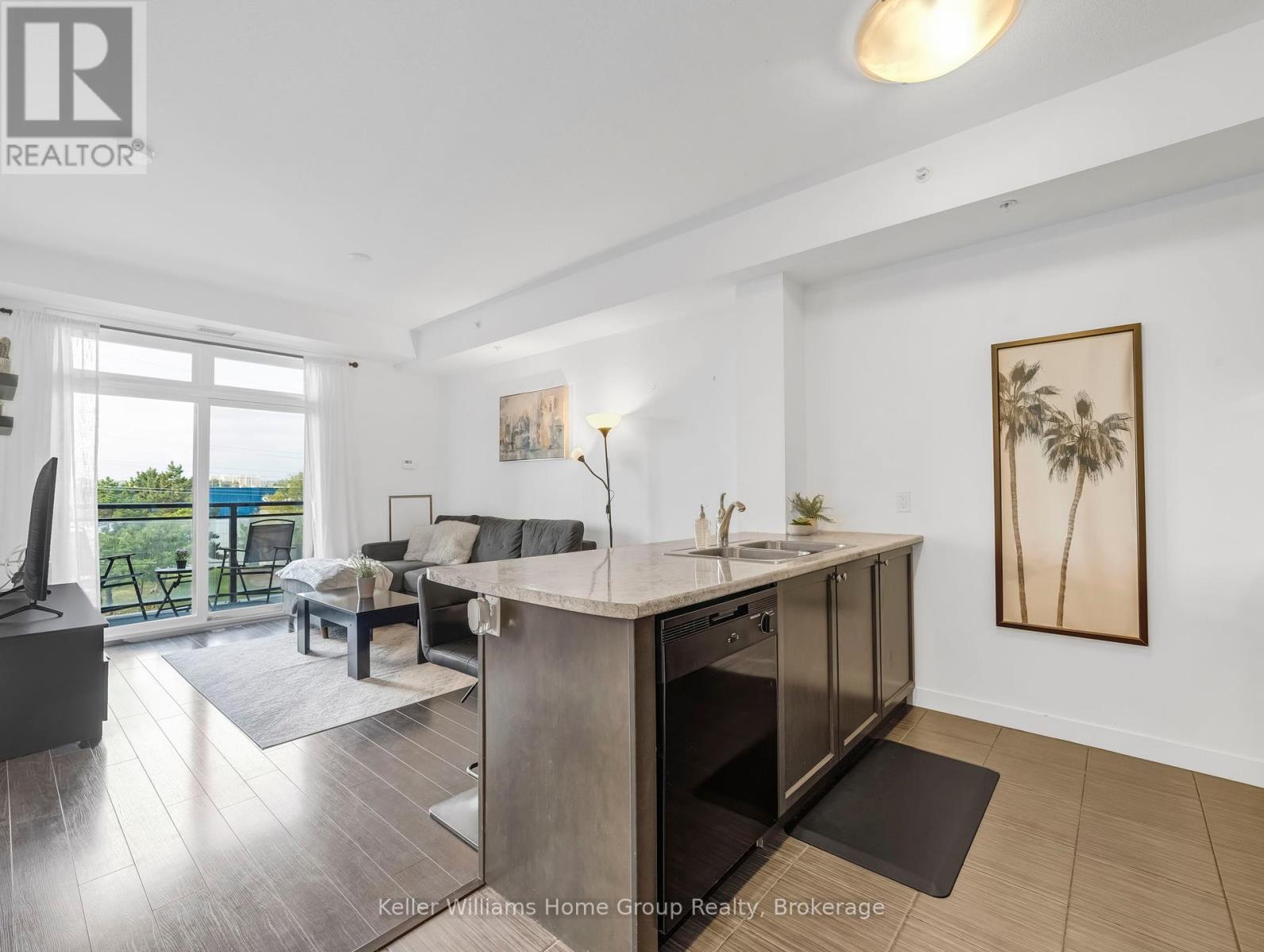 Welcome to Vibe Condos, where modern luxury meets intelligent living. This opportunity to own a well-managed residence is designed for comfort, efficiency, and an unparalleled lifestyle. This property is perfect for first-time buyers seeking a smart entry into the market, those looking to downsize without sacrificing quality, or the astute investor building a strong portfolio. Step into a bright, West-facing sanctuary that greets you with 9' ceilings and beautiful upgraded flooring that flows throughout. The open-concept layout is perfect for both entertaining and everyday living. Unwind in the living area, where a glass door leads to your private balcony, the ideal perch to enjoy morning coffees and sunsets. The kitchen is both stylish and functional, featuring a sleek breakfast bar for casual dining, a contemporary updated backsplash, and reliable appliances. Retreat to the spacious and bright bedroom, a peaceful haven offering ample space for rest and relaxation. The elegant four-piece bathroom is appointed with timeless finishes, and the ultimate convenience is delivered with in-suite laundry. This home is powered by a cutting-edge geothermal heating and cooling system, a premium feature that ensures year-round comfort and sustainable condo fees. The condo fees also cover heat, water and parking, presenting incredible value. This investment includes one underground parking space and one storage locker, both steps from the elevator. Indulge in a host of premium building amenities without leaving home. There is a spacious gym, party room for hosting gatherings, a stunning rooftop terrace with panoramic views, and ample visitor parking. Experience the ultimate in convenience with an unbeatable location. You are just minutes from a myriad of boutiques, cafes, and restaurants, easy access to public transit for a seamless commute, grocery stores for all your essentials, and quick access to the QEW and Highway 407, putting the entire Greater Toronto Area within reach. (id:24334)