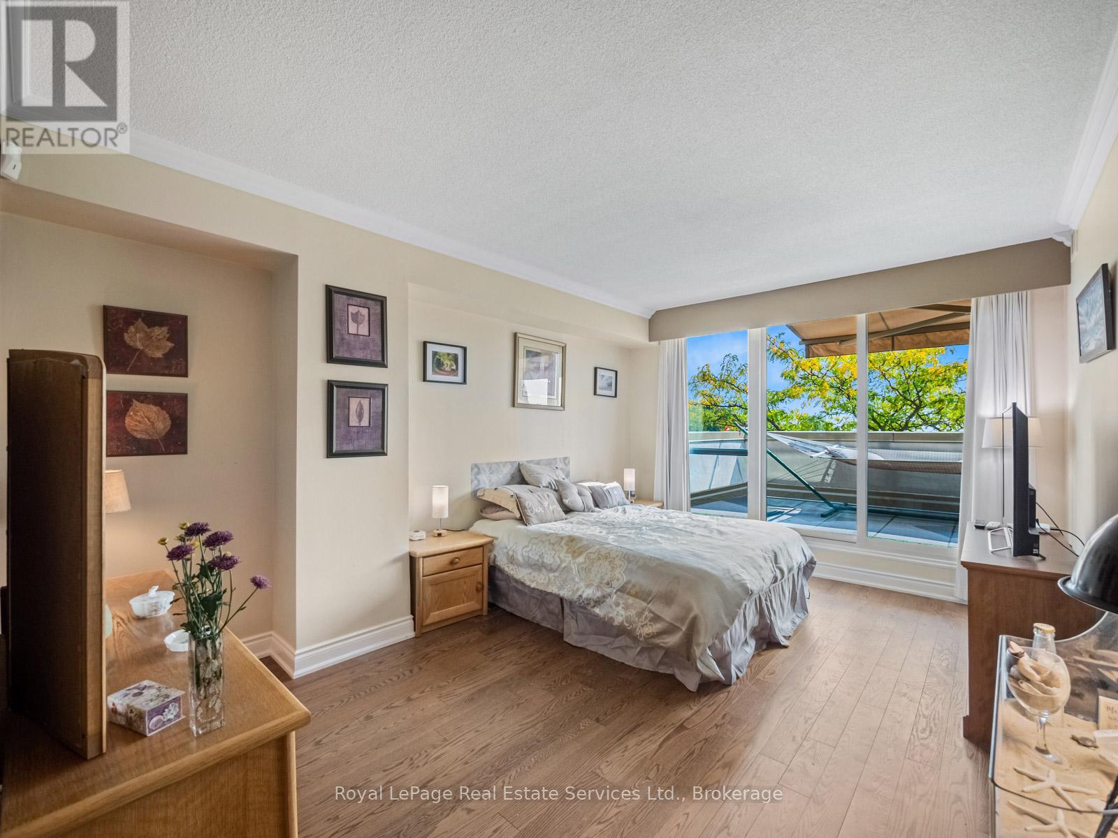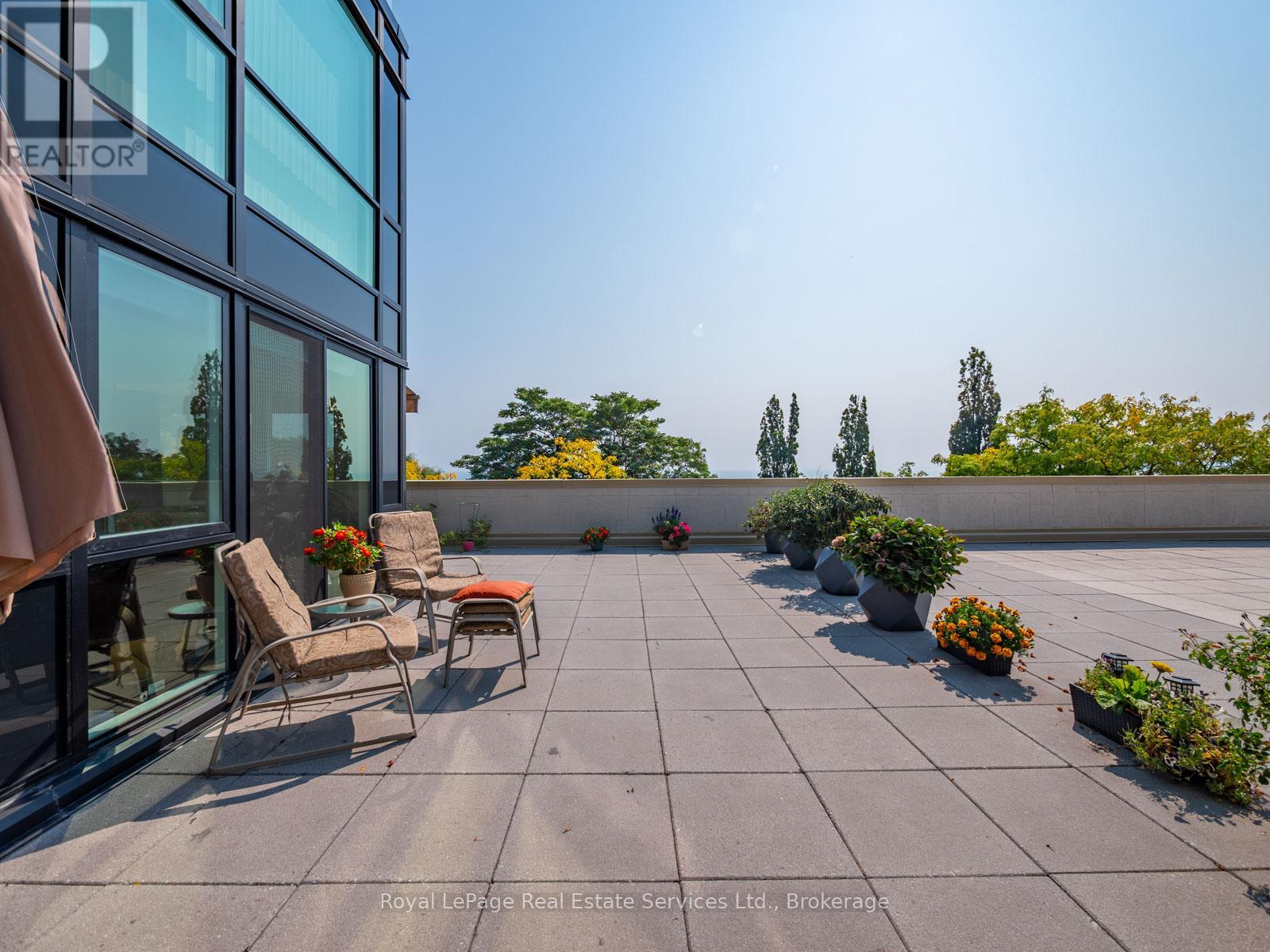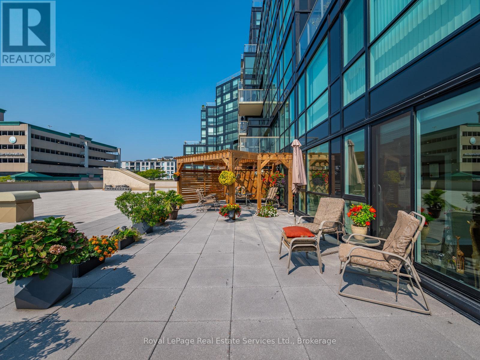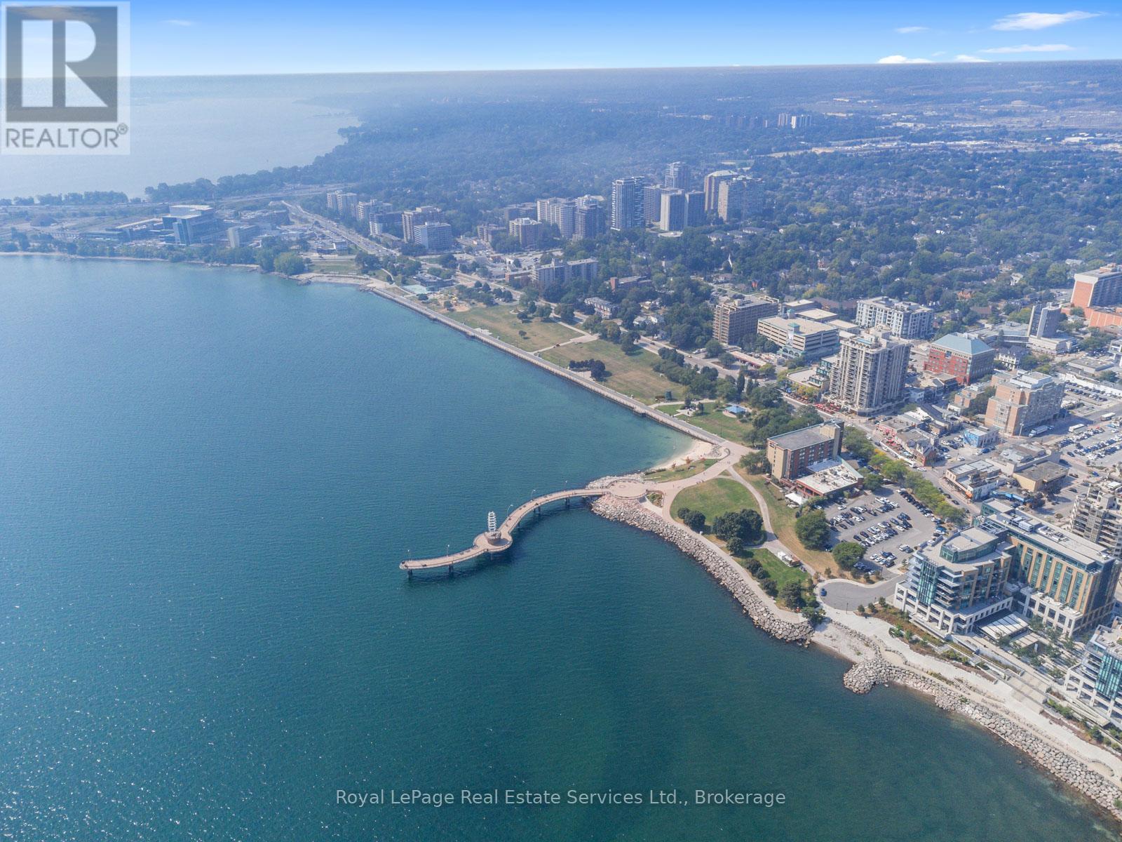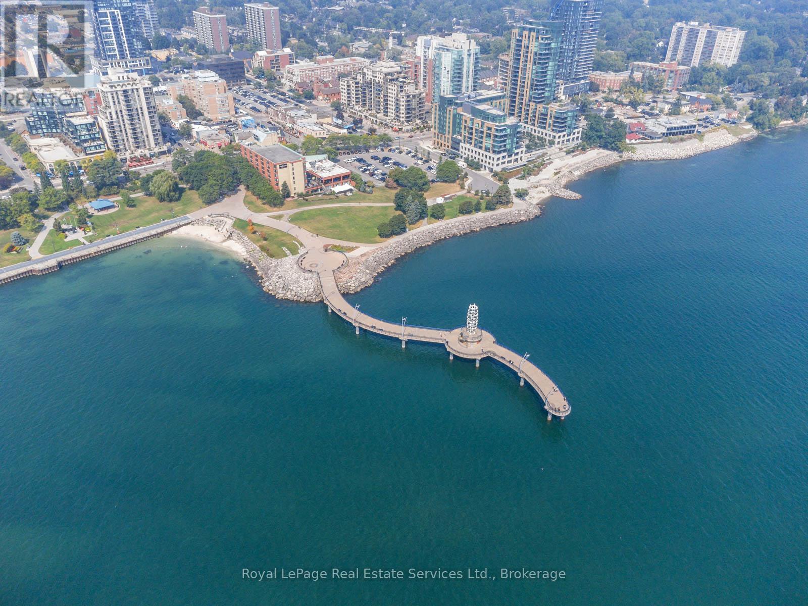 $1,872.55 MonthlyWelcome to the luxurious Harbourview Residences in prime downtown Burlington with spectacular views of Lake Ontario! This stunning 2+1 bedroom, 2+1 bath condo offers 1541SF of beautifully updated living space, perfectly complemented by an incredible 1200+SF wrap-around private terrace overlooking Lake Ontario and Spencer Smith Park. Bright and spacious, the south-facing corner unit is surrounded by floor-to-ceiling, wall-to-wall windows, flooding the home with natural light and offering breathtaking, unobstructed lake views. Both generously sized bedrooms feature en suite bathrooms and walkouts to the expansive terrace. The perfect spot for morning coffee or evening relaxation. The primary suite also boasts a large walk-in closet and hardwood floors throughout. An additional den provides flexible space for a home office, guest room, or reading nook. The living and dining room flow seamlessly, while the stylish eat in kitchen with updated floors and stone countertops, top this unit off with another walkout to the incredible lake view. Experience the ultimate in waterfront luxury, surrounded by Burlington's vibrant downtown shops, restaurants, and walking trails. Don't miss! (id:24334)