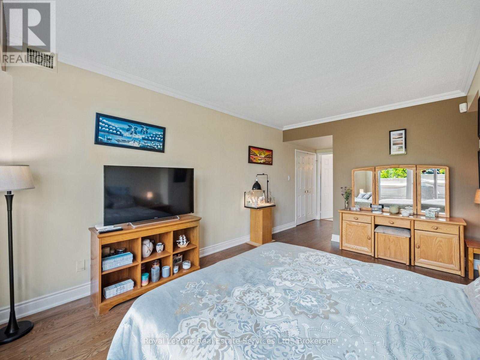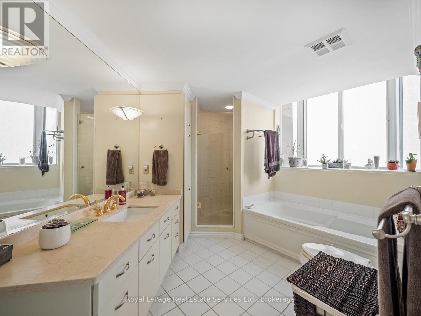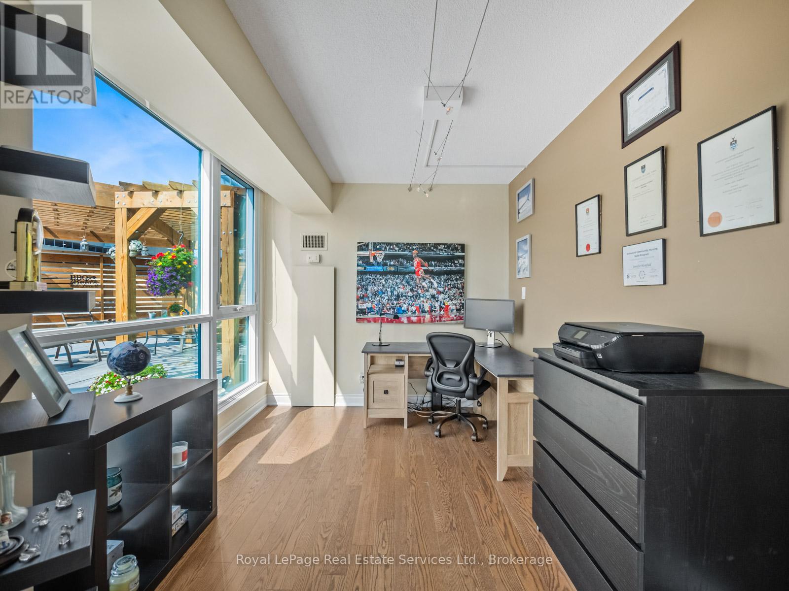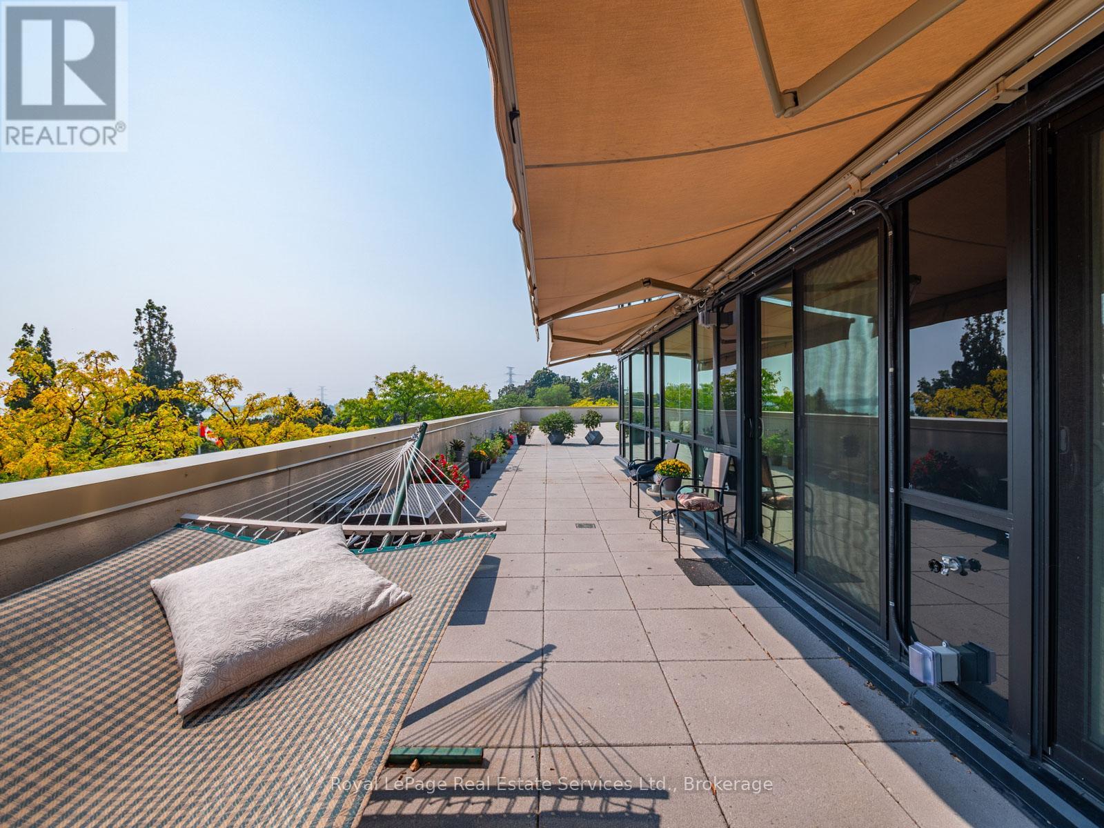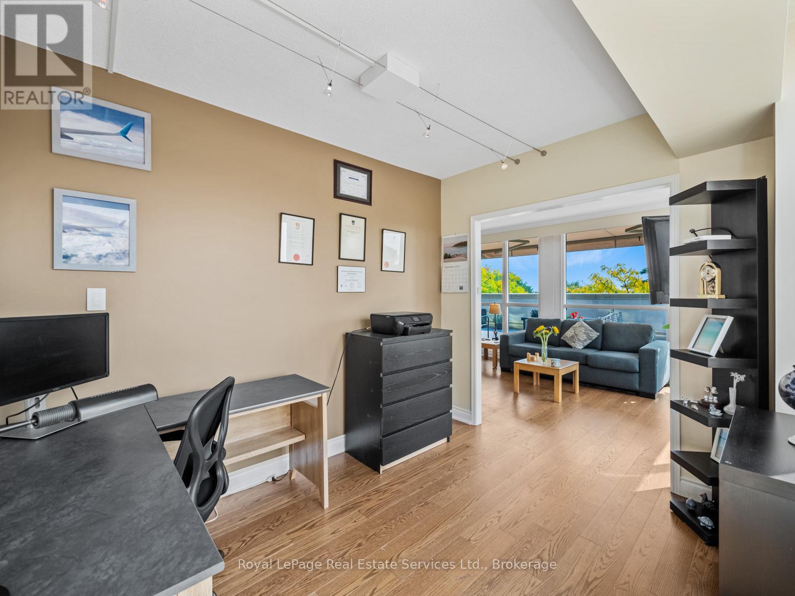 $1,872.55 MonthlyWelcome to the luxurious Harbourview Residences in prime downtown Burlington with spectacular views of Lake Ontario! This stunning 2+1 bedroom, 2+1 bath condo offers 1541SF of beautifully updated living space, perfectly complemented by an incredible 1200+SF wrap-around private terrace overlooking Lake Ontario and Spencer Smith Park. Bright and spacious, the south-facing corner unit is surrounded by floor-to-ceiling, wall-to-wall windows, flooding the home with natural light and offering breathtaking, unobstructed lake views. Both generously sized bedrooms feature en suite bathrooms and walkouts to the expansive terrace. The perfect spot for morning coffee or evening relaxation. The primary suite also boasts a large walk-in closet and hardwood floors throughout. An additional den provides flexible space for a home office, guest room, or reading nook. The living and dining room flow seamlessly, while the stylish eat in kitchen with updated floors and stone countertops, top this unit off with another walkout to the incredible lake view. Experience the ultimate in waterfront luxury, surrounded by Burlington's vibrant downtown shops, restaurants, and walking trails. Don't miss! (id:24334)