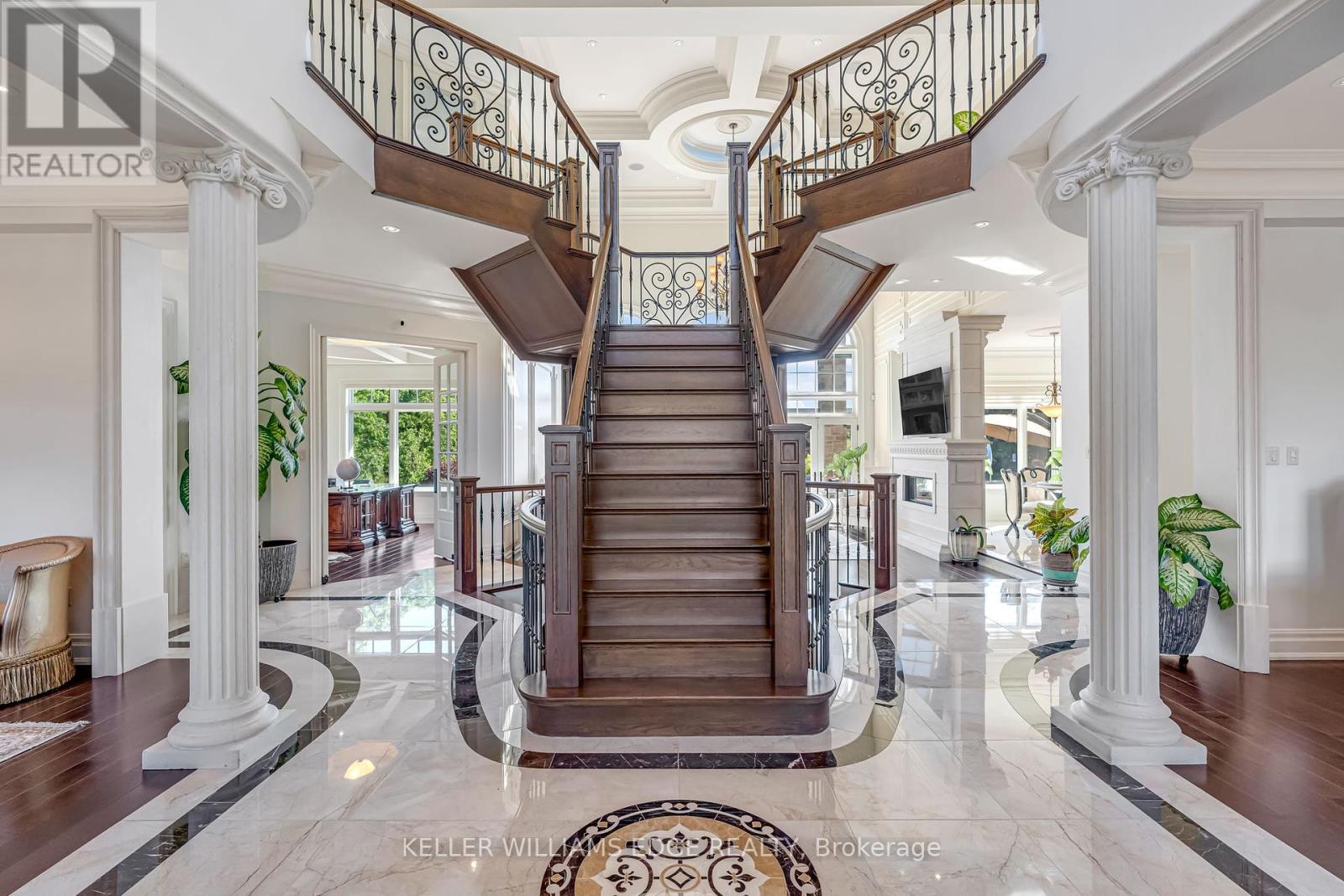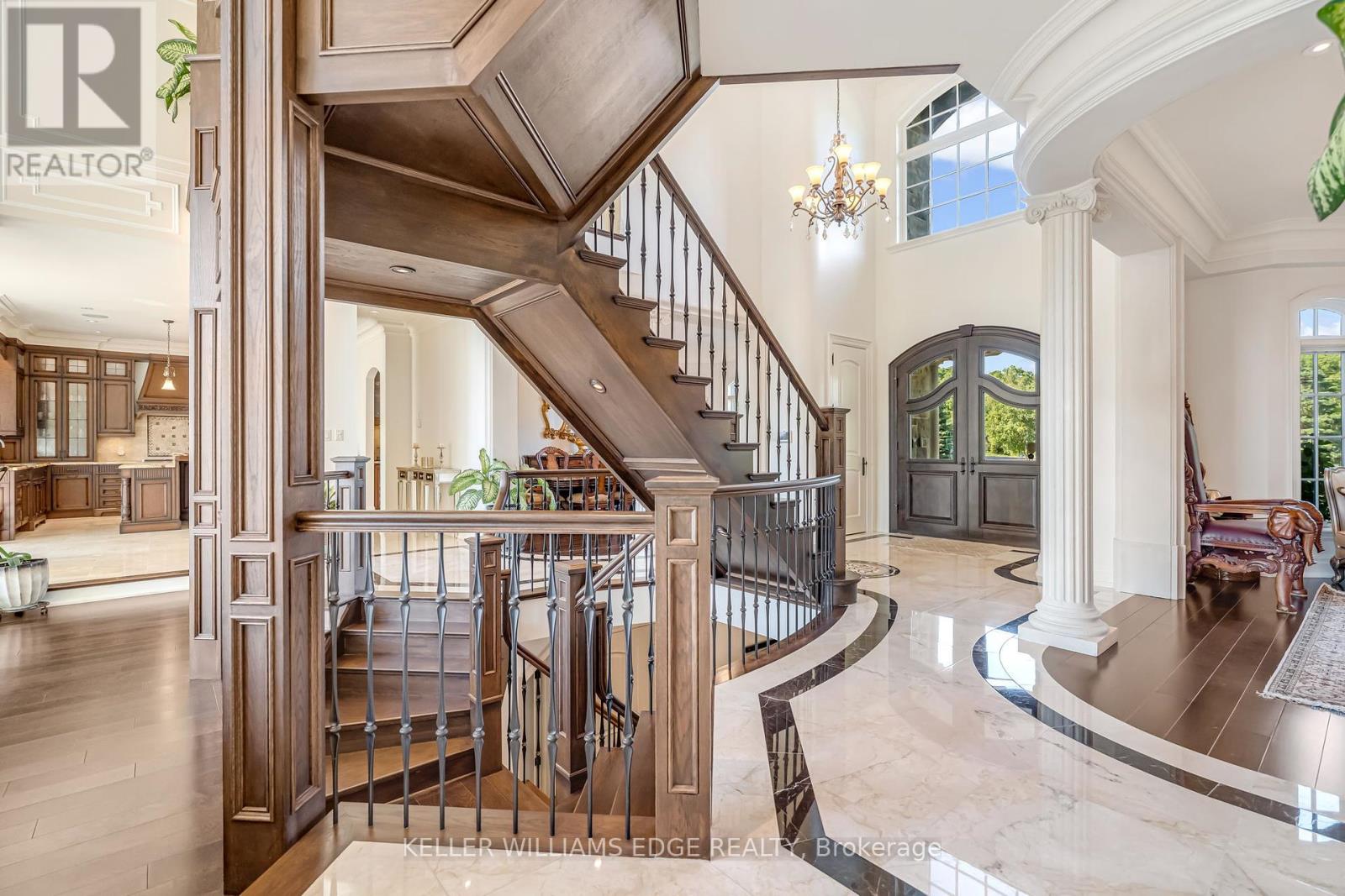LUXURY| Captivating Setting | Custom Jay Robinson Estate | 1.95 Acres of Refined Living | 5 Bed | 6 Bath. Custom-built estate by Jay Robinson. Spanning nearly 7,500 sq. ft. of meticulously crafted living space, unmatched blend of luxury, comfort & privacy. Nestled amidst conservation lands & scenic horse farms. Inside features: soaring 18-foot vaulted ceilings, a dramatic limestone feature wall, custom millwork, complete - home Sony sound system perfect for entertaining or quiet evenings in. The chef-inspired gourmet kitchen is equipped w/ premium appliances by Wolf | Liebherr | Marvel |Miele | Fisher & Paykel. The luxurious primary suite features dual walk-in closets, spa-like ensuite, & private balcony overlooking tranquil countryside vistas. Designed for year-round efficiency & comfort, the home inc. dual furnaces, A/C units, wells, hot water tanks, triple sump pump system w/ battery backup. A Generac generator- 20KW providing full-home power assurance w/ a 200-amp panel. Oversized 3-car garage complete w/2- EV chargers, reflecting the property's commitment to modern sustainability. Outdoors, enjoy a resort-style pool complete w/built-in lazy river & cascading waterfall. Swim spa hot & professionally landscaped gardens. A basketball pad is perfect for recreational use & potential retrofit for multi-sport play, inc. Pickleball. Night-lit gardens w/ water feature further elevate the ambiance. Cabana w/ 5-piece bath, built-in BBQ, & dedicated al fresco dining area. Recreational amenities include a mini putt golf course & expansive open space designed for entertaining. The lower level offers a separate walk-up entrance and is primed for customization with rough-ins for a kitchen and 2- bathroom i ideal for a future in-law suite or guest retreat. Potential for an elevator installation. This exceptional rural estate offers complete privacy, timeless style, a true resort-like lifestyle, minutes from top-tier amenities such as Costco & renowned Bruce Trail. (id:24334)