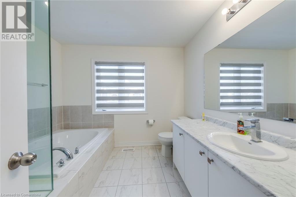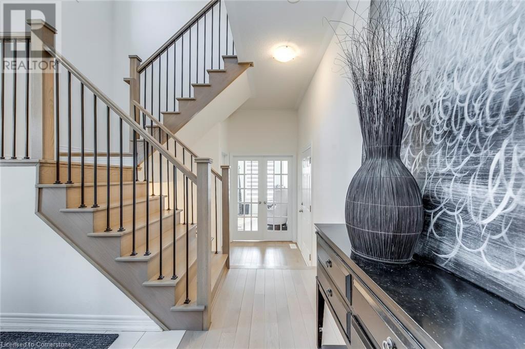 Incredible Value in Prime Alton Village Located on a premium corner lot that backs directly onto a child and dog friendly park, this spacious 4-bedroom two-storey home offers outstanding value in one of Burlington's most desirable neighbourhoods. A bright and cheerful great room creates the perfect hub for everyday living and entertaining - a warm, family-friendly space you'll love spending time in. The main floor also features an inviting office or library, ideal for working or studying from home. Light, neutral finishes throughout create a bright, timeless interior that's easy to make your own. Upstairs, you'll find a thoughtfully designed layout with a convenient second-floor laundry area, a spacious primary bedroom with its own ensuite, plus three additional generously sized bedrooms and a second full bathroom perfect for family living. The fully finished basement includes a full bathroom, adding flexible living space for guests, recreation, or extended family. With its unbeatable location, functional layout, and stylish touches, this home is a rare opportunity in Alton Village and the one of the best values currently on the market. (id:24334)