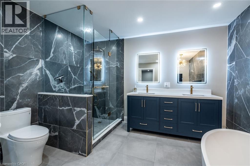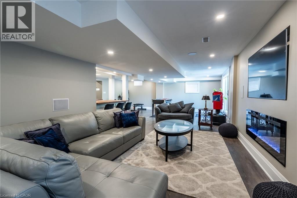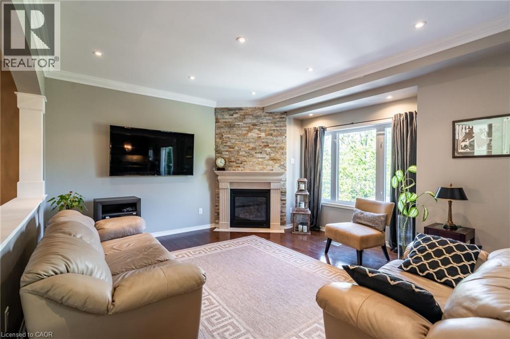 Stunning, 5 bedroom Alton Village Executive Family Home. Rarely offered ravine lot with backyard oasis featuring a gorgeous heated inground saltwater pool and professionally landscaped lot. Over 4,000 square feet of luxury living space. Open main floor features living room, formal dining room, den, eat in kitchen, powder room and family room. Hardwood and tile flooring throughout this level. Family room has crown moulding and fireplace with feature hearth. California shutters in the living room. Hardwood stairs lead to the second floor. 5 spacious bedrooms with hardwood flooring. Recently renovated luxury master bedroom ensuite with fireplace, glass enclosed shower, vessel soaker tub and double sinks with bluetooth mirrors (2022). 2 bedrooms have a Jack and Jill ensuite bathroom with stunning tilework and bluetooth mirror (2021). Updated main bathroom with glass enclosed shower and bluetooth mirror (2021). Escape to the lower level for entertaining or chilling out. Could be turned into an ideal in-law suite. Features a finished rec room with fireplace, dry bar and servery, full, modern bathroom, storage room and a second laundry room (2018). The bathroom and laundry room have heated tile flooring. Rec room has ceiling speakers. Storage room could be a second den. Patio doors walk out to your backyard oasis. Heated inground saltwater pool, hot tub, pergola and theatre wall for entertaining guests or watching the big game. Exterior speakers in pool area. Professionally hardscaped and totally private in a ravine setting. This home checks off all the boxes for a growing family or multi-generational home. (id:24334)