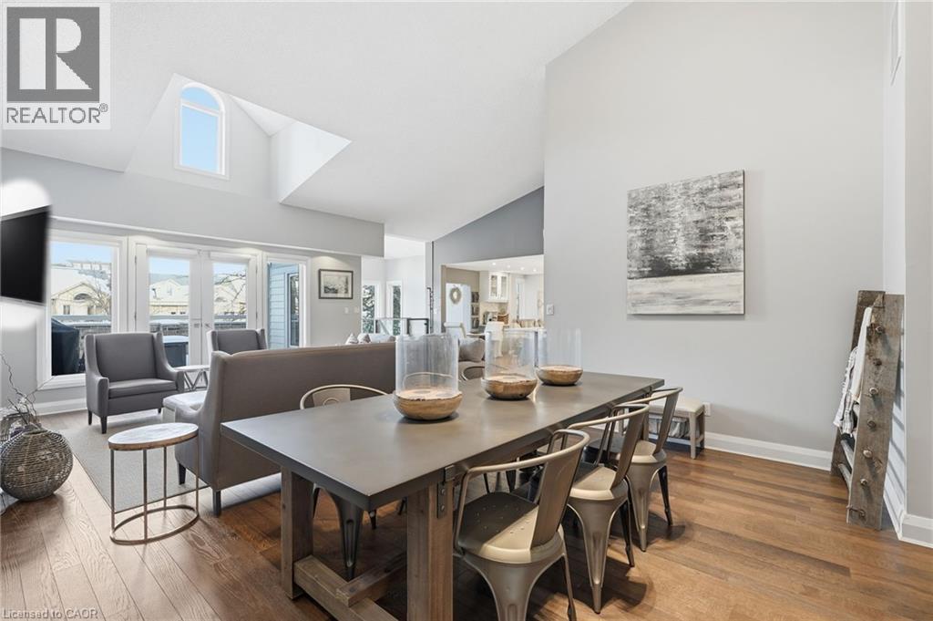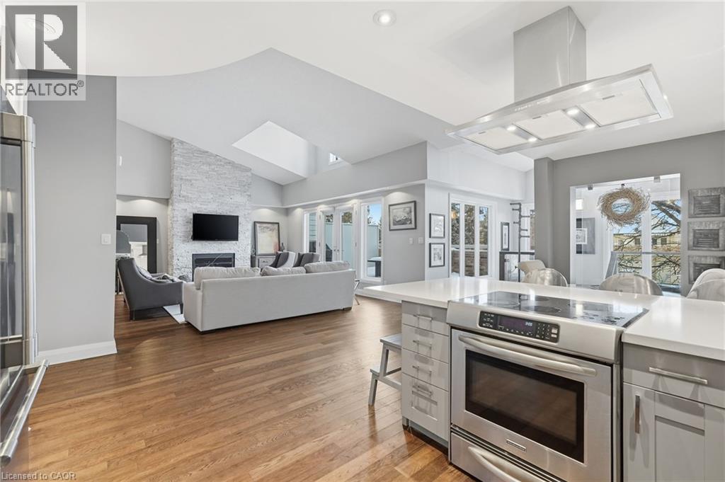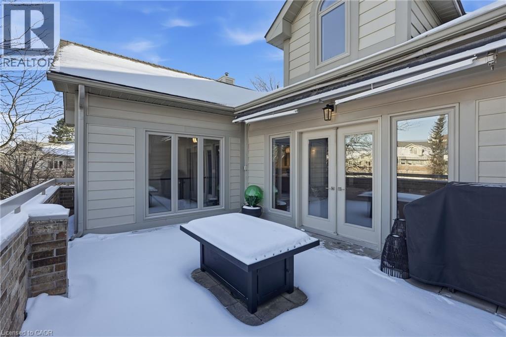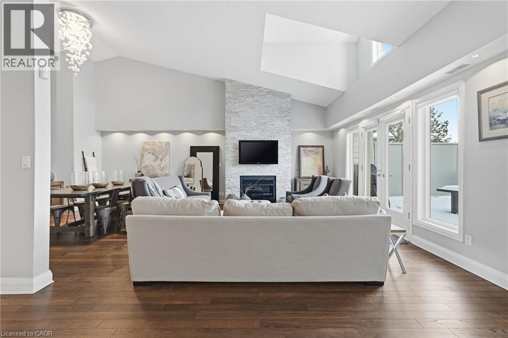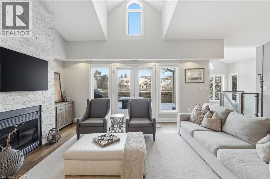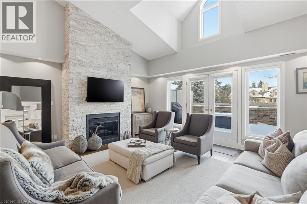 Step inside this exceptional executive townhome at The Terraces on New Street, where refined living meets everyday convenience in the heart of Burlington. A dramatic sun-filled great room with soaring 15.5-foot cathedral ceilings and a gas fireplace creates an impressive yet welcoming space to relax or entertain. Rich hardwood flooring flows throughout the entire home, adding warmth and elegance to every room.The open-concept layout leads into a chef-inspired kitchen with expansive quartz countertops and a generous peninsula—perfect for gathering, prepping, and hosting. From here, step out to your private east-facing terrace, ideal for morning coffee or alfresco evenings with friends.The main level offers two spacious bedrooms, each with its own full bathroom. The primary retreat features a walk-through closet, along with a spa-like five-piece ensuite complete with double sinks, a soaker tub, and a glass shower. The second bedroom enjoys ensuite privilege to a 4 pc bathroom. A main-floor laundry area adds everyday convenience. Downstairs, the fully finished lower level offers incredible flexibility—perfect for a home office, gym, guest suite, or media room. You’ll also find a 3-pc bathroom, an additional walk-in closet with built-ins, and multiple storage closets, providing exceptional storage throughout the home. All new windows were replaced in 2024, offering added comfort, energy efficiency, and peace of mind. Inside garage entry and ample storage add practicality to luxury living. Enjoy maintenance-free living just steps to downtown Burlington, the lake, top-rated schools, parks, and shopping. This is a rare opportunity for turnkey elegance in a truly unbeatable location. (id:24334)