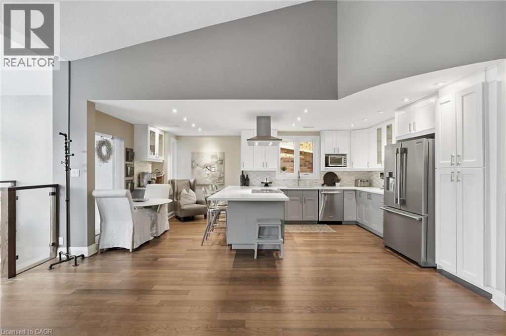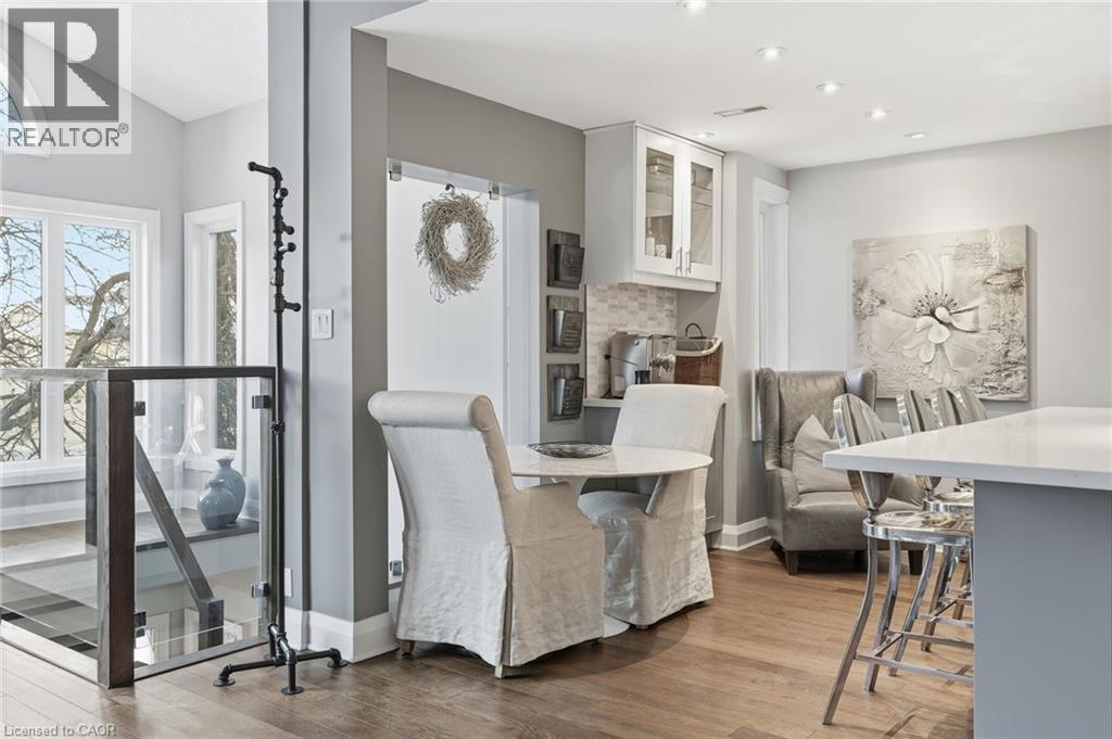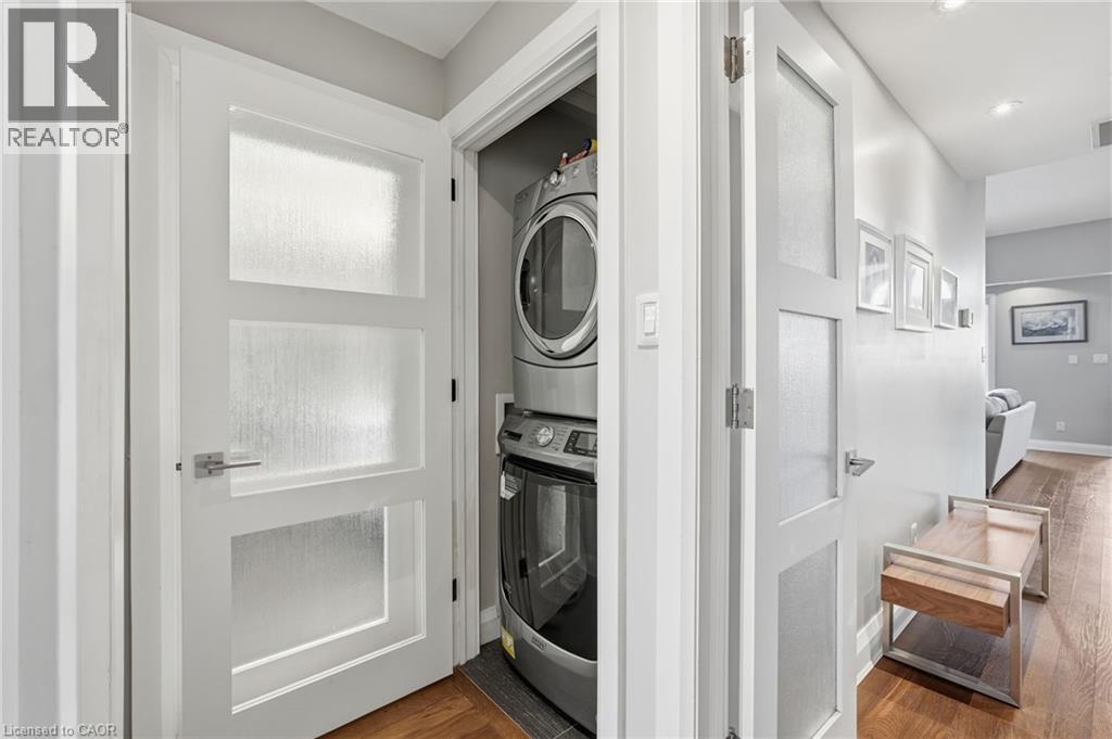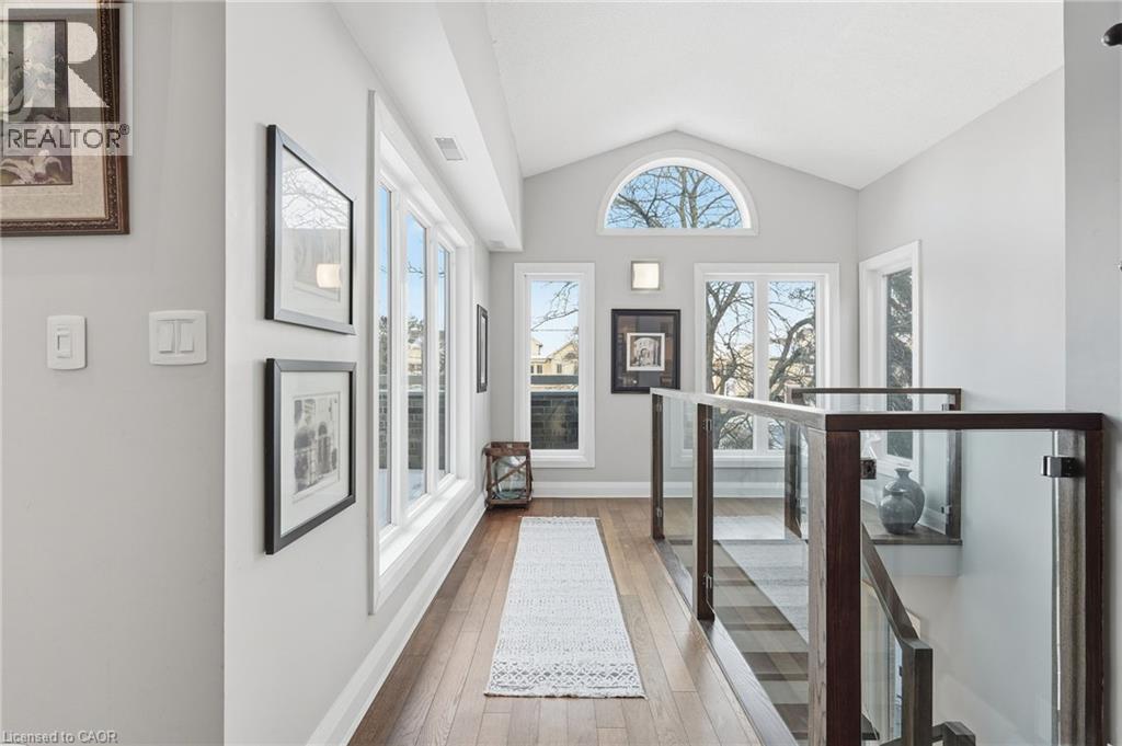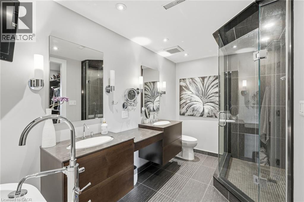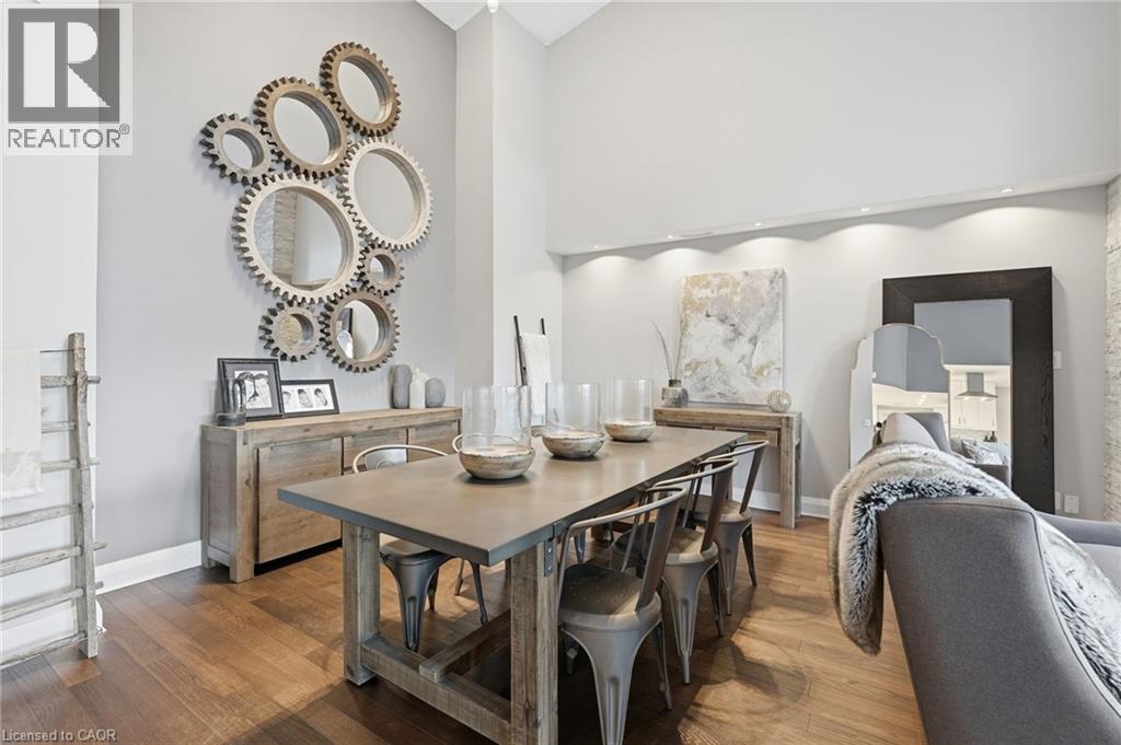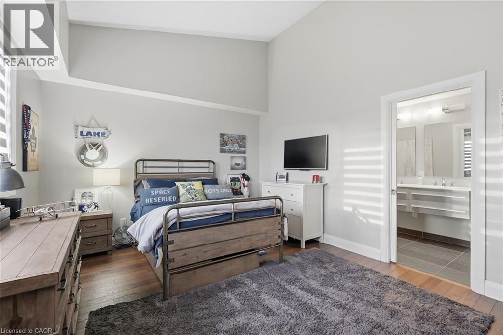 Step inside this exceptional executive townhome at The Terraces on New Street, where refined living meets everyday convenience in the heart of Burlington. A dramatic sun-filled great room with soaring 15.5-foot cathedral ceilings and a gas fireplace creates an impressive yet welcoming space to relax or entertain. Rich hardwood flooring flows throughout the entire home, adding warmth and elegance to every room.The open-concept layout leads into a chef-inspired kitchen with expansive quartz countertops and a generous peninsula—perfect for gathering, prepping, and hosting. From here, step out to your private east-facing terrace, ideal for morning coffee or alfresco evenings with friends.The main level offers two spacious bedrooms, each with its own full bathroom. The primary retreat features a walk-through closet, along with a spa-like five-piece ensuite complete with double sinks, a soaker tub, and a glass shower. The second bedroom enjoys ensuite privilege to a 4 pc bathroom. A main-floor laundry area adds everyday convenience. Downstairs, the fully finished lower level offers incredible flexibility—perfect for a home office, gym, guest suite, or media room. You’ll also find a 3-pc bathroom, an additional walk-in closet with built-ins, and multiple storage closets, providing exceptional storage throughout the home. All new windows were replaced in 2024, offering added comfort, energy efficiency, and peace of mind. Inside garage entry and ample storage add practicality to luxury living. Enjoy maintenance-free living just steps to downtown Burlington, the lake, top-rated schools, parks, and shopping. This is a rare opportunity for turnkey elegance in a truly unbeatable location. (id:24334)