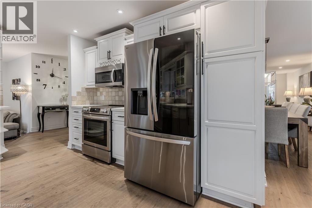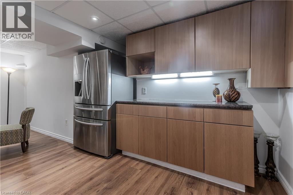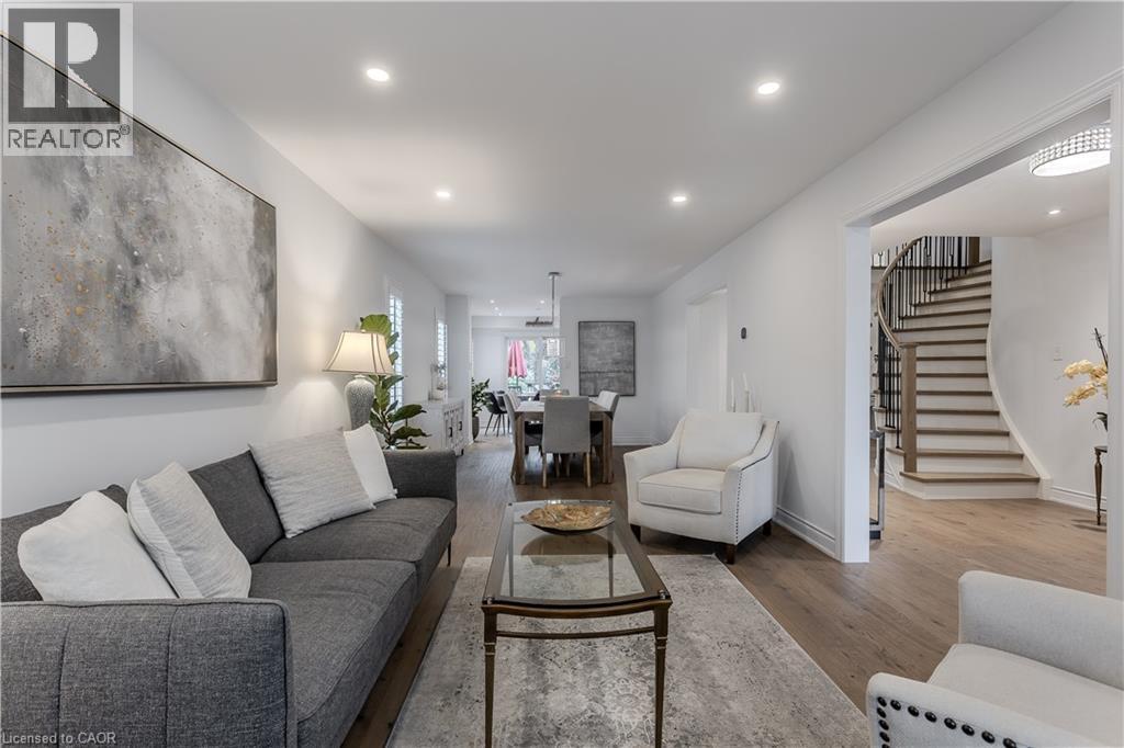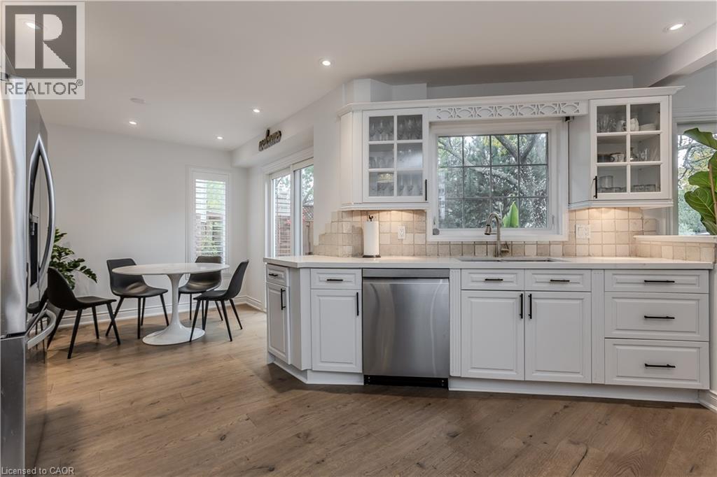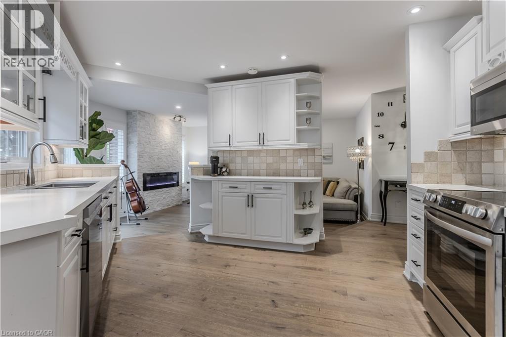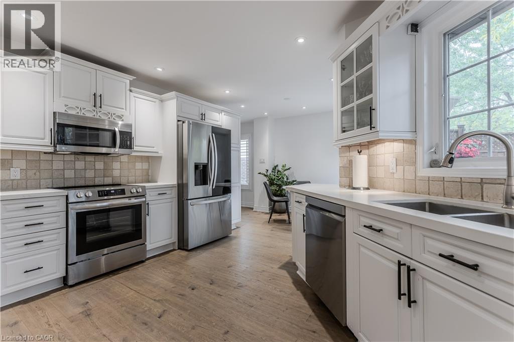 Discover the perfect Family Lifestyle Location in this updated home with 3,479sqft total living space, nestled in one of Burlington’s most well-connected neighbourhoods. Fully renovated on the main and upper levels, it blends modern comfort with a dream family lifestyle setting. Backing onto a mini ravine with Ireland Park just beyond, and schools, parks, trails, amenities, and highway access mins away, life flows with ease. The exceptional curb appeal sets the tone—professionally landscaped, mature trees, all-brick façade, and a stone walkway lead to a double door entry. A side trail next to the home connects directly to the park, making family adventures effortless. Inside, the bright, open-concept main level is designed for family living and connection. Wide plank light oak hardwood and California shutters flow throughout. The living and dining spaces are perfect for gatherings, while the spacious eat-in kitchen impresses with custom cabinetry, quartz countertops, premium SS appliances, brick backsplash, and a breakfast nook w/ walkout to the rear deck. A sunken family room with a contemporary stone fireplace and gallery lighting invites memorable evenings. The convenience of a main-floor laundry room with side yard access is ideal for busy households. Upstairs, hardwood continues across 4 generous bedrooms. The expansive primary suite offers multiple oversized windows, a vanity nook, walk-in closet, and a spa-like ensuite with a glass shower and freestanding tub. A 4pc main bath with dual sinks completes this level. The lower level expands the lifestyle possibilities: a versatile rec room, kitchenette, additional bedroom with 2 large closets, and a 3pc bath—perfect for teens, in-laws, guests, or a nanny. Step outside to your private entertaining oasis. The fully fenced yard, mature trees, interlock patio, and spacious 2-tier deck set the stage for family BBQs, outdoor dining, and year-round fun. This is a home where families grow, gather, and truly live. (id:24334)