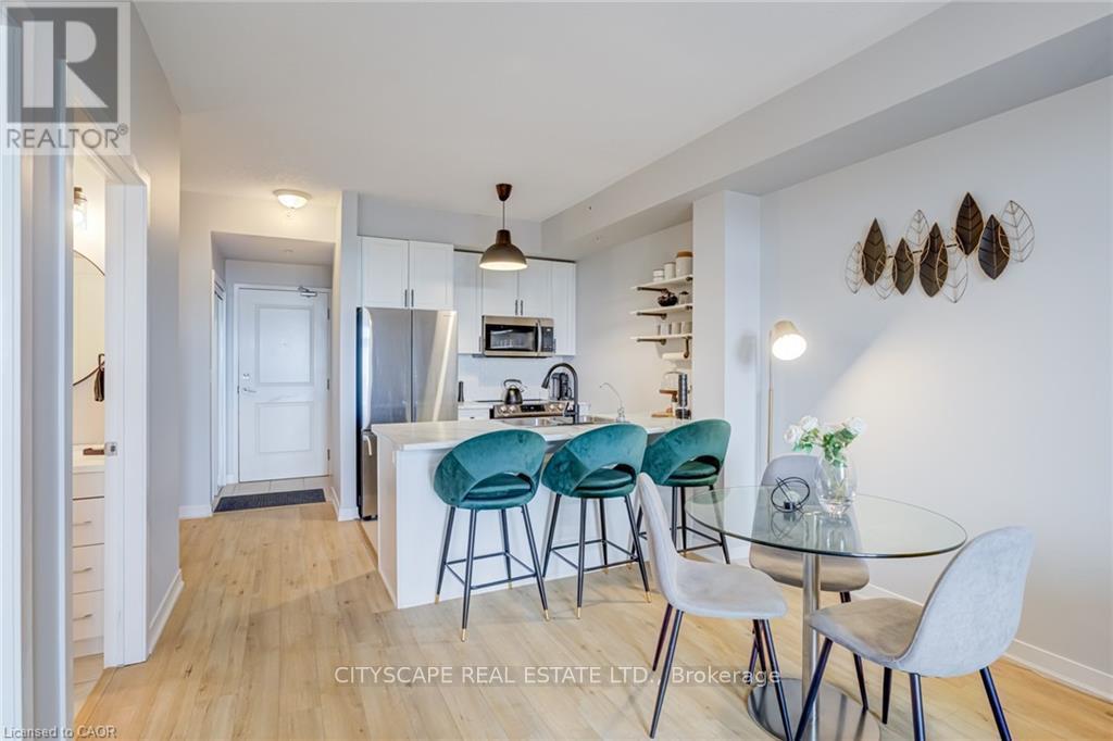 Welcome to The Vibe! Stunning, Bright, Spacious, Updated 1+1 Bedroom Condo that overlooks Greenspace! The Bright Renovated Kitchen features, White Subway Tile Backsplash, Double Sink, Reverse Osmosis Water Filter. You will note Updated Light fixtures throughout this Unit that Already Boasts tons of Natural Light. Custom Shelves Complete this Absolute Turn-Key Condo! The Plus Den is Spacious Enough to Host Guests and The Laundry Room Features Extra shelving Perfect for a Pantry or more Storage. This Unit Has It All! Including Parking and Locker. The Building Amenities Include, Spacious Fitness Area and Gym and a Great Roof Top Terrace to Enjoy Breathtaking Sunsets or Sunrises. There are also Multiple BBQ Areas for your convenience. Situated in The Uptown Neighbourhood, Just South of the Desirable Orchard Neighbourhood. This Trendy and Convenient location places you steps to a huge selection of shopping and dining options! This Unbeatable puts you Minutes to All Amenities! (id:24334)