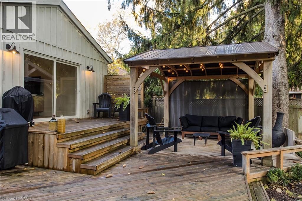 Charming family home in the heart of Burlington’s vibrant core! Beautifully renovated from top to bottom, this stunning property perfectly blends modern comfort with timeless character. Offering an exceptional lifestyle opportunity, it’s just a short stroll to the lake, downtown shops, restaurants, and parks—everything your family needs right at your doorstep. Step inside to a bright, open-concept main floor featuring engineered white oak hardwood throughout and a layout designed for family living. The renovated kitchen (2019) boasts quartz countertops, a large island with breakfast bar, stainless steel appliances including SubZero fridge, Miele dishwasher, and a newer stove (2025). Timeless bead-board backsplash, rustic range hood, and designer lighting add warmth and style. The spacious dining and living rooms are filled with natural light, while the family room with walkout to the backyard creates seamless indoor-outdoor flow. A stylish 2pc powder room, mudroom with shiplap detailing, and a convenient main-floor primary suite complete this level. The modern 4pc ensuite offers a dual-sink vanity and glass walk-in shower for a touch of luxury. Upstairs features two spacious bedrooms with cozy reading nooks, a beautiful updated 4pc main bath, and a flexible home office - ideal for remote work or study. The lower level, renovated in 2013, offers fantastic flexibility with a second kitchen, rec room with fireplace, additional bedroom, laundry, and 3pc bath—ideal for in-laws or teens. Outside, enjoy a private backyard oasis with a tiered wooden deck and gazebo, interlock stone patio, landscaped perennial gardens, and plenty of green space for children and pets to play. The inviting front deck and manicured gardens create lovely curb appeal, making this home truly move-in ready. Welcome to the perfect blend of lifestyle, location, and family comfort in one of Burlington’s most sought-after neighbourhoods. (id:24334)