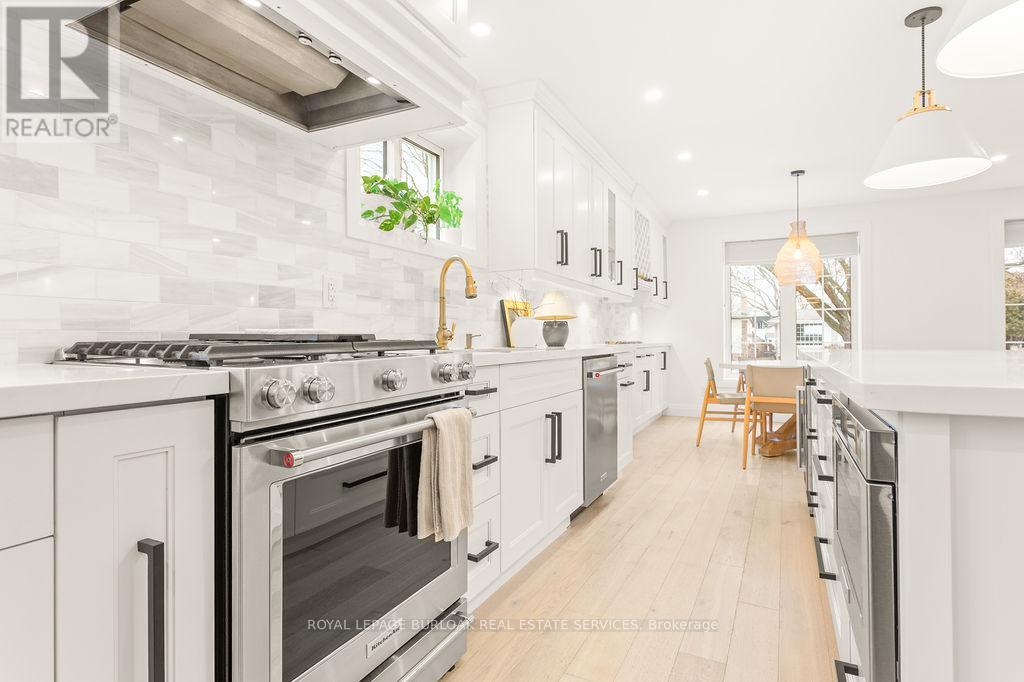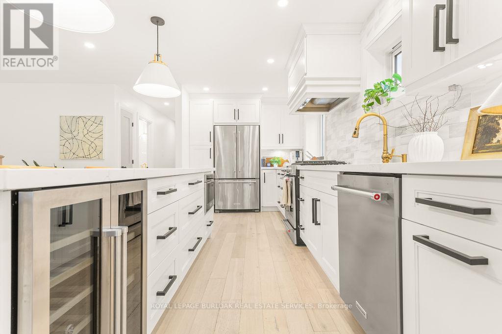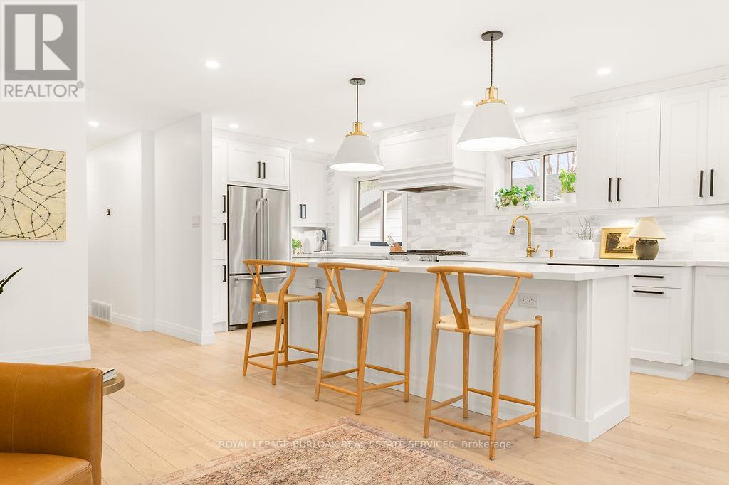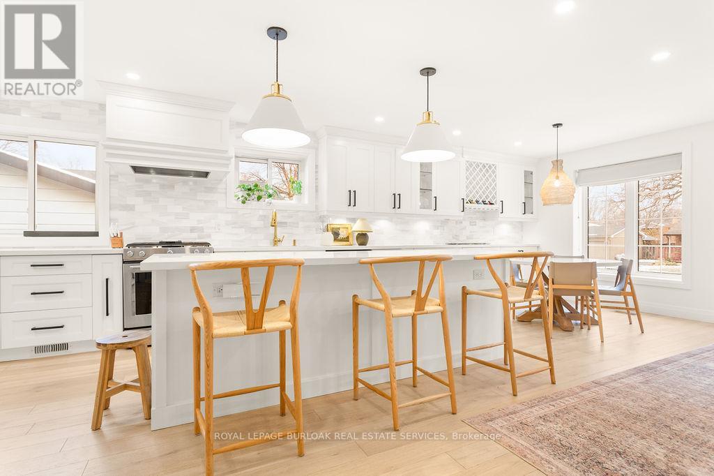 Prepare to be captivated by this stunning, fully renovated, top-to-bottom raised-ranch bungalow, perfectly situated in a prime, family-friendly Burlington location. This exceptional home offers the rare combination of a mature, sought-after neighbourhood with the luxury and convenience of a brand-new build. Key Features You Will Love: Open-Concept Main Level: The heart of the home features a seamless, bright, and airy open-concept layout, perfect for modern family living and entertaining. Custom Gourmet Kitchen: A chef's dream! The custom kitchen boasts high-end finishes, premium stainless steel appliances, and ample storage, flowing effortlessly into the dining and living areas. 3 + 1 Bedrooms & 2 Bathrooms: Generous accommodations with three spacious bedrooms on the main level and a large, versatile bedroom/office on the lower level. Amazing Lower Level: The expansive, fully finished basement is a true showstopper, offering an amazing recreational room ideal for movie nights, a home gym, or a play area. Backyard Retreat: Step outside to your private sanctuary. The professionally landscaped backyard is an entertainer's delight, centered around a beautifully updated inground salt-water swimming pool. Enjoy endless summer days and stylish outdoor entertaining! Unbeatable Location: Enjoy the ultimate convenience with schools, parks, and major shopping hubs all within easy walking distance. Ideal for commuters with quick access to major routes. This is more than just a house-it's a lifestyle upgrade. All the hard work has been done; simply move in and enjoy the superior craftsmanship and exceptional amenities. Don't miss the opportunity to own this turn-key, executive residence in one of Burlington's most desirable areas. (id:24334)