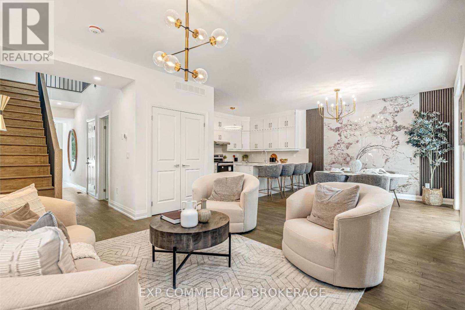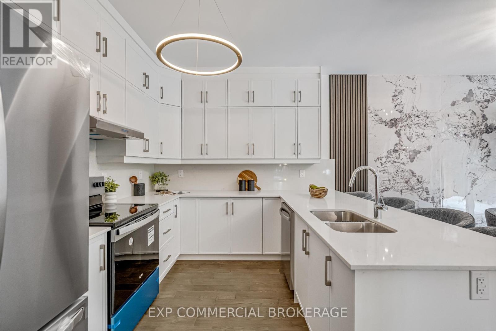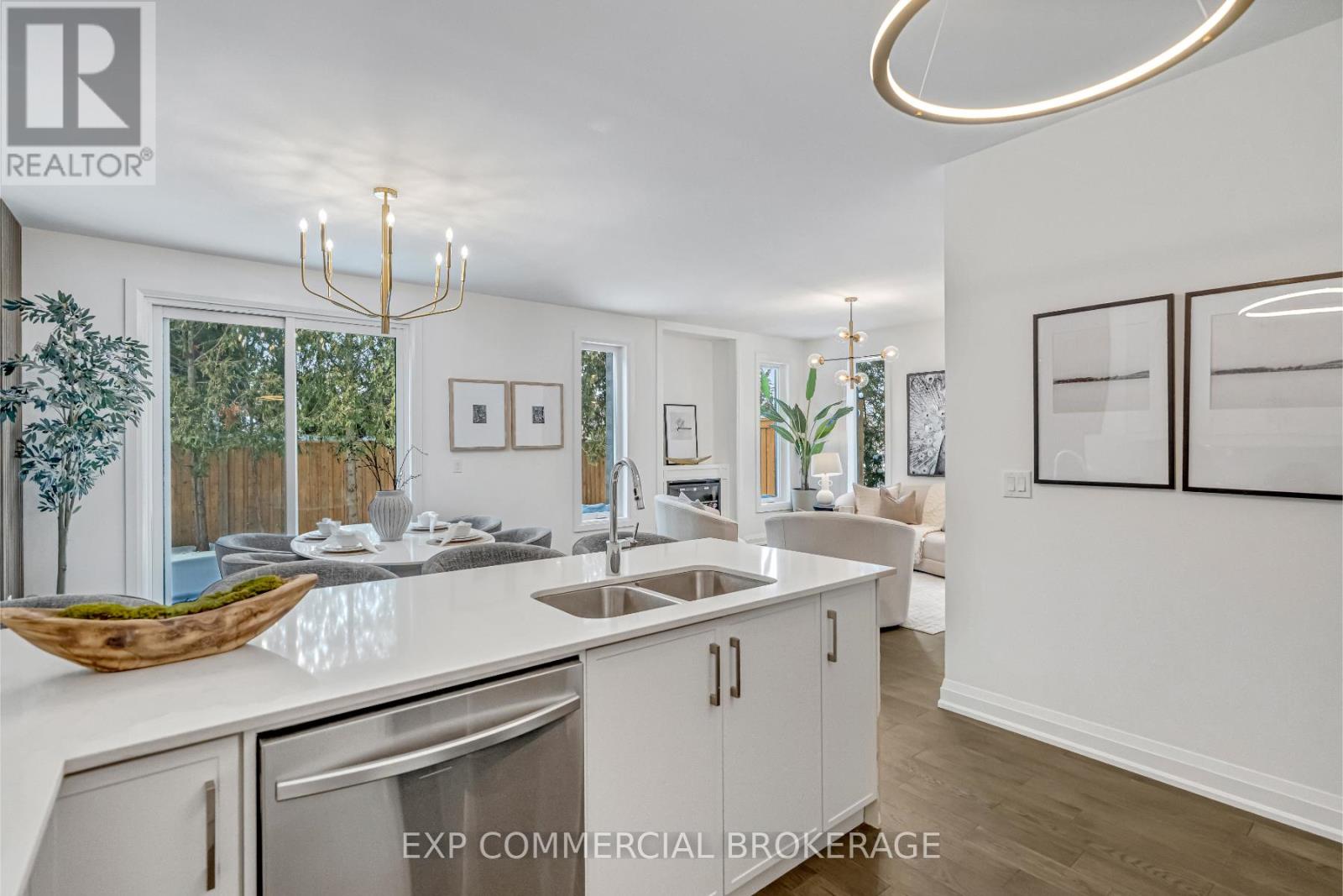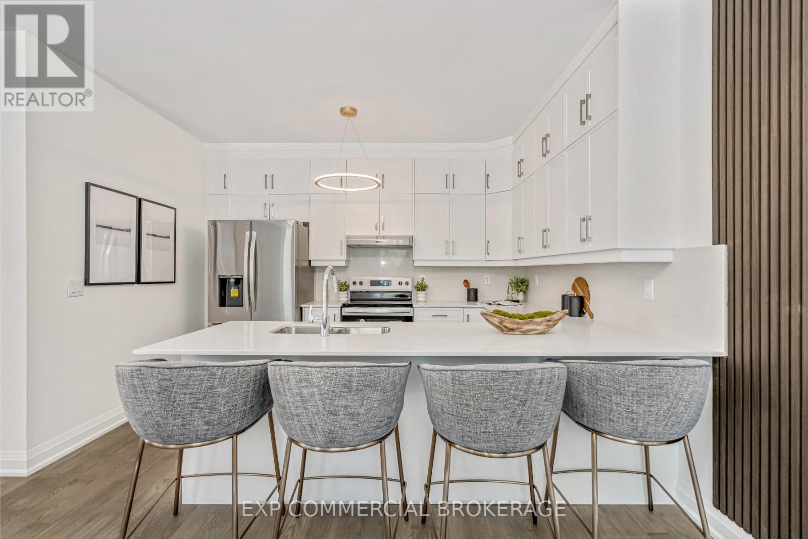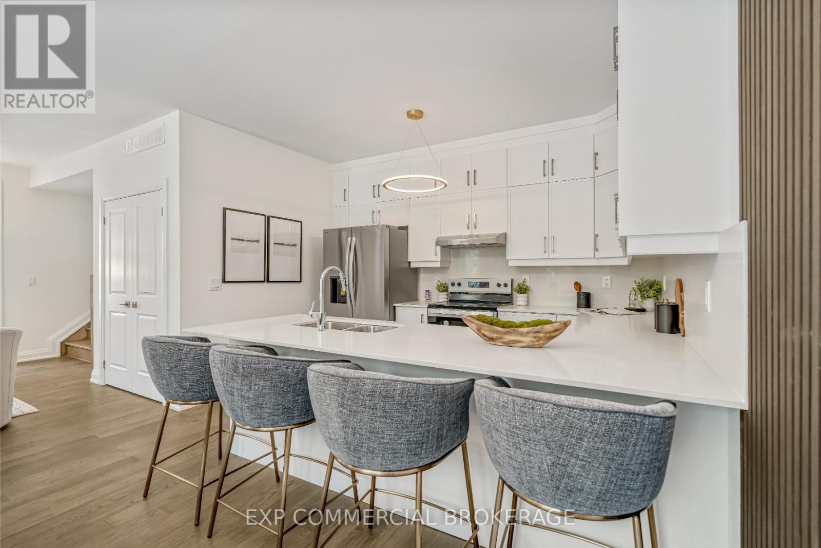 $349.83 MonthlyBrand-new executive town home never lived in! This stunning 1,799 sq. ft. home is situated in an exclusive enclave of just nine units, offering privacy and modern luxury. Its sleek West Coast-inspired exterior features a stylish blend of stone, brick, and aluminum faux wood. Enjoy the convenience of a double-car garage plus space for two additional vehicles in the driveway. Inside, 9-foot ceilings and engineered hardwood floors enhance the open-concept main floor, bathed in natural light from large windows and sliding glass doors leading to a private, fenced backyard perfect for entertaining. The designer kitchen is a chefs dream, boasting white shaker-style cabinets with extended uppers, quartz countertops, a stylish backsplash, stainless steel appliances, a large breakfast bar, and a separate pantry. Ideally located just minutes from the QEW, 407, and Burlington GO Station, with shopping, schools, parks, and golf courses nearby. A short drive to Lake Ontario adds to its appeal. Perfect for down sizers, busy executives, or families, this home offers low-maintenance living with a $349.83/month condo fee covering common area upkeep only, including grass cutting and street snow removal. Don't miss this rare opportunity schedule your viewing today! Tarion Warranty! (id:24334)
