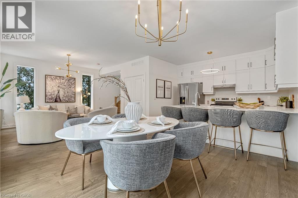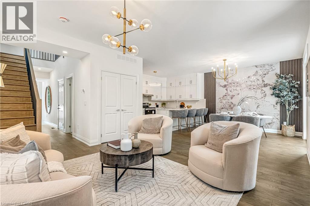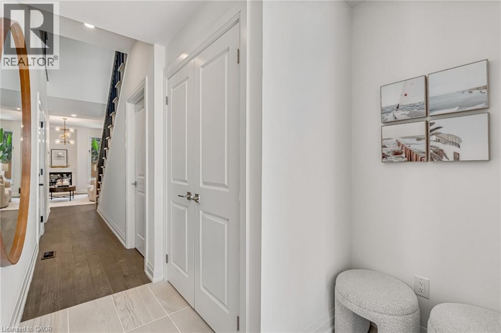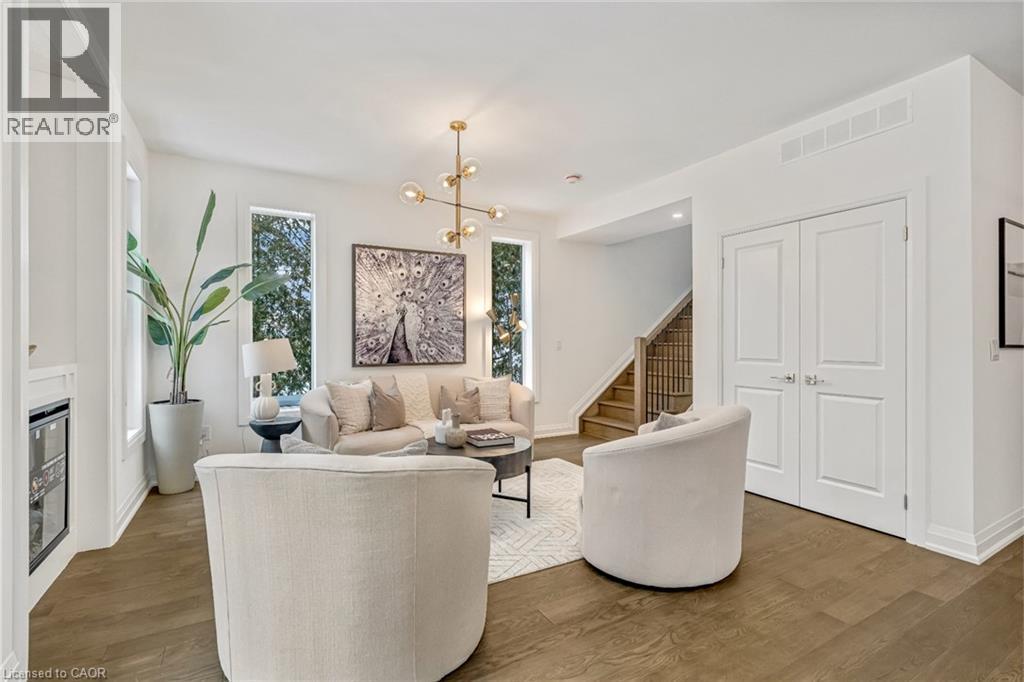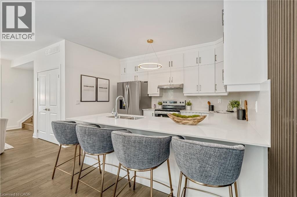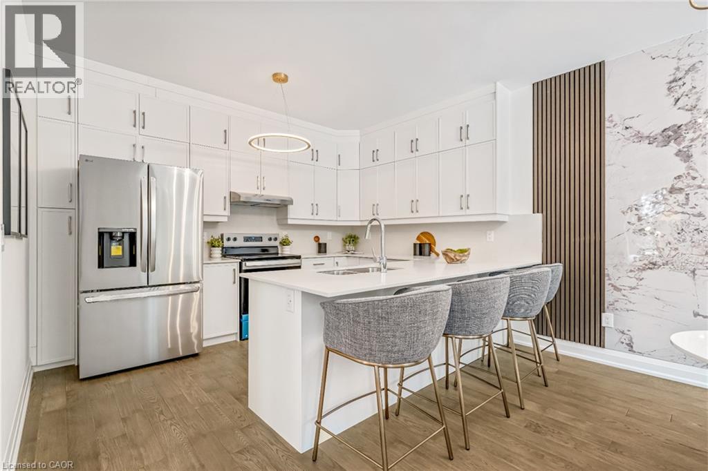 $349.83 MonthlyBrand-new executive town home never lived in! This stunning 1,799 sq. ft. home is situated in an exclusive enclave of just nine units, offering privacy and modern luxury. Its sleek West Coast-inspired exterior features a stylish blend of stone, brick, and aluminum faux wood. Enjoy the convenience of a double-car garage plus space for two additional vehicles in the driveway. Inside, 9-foot ceilings and engineered hardwood floors enhance the open-concept main floor, bathed in natural light from large windows and sliding glass doors leading to a private, fenced backyard perfect for entertaining. The designer kitchen is a chefs dream, boasting white shaker-style cabinets with extended uppers, quartz countertops, a stylish backsplash, stainless steel appliances, a large breakfast bar, and a separate pantry. Ideally located just minutes from the QEW, 407, and Burlington GO Station, with shopping, schools, parks, and golf courses nearby. A short drive to Lake Ontario adds to its appeal. Perfect for down sizers, busy executives, or families, this home offers low-maintenance living with a $349.83/month condo fee covering common area upkeep only, including grass cutting and street snow removal. Don't miss this rare opportunity schedule your viewing today! Tarion Warranty! (id:24334)