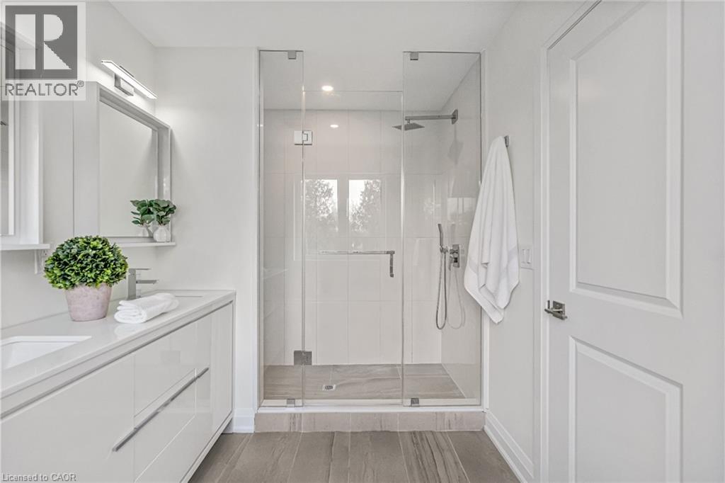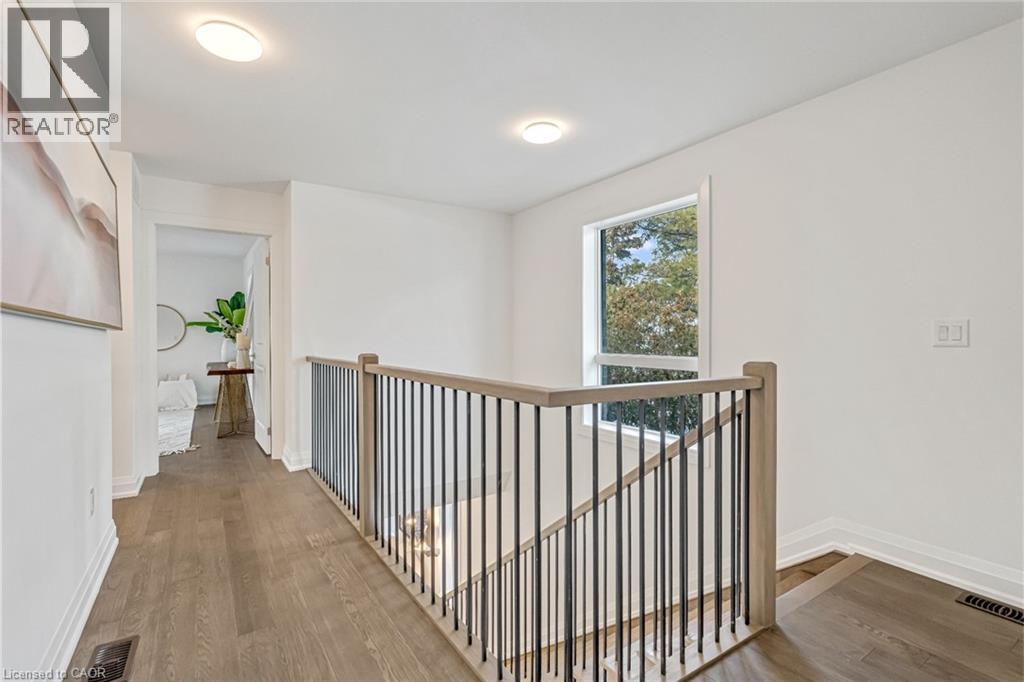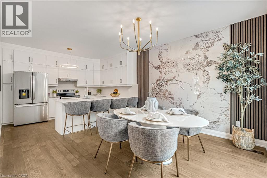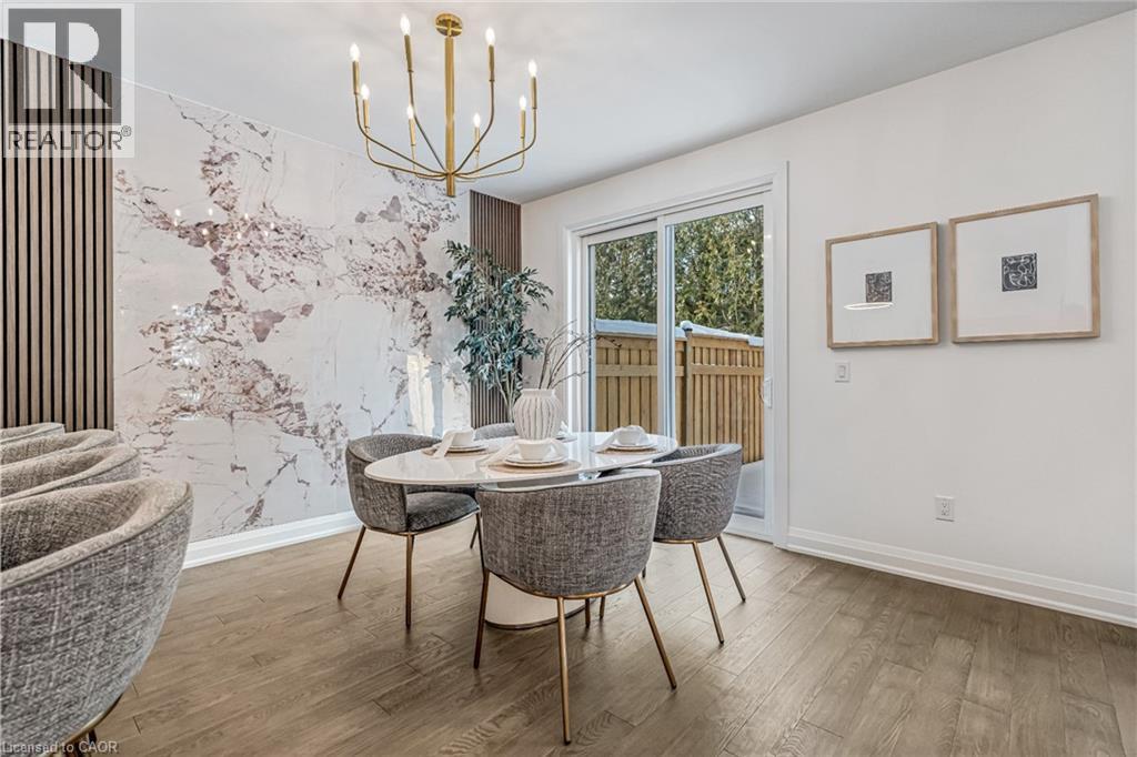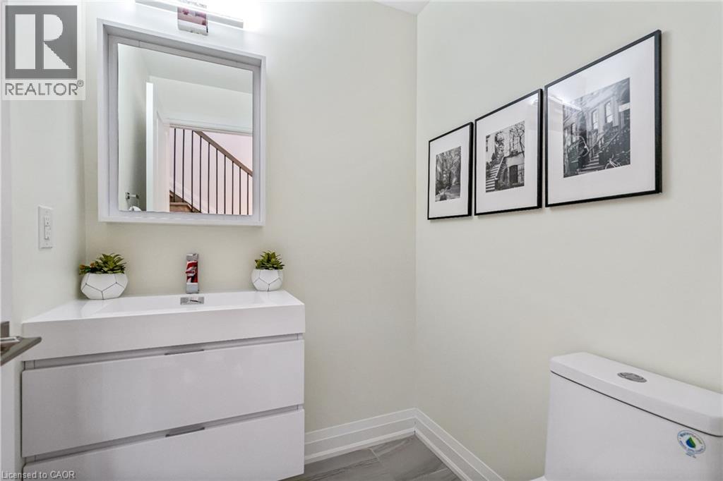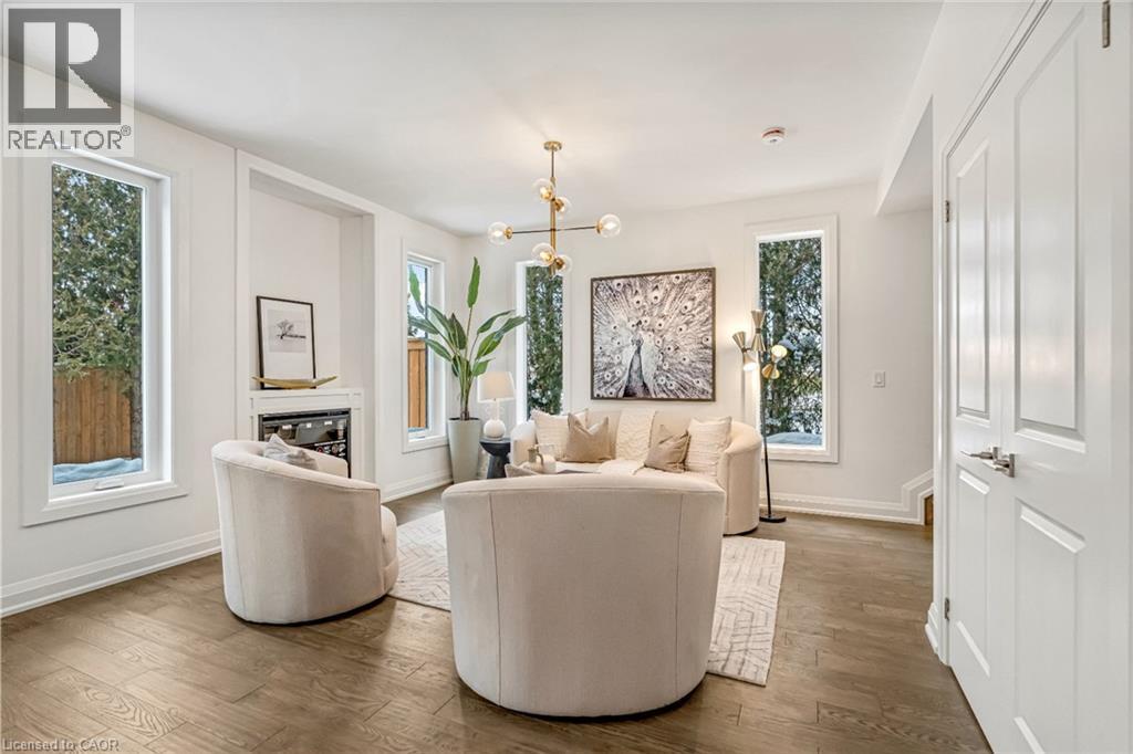 $349.83 MonthlyBrand-new executive town home never lived in! This stunning 1,799 sq. ft. home is situated in an exclusive enclave of just nine units, offering privacy and modern luxury. Its sleek West Coast-inspired exterior features a stylish blend of stone, brick, and aluminum faux wood. Enjoy the convenience of a double-car garage plus space for two additional vehicles in the driveway. Inside, 9-foot ceilings and engineered hardwood floors enhance the open-concept main floor, bathed in natural light from large windows and sliding glass doors leading to a private, fenced backyard perfect for entertaining. The designer kitchen is a chefs dream, boasting white shaker-style cabinets with extended uppers, quartz countertops, a stylish backsplash, stainless steel appliances, a large breakfast bar, and a separate pantry. Ideally located just minutes from the QEW, 407, and Burlington GO Station, with shopping, schools, parks, and golf courses nearby. A short drive to Lake Ontario adds to its appeal. Perfect for down sizers, busy executives, or families, this home offers low-maintenance living with a $349.83/month condo fee covering common area upkeep only, including grass cutting and street snow removal. Don't miss this rare opportunity schedule your viewing today! Tarion Warranty! (id:24334)