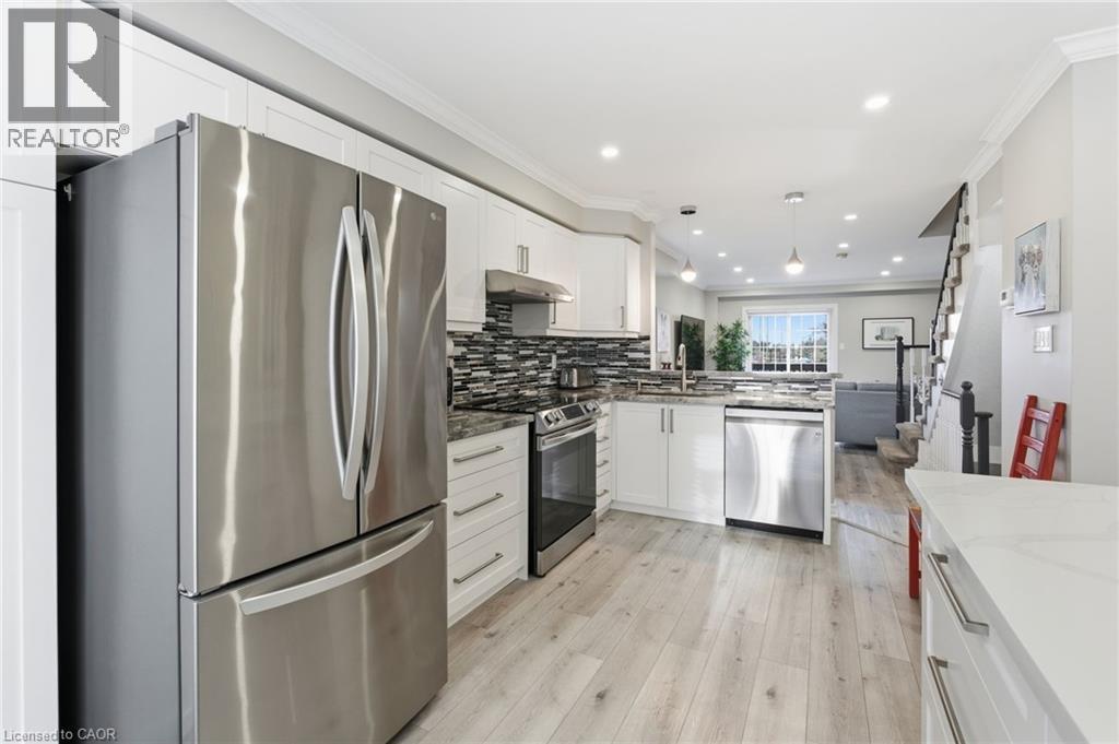 Tucked into the heart of sought-after Tuck’s Forest, this beautifully maintained end-unit townhome is the kind of place that instantly feels like home. From the moment sunlight pours through the windows, you can picture slow mornings, relaxed evenings, and a lifestyle that feels both comfortable and easy. Step inside to a bright, welcoming space thoughtfully updated in 2021, where every detail was chosen with care and intention. New flooring flows throughout the home, while freshly carpeted staircases add warmth and softness underfoot, creating a calm, cohesive feel from top to bottom. At the center of it all is a stunning redesigned kitchen, a space made for both everyday living and effortless entertaining, featuring a custom island, full pantry, smart storage, and a new window that fills the room with sunshine. The open-concept living and dining area feels inviting and connected, flowing seamlessly to a private balcony where morning coffee, quiet moments, and evening wind-downs come naturally. The lower level offers a cozy yet spacious retreat with 9-foot ceilings and a walkout to the backyard, perfect for movie nights, creative space, or a comfortable work-from-home escape. Upstairs, both bedrooms feel airy and serene with vaulted 11-foot ceilings, large windows, and generous closets, while second-floor laundry keeps daily routines simple and stress-free. Behind the scenes, key upgrades including a new furnace, water heater, and garage door opener provide peace of mind, and the attached garage with inside entry and private driveway add everyday ease. Surrounded by walking trails and green space and close to parks, transit, and shopping, everything you need is within easy reach, while Tim Hortons next door makes busy mornings a little sweeter. Altogether, this home offers comfort, convenience, and a relaxed pace of life, making it a place to truly settle in, unwind, and fall in love with coming home. (id:24334)