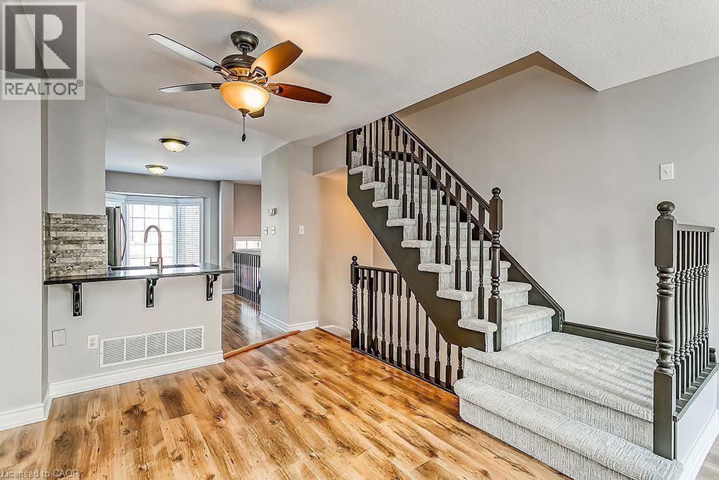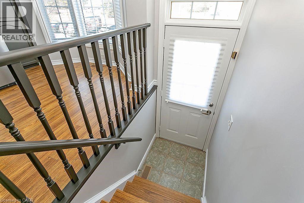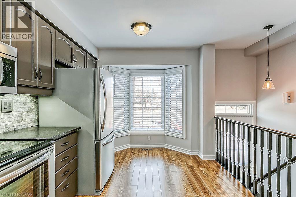 Beautiful 3 Bedroom, 1.5 bath End Unit in sought after Headon Forest. Open Concept layout featuring a spacious living/dining room with laminate floors and a walk out to the balcony. A stunning Eat in kitchen featuring granite countertops, stainless steel appliances, breakfast bar + ample cupboard space. 3rd floor features a primary bedroom with 2 double door closets + 2 additional great sized bedrooms with a 4pc main bath. Finished lower level- perfect for a family room or kids play room, with a separate laundry room + walk out to backyard. This unit is in impeccable shape and in walking distance to Grocery stores, public transit, restaurants and has easy access to major highways. Book your appointment today, this beautiful home won't last long. (id:24334)