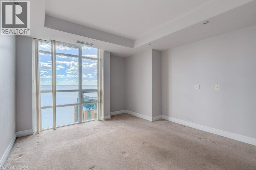 $1,395.63 MonthlyWelcome to 360 Pearl – Where Sophistication Meets Lifestyle Experience luxury living in the heart of downtown Burlington at the prestigious 360 Pearl. Perfectly situated along Lakeshore Road, this coveted address offers a seamless blend of maintenance-free living and vibrant city life, with fine dining, boutique shopping, and the lakefront just steps from your door. This rarely offered 1,335 sq.ft. corner suite is bathed in natural light and showcases breathtaking south-west lake views from nearly every room. Floor-to-ceiling windows frame the stunning vistas, while the expansive corner balcony offers a front-row seat to Spencer Smith Park and its spectacular annual fireworks displays. Inside, refined details abound—from custom Barzotti cabinetry in the kitchen and bathrooms to elegant crown moulding and thoughtfully placed art niches. The primary suite offers a spacious walk-in closet and a beautifully appointed ensuite bath, creating a tranquil retreat. Additional highlights include two underground parking spaces, an adjacent private locker room, and access to an array of upscale amenities: 24/7 security, a fully equipped fitness centre, a stylish party room, and a show-stopping rooftop terrace with panoramic views of Lake Ontario. Don’t miss the opportunity to own a truly exceptional home in one of Burlington’s most sought-after buildings. (id:24334)
