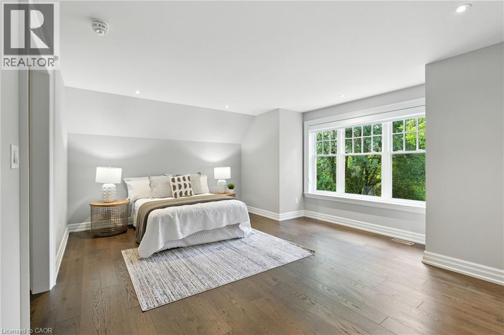 Custom-built in 2016 by M. Butler Custom Homes, this exceptional residence offers approximately 5,000 square feet of luxurious living space, showcasing premium finishes and superior craftsmanship throughout. Situated on a 217-ft deep, pool-sized lot backing onto the RBG Hendrie Valley Sanctuary, this home blends elegance with natural serenity. The gourmet kitchen features a large island with dual-sided cabinetry, sink and pendant lighting, along with built-in stainless steel appliances including a wall oven, gas cooktop, fridge and dishwasher plus a sunlit eat-in area overlooking the private backyard. Rich hardwood flooring spans the main and second levels, complemented by hardwood stairs, coffered ceilings, crown moulding and pot lights that add warmth and architectural detail. The private primary suite includes a luxurious spa-like ensuite and two walk-in closets with custom built-ins. A finished walk-out lower level adds flexible living space, offering a fifth bedroom, full bathroom, rec room and multi-use area perfect for an office, gym, craft room or playroom. An upper-level balcony off the great room extends the living space outdoors and features a gas BBQ hook-up. Additional highlights include oversized windows, engineered hardwood, central vacuum and full home pre-wiring for automation and audio/video distribution. Ideally located minutes from Aldershot GO Station, Highways 403 and 407, as well as nearby restaurants and shopping. Don’t be TOO LATE*! *REG TM. RSA. Luxury Certified. (id:24334)