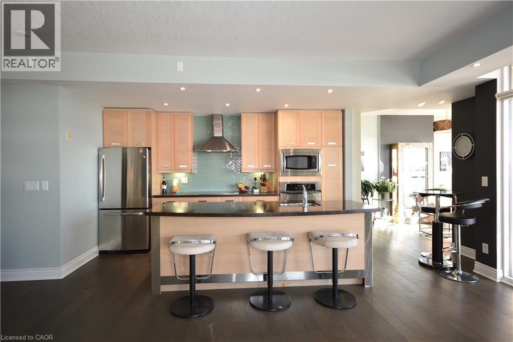 Experience unparalleled luxury in this fully furnished, 1,400+ sq. ft. corner suite in the heart of Downtown Burlington. This sophisticated 2-bedroom plus den residence offers floor-to-ceiling vistas of Lake Ontario from every window and two private balconies. The chef-inspired gourmet kitchen features expansive stone surfaces, flowing into a light-filled living area designed for entertaining. The primary sanctuary is a masterclass in comfort, boasting a boutique walk-in closet and a masterfully renovated spa-ensuite. Located steps from the Burlington Pier, Spencer Smith Park, and the city’s premier dining and boutiques. Residents enjoy elite amenities including a steam sauna, fitness studio, and rooftop BBQ terrace. Requirements: Full rental application, employment verification, references, and credit check. All tenants verified via SingleKey. (id:24334)