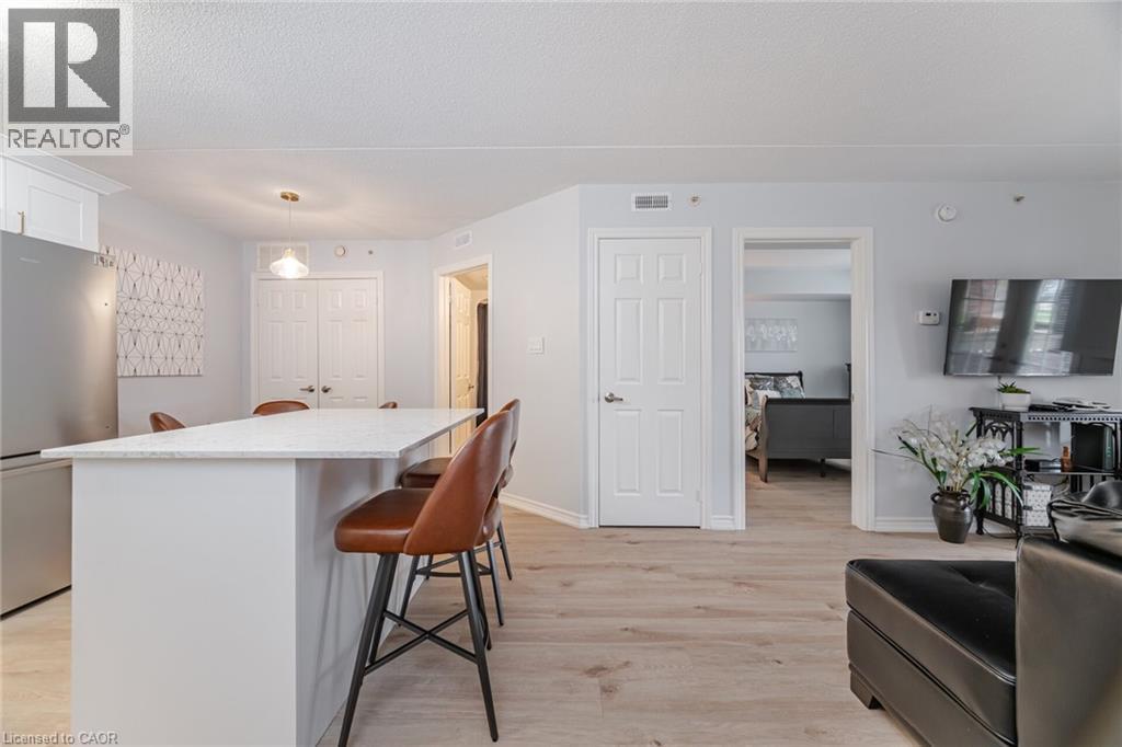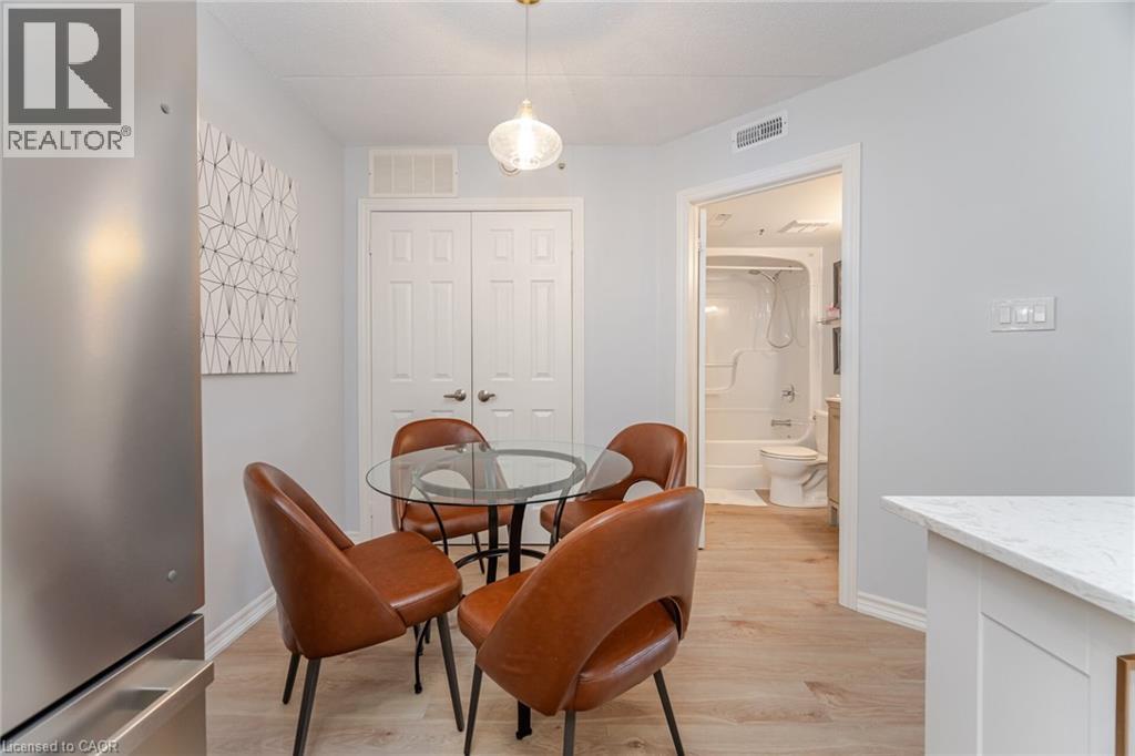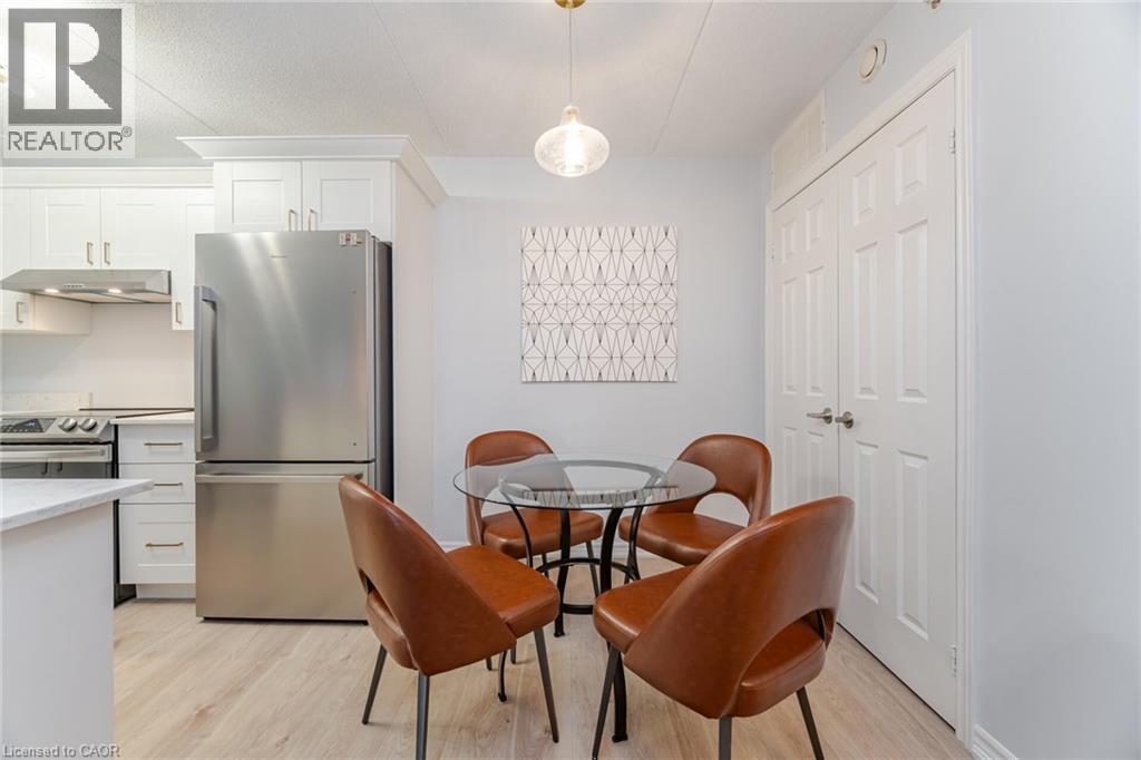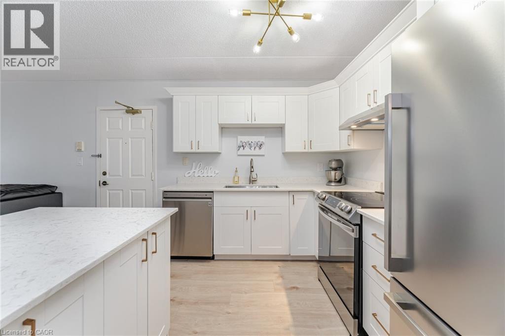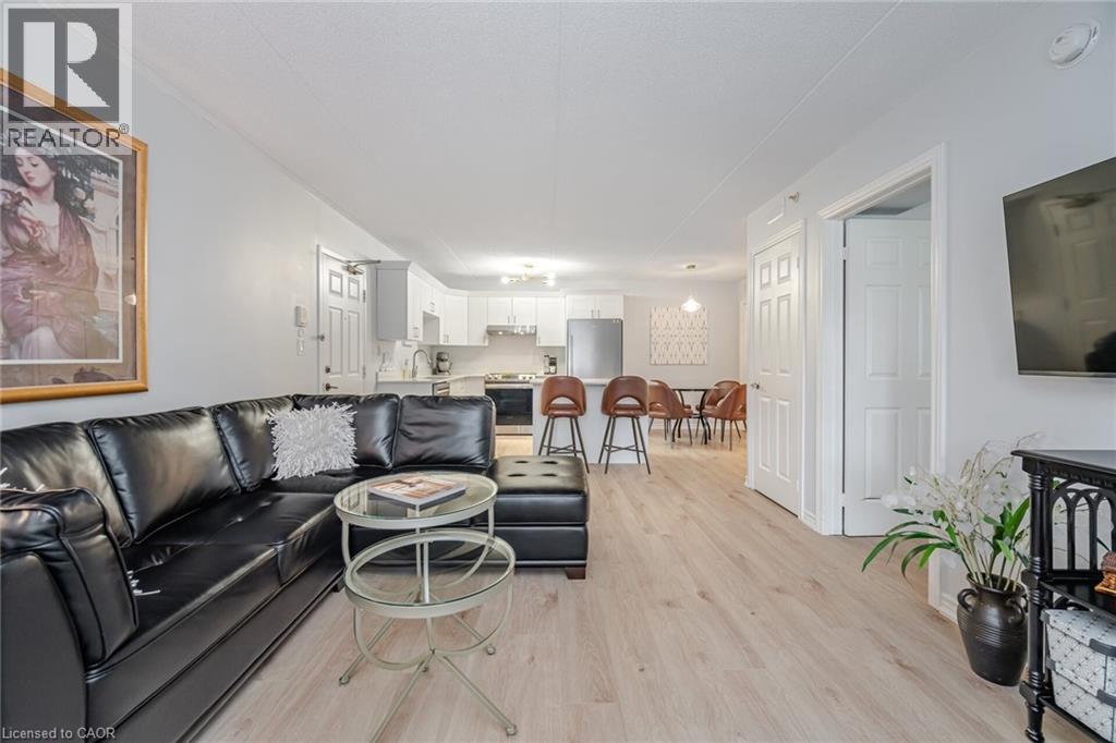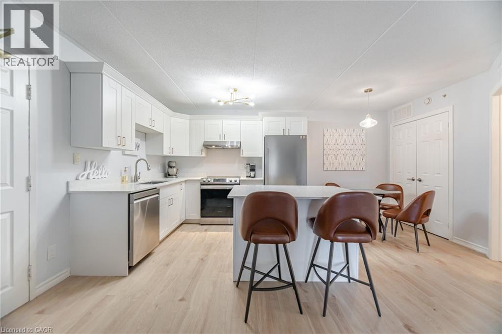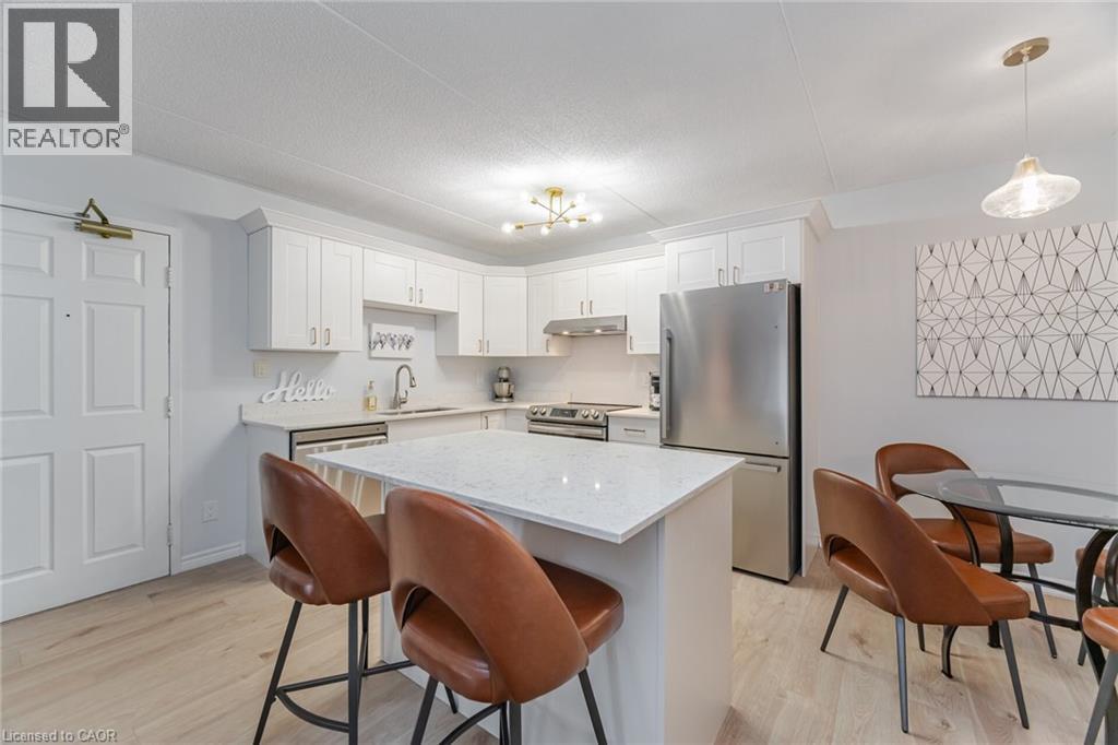 $616 MonthlyWelcome to 4005 Kilmer Rd, Unit 104 where style meets convenience! This beautifully renovated ground-floor condo offers over 644 sq ft of fresh, modern living space with no elevators or stairs needed! Featuring a brand-new kitchen, updated bathroom and new flooring throughout, this unit is truly move-in ready. Enjoy a bright, open-concept layout perfect for easy living. The spacious bedroom offers plenty of natural light and storage. Step outside for convenient access to outdoor spaces, ideal for those seeking a relaxed, mature environment. Includes 1 underground parking space and 1 storage locker for added convenience. Located in a quiet, well-maintained building geared towards a mature lifestyle, close to parks, shopping, public transit, and everything Burlington has to offer. A rare ground-floor gem perfect for first-time buyers, down-sizers, or investors. Don't miss it! (id:24334)