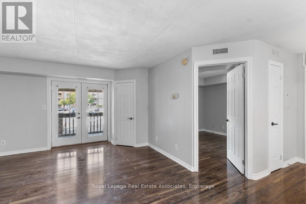 $466.03 MonthlyWelcome to 106-4013 Kilmer Avenue a bright and charming 1-bedroom condo nestled in a quiet, well-maintained Burlington community. This inviting ground-floor unit offers a functional open-concept layout with warm laminate flooring throughout. The kitchen features stylish two-toned cabinetry and opens into a cozy living space with French doors leading to a private open-air balcony perfect for morning coffee or relaxing evenings. A spacious 4-piece bathroom completes the interior. Enjoy the ease of one surface parking spot along with ample visitor parking for your guests. Located close to shopping, parks, trails, transit, and major highways, this is an ideal opportunity for first-time buyers, downsizers, or investors to enjoy easy, low-maintenance living. (id:24334)