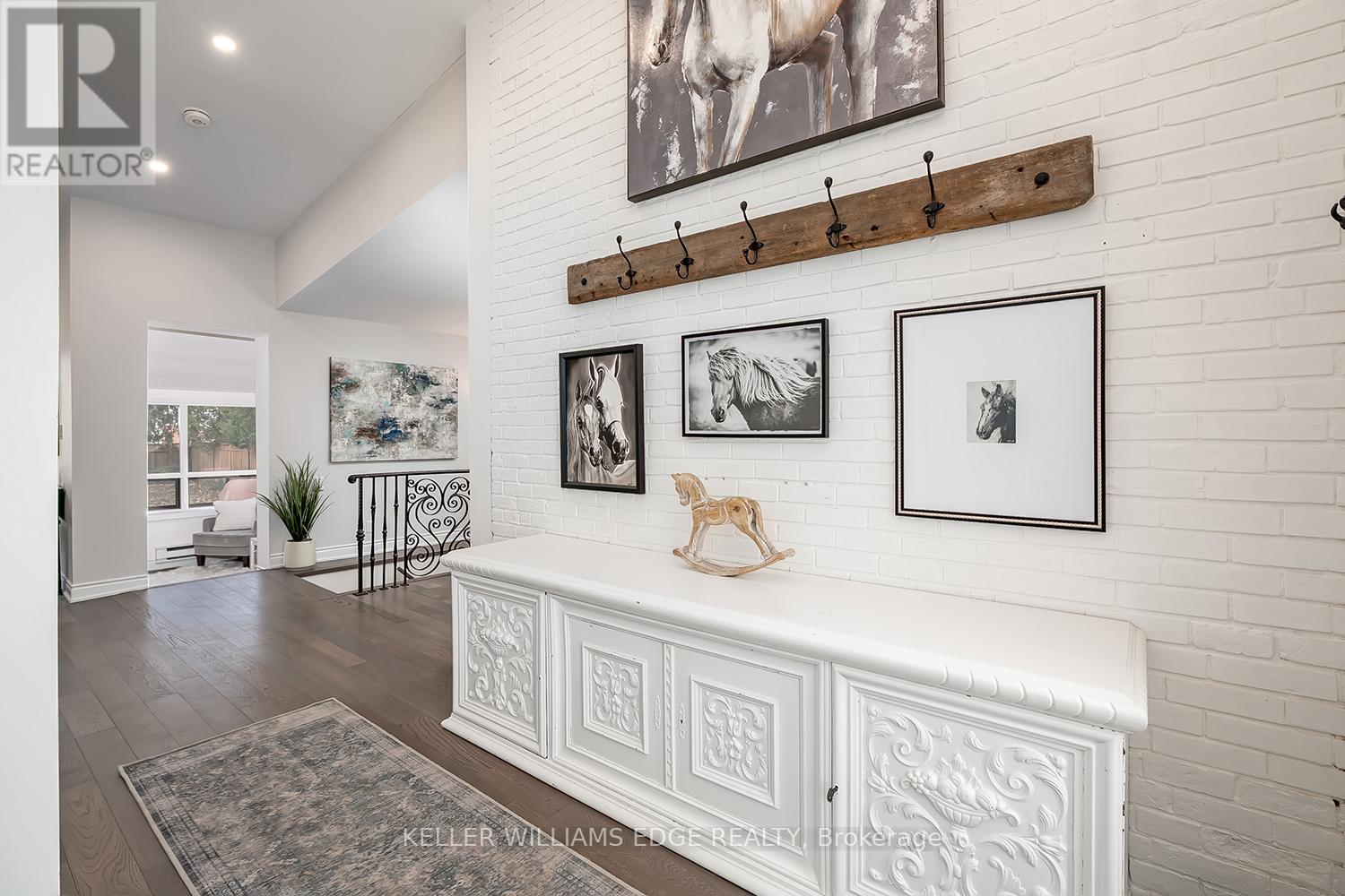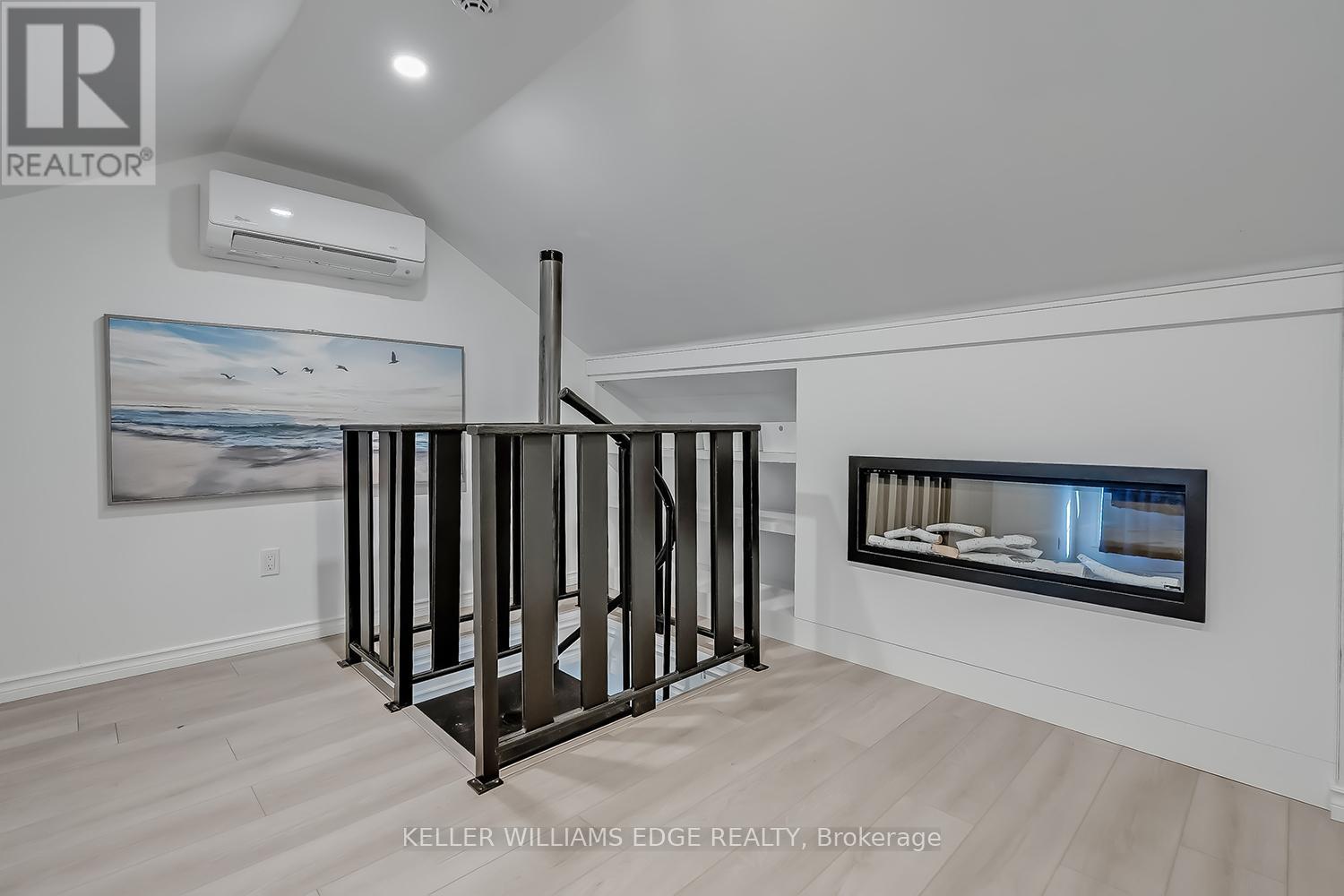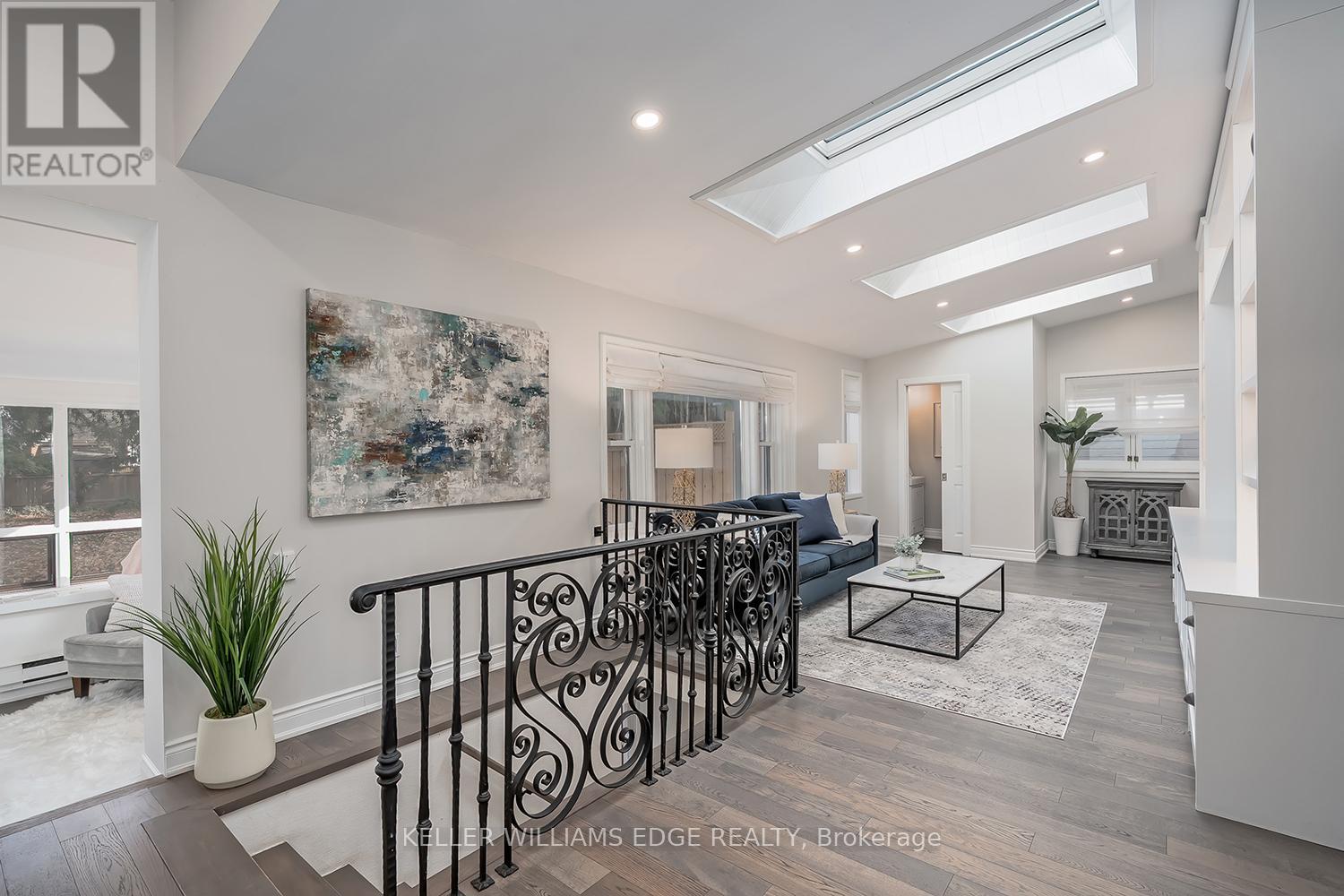 This tastefully renovated century farmhouse sits on one of the most sought after streets in downtown Burlington, offering a truly unique opportunity on a premium park like 60 x 181 ft lot adjacent to the waterfront trail and bike path. This 3 bedroom, 3.5 bathroom home features hardwood floors, exposed brick, skylights and pot lighting that add warmth and character throughout. The main level features a beautiful primary bedroom with a spa inspired 5 piece ensuite and a large walk in closet with stacked washer and dryer. The open concept kitchen includes stainless steel appliances, marble counters, tile backsplash and under cabinet lighting. Enjoy the formal dining room with exposed brick, vaulted ceiling and a rough in wet bar, perfect for entertaining. Along the back is an inviting family room with custom built ins, a charming office or reading nook, and a powder room overlooking the expansive fully fenced backyard. The upper level offers 2 bedrooms and a full bathroom, ideal for kids or guests. The finished lower level provides even more flexibility, featuring a comfortable rec room or home office along with a 3 piece bathroom. There is inside access to the spacious 1.5 car garage with a bonus fully finished kids retreat above, complete with electric fireplace and AC. The driveway provides parking for 4 cars.Steps to schools, parks, Lake Ontario, Spencer Smith Park, the YMCA, performing arts centre, library, shops and restaurants, this home offers an unmatched walk-able lifestyle in downtown Burlington. (id:24334)