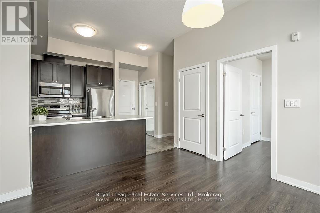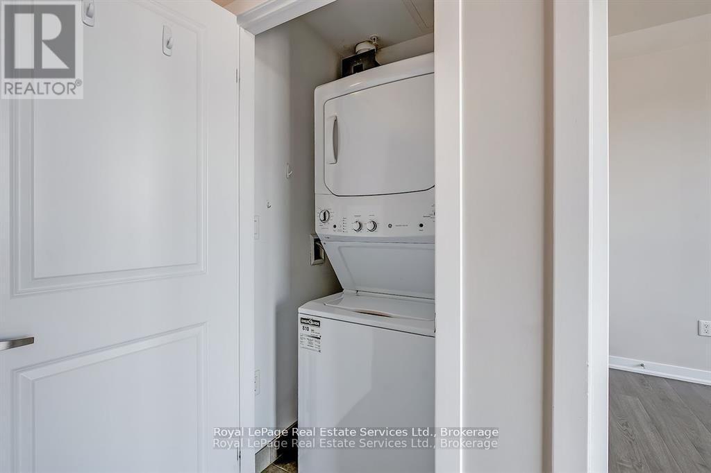 $383.35 MonthlyStunning Penthouse in the Trendy Vibe Condos! Stylish 1-bedroom, 1-bath condo featuring airy 10-ft ceilings and a bright, open-concept layout. The modern kitchen boasts stainless steel appliances, a sleek backsplash, and a breakfast bar, perfect for casual dining or entertaining. The spacious living room opens to a private balcony, while the primary bedroom offers a generous closet. Enjoy a 4-piece main bath and the convenience of in-suite laundry with newer washer & dryer. Includes 1 underground parking spot and 1 locker. Residents enjoy premium amenities: fitness centre, party/meeting room, theatre room, rooftop patio, and ample visitor parking. Located minutes from major highways, GO Transit, restaurants, shopping, and more - ideal for young professionals, executives, or downsizers! (id:24334)