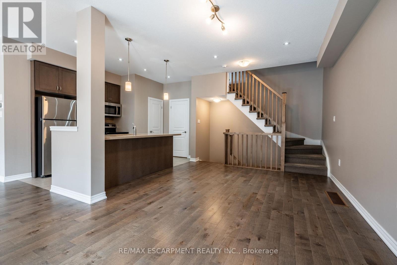 $214.95 MonthlyBuilt by Branthaven, this stylish and meticulously maintained 3-storey freehold townhome offers 1,370 sq ft of upscale living in a boutique complex just minutes from downtown Burlington. Bright and freshly painted, it features 2 bedrooms, 2 bathrooms, 9 ft ceilings, a walk-in closet in the principal bedroom, and convenient bedroom-level laundry. Enjoy a balcony off the open-concept living area, and a low monthly maintenance fee. Vacant and move-in ready, this home is ideally located with easy access to the GO Station, public transit, highways, and Burlingtons vibrant waterfront. Walk to top restaurants, shopping, arts, and festivals. Immediate possession available. (id:24334)