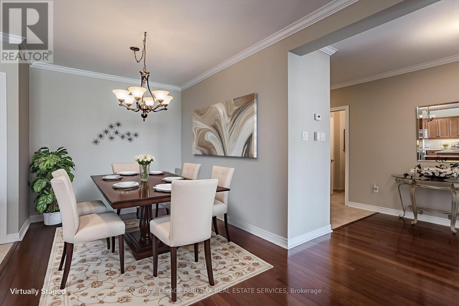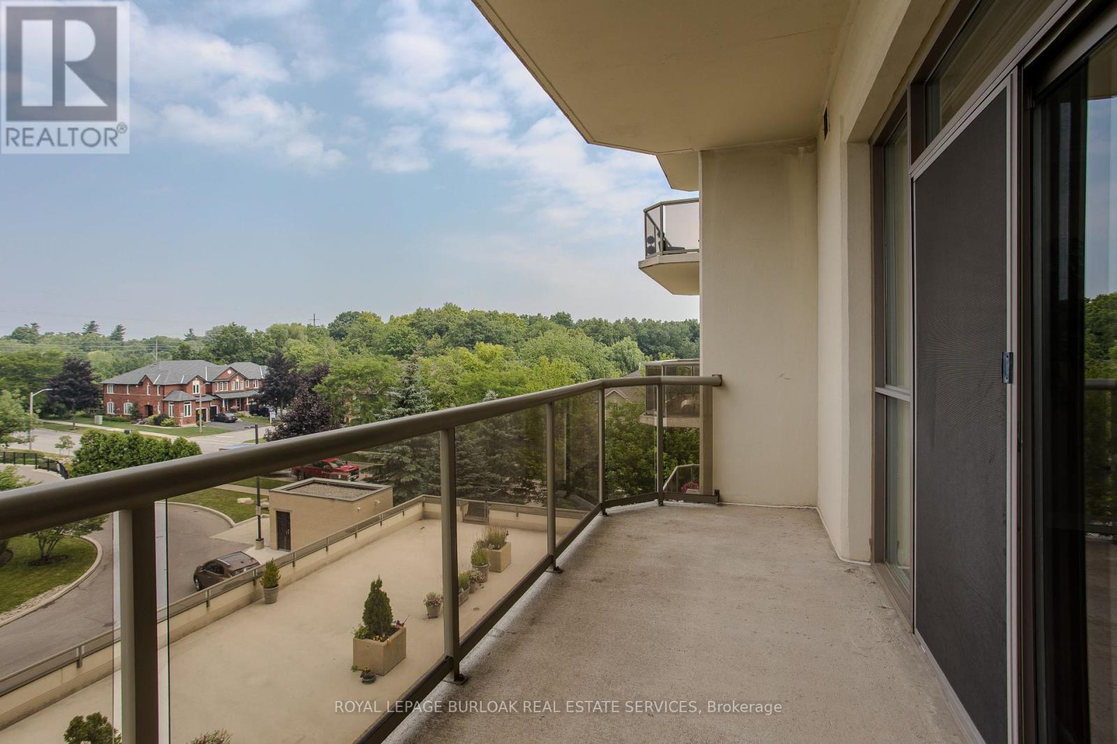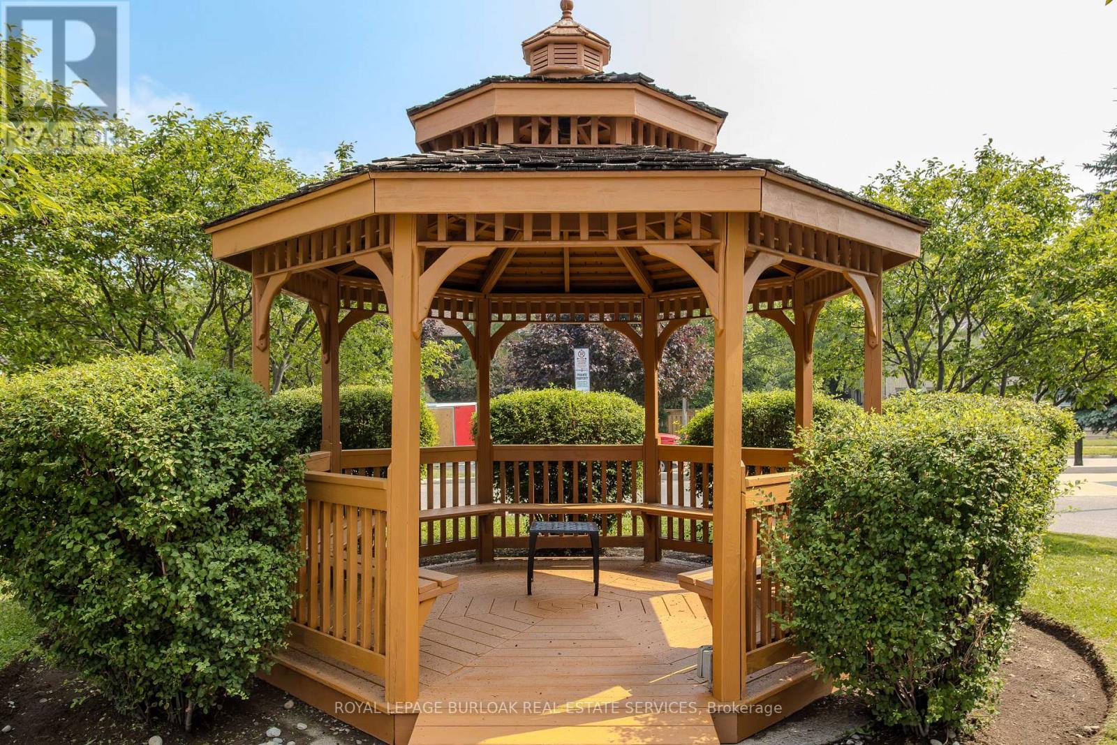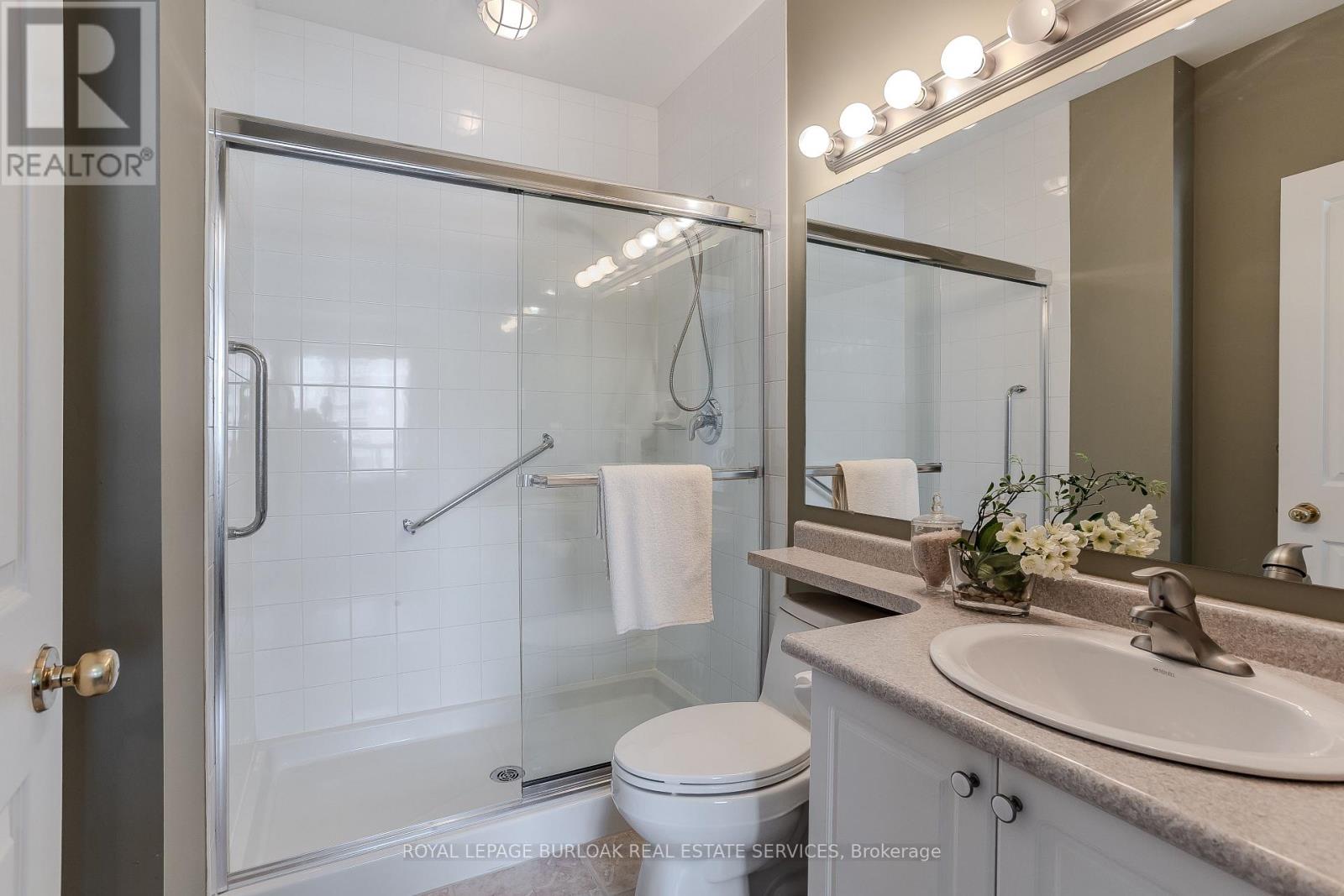 Welcome to Millcroft Place where thoughtful design meets carefree living in the heart of Uptown Burlington. This sought-after residence is ideal for those looking to downsize without compromise, offering a spacious layout, elegant finishes, and a vibrant community. You'll enjoy the ease of a low-maintenance lifestyle with shopping, dining, transit, parks, and trails all within walking distance. From the moment you walk in, you'll appreciate the crown moulding throughout, warm hardwood flooring in the main living areas, and oversized windows that flood the space with natural light. The kitchen is as functional as it is welcoming, with a peninsula breakfast bar, classic tile backsplash, ample cabinetry, and a pantry for all your essentials. Whether you're hosting dinner or enjoying a quiet meal at home, the full-sized dining area offers the flexibility and space to suit your lifestyle. The living room is expansive and inviting, anchored by a cozy gas fireplace that adds warmth and charm to the space. Walk out onto the large, private balcony with sleek glass railing perfect for relaxing with your morning coffee, tending to a container garden, or watching the sunset in peace. The primary bedroom is a true retreat with a large window, walk-in closet, and private 3-piece ensuite featuring a sleek glass shower. A second bedroom provides space for guests, a home office, or hobbies, while the 4-piece main bathroom offers a quartz-topped vanity and modern finishes. Additional conveniences include in-suite laundry, one underground parking space, and a private storage locker. Enjoy a friendly, well-maintained building with top-tier amenities including an exercise centre, party room, beautifully appointed indoor and outdoor seating areas, and ample visitor parking. All of this just steps from shopping, dining, transit, and Millcroft's scenic parks and trails. This is downsizing done right. Welcome home. (id:24334)