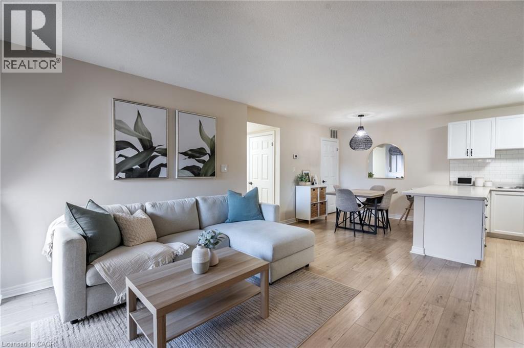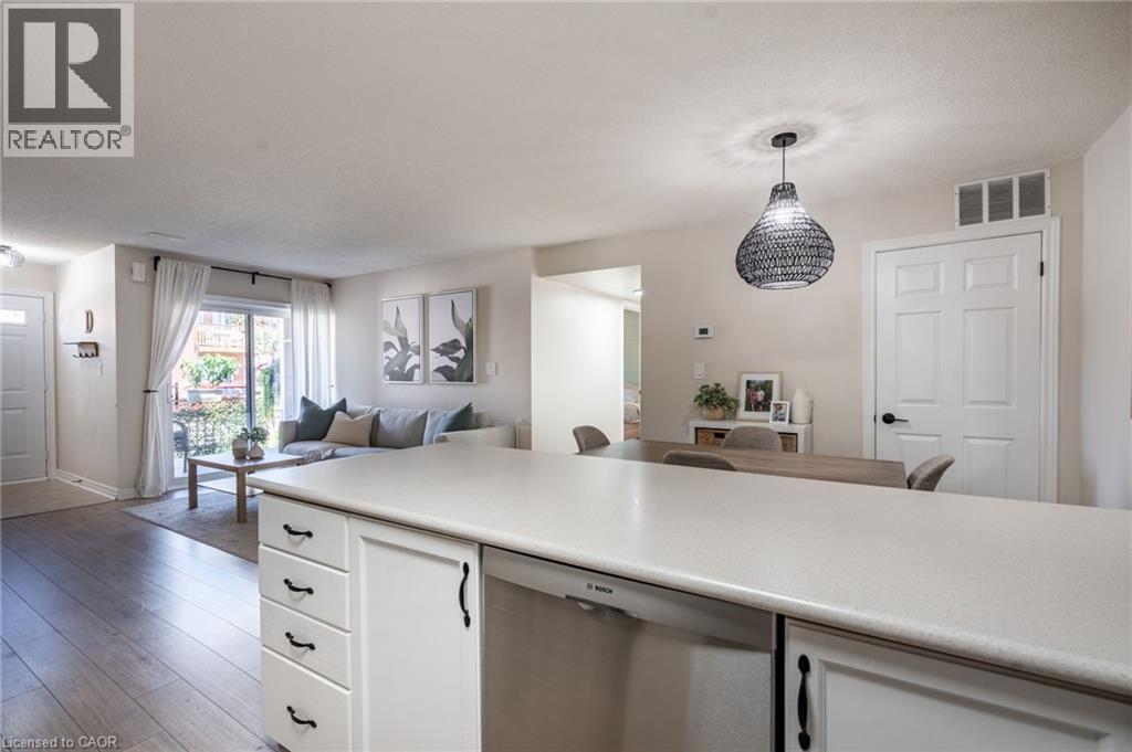 $366.51 MonthlyWelcome to this beautifully maintained main-level stacked townhome, ideally situated in one of Burlington’s most desirable neighbourhoods. This bright end unit offers extra privacy and natural light throughout. Whether you're a first-time home buyer or looking to downsize, this home provides the perfect blend of comfort, convenience, and style. Step inside to discover an open-concept layout filled with natural light, featuring brand-new flooring throughout and a fresh, modern aesthetic. The kitchen is equipped with white cabinetry, a stylish subway tile backsplash, and newer stainless steel appliances—perfect for everyday living and entertaining alike. The spacious primary bedroom includes a walk-in closet, while recent upgrades such as a new roof (2024), new washer and dryer (2024), and a new deck and fence add value and peace of mind. Enjoy your private outdoor space that’s both pet-friendly and BBQ-ready. This home also includes two parking spots, a rare and convenient feature. Located close to scenic parks, walking trails, and local amenities, this well-kept, quiet community offers the ideal lifestyle in the heart of Burlington. A truly turn-key opportunity—just move in and enjoy. (id:24334)