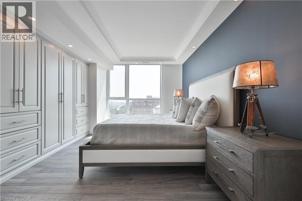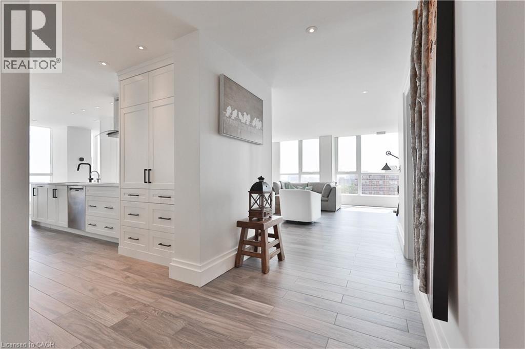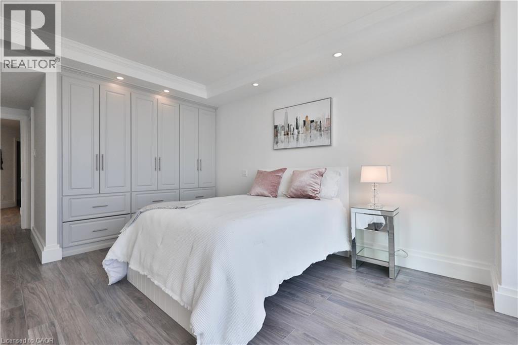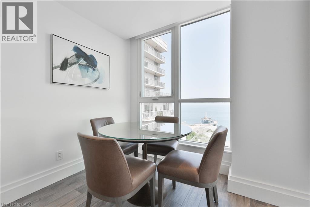 $2,566 MonthlyStyle and sophistication abound in the heart of downtown Burlington in this stunning southwest facing corner unit offering panoramic views of Lake Ontario, Burlington Pier and Niagara Falls on a clear day. Located in prestigious Harbourview Residences, this outstanding, completely renovated 1,829 sq ft, 2 bed plus den and 2.5 bath residence is bathed in natural light, boasting wall to wall and floor-to-ceiling windows with motorized blinds. A thoughtfully designed open-concept layout connects the substantial living room with a TV feature wall, a gorgeous large dining space with built-in china cabinet, and a large gourmet chef’s kitchen complete with breakfast area. The brand-new custom kitchen is a showpiece featuring new cabinetry, quartz countertops and backsplash, high-end stainless-steel appliances incl. induction cooktop and SS range hood, oversized refrigerator/freezer, hot water tap, substantial cupboard and counter space and a large island perfect for entertaining. The spacious primary suite is a sanctuary with a coffered ceiling, custom closets, floor-to-ceiling windows and a newly updated spa-like ensuite featuring an oversized frameless glass shower, custom vanity with quartz counter and ample storage. The second bedroom with its own breathtaking views comes complete with a 3 piece ensuite and custom closet. A versatile home office space, a powder room and a full-size laundry room allows for convenience and additional storage. The unit comes with 2 underground parking spots and 2 lockers. Residents enjoy amenities incl; car wash, exercise room/gym, sauna and 2 rooftop terraces with BBQs. Just steps away, enjoy all that downtown Burlington and waterfront living has to offer while minutes to major highways and conveniently located between Toronto and the Niagara region's many features. This is urban luxury redefined—don’t miss this exceptional opportunity. (id:24334)