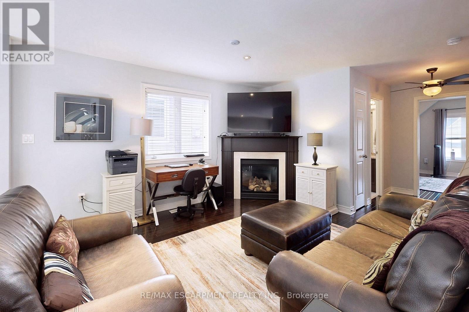 Welcome to this beautifully updated bungaloft in Burlington's sought-after Millcroft neighbourhood, backing onto peaceful greenspace w/ no rear neighbours. This home offers exceptional curb appeal w/ flagstone-covered front porch, concrete side walkway, & extensive professionally landscaped grounds. Inside, 18' vaulted ceilings open to the loft above, enhancing the bright, open-concept living, dining, & kitchen space. Hardwood floors run throughout the main level, & the living room is anchored by a cozy & custom gas fireplace (2024). The upgraded kitchen features granite countertops, stainless steel appliances, upgraded cabinetry, & stunning 8' x 8' glass door (2024) leading directly to the backyard. The main-floor primary suite offers convenience & luxury, complete w/ walk-in closet & beautifully renovated ensuite. Upstairs, the spacious loft features its own gas fireplace & overlooks the main level, ideal as second family room, sitting area or home office. The upper level also includes 2 generously sized bedrooms (one w/ walk-in closet), 4pc shared bathroom, & convenient upper-level laundry. The fully finished basement includes updated flooring, large recreation room, an additional bedroom or home office, & newly added 2pc bath, perfect for guests or extended family. The backyard is a private retreat, featuring stone patio & approx. $100k in professional landscaping - perfect for relaxing & entertaining. Additional updates include the roof (2019), recently updated smoke & carbon monoxide detectors, & approx. $200k has been invested in total improvements, by the current home owner. Close to police & fire services, shopping, dining, parks, trails, Millcroft Golf Course, community centres, library, & healthcare. Friendly neighbours, local churches, & just 8km to Brant Street. A rare chance to own a beautifully upgraded home in a prime Burlington location, offering the perfect blend of privacy, comfort, & timeless style for your family. (id:24334)