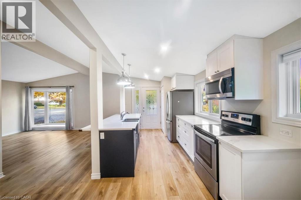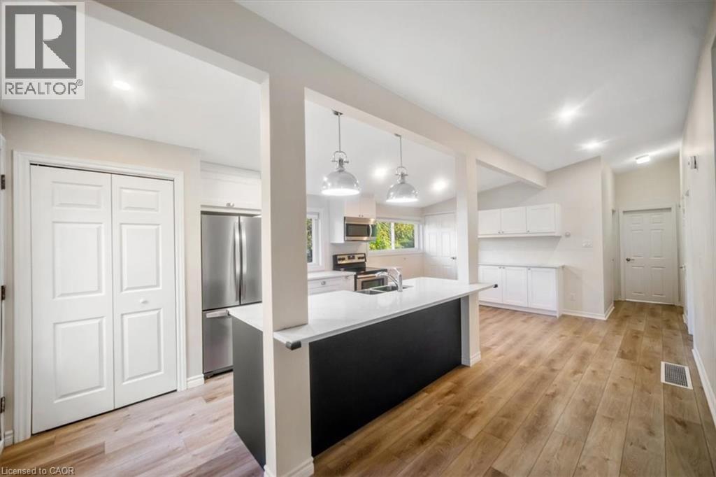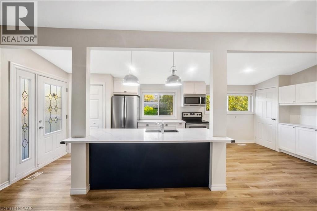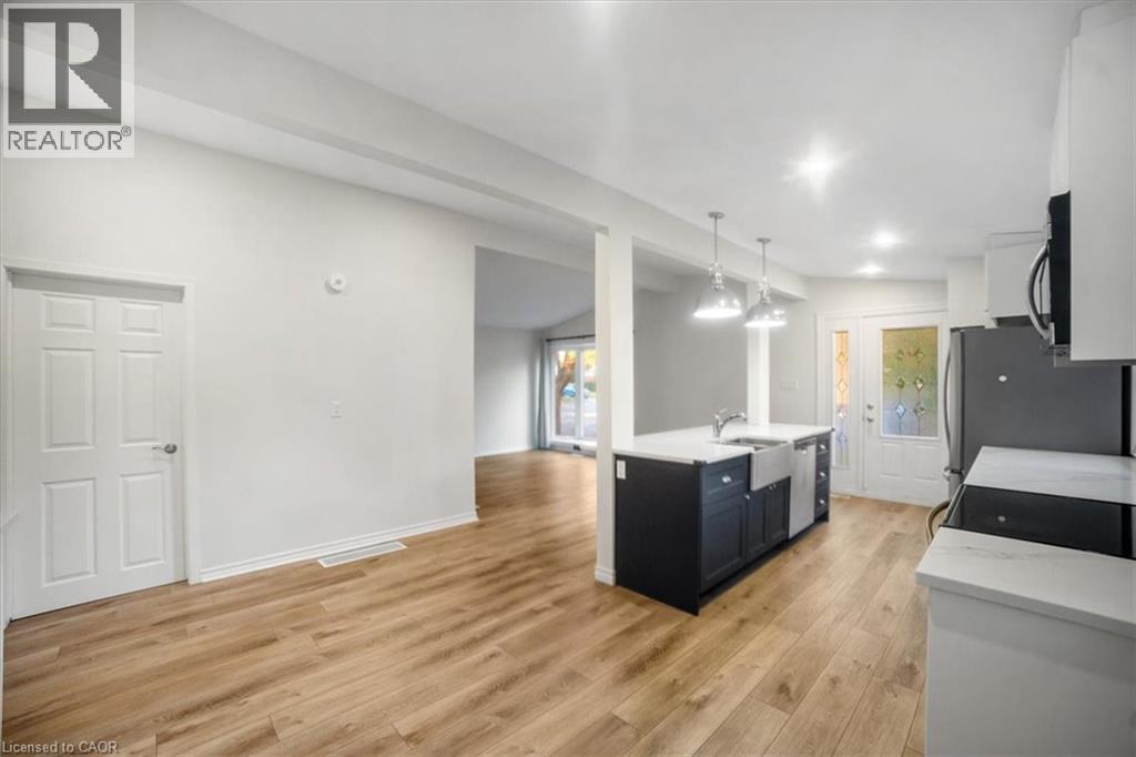 This beautifully updated bungalow in sought-after Elizabeth Gardens delivers outstanding flexibility for today’s lifestyle. With a separate entrance to the fully finished lower level and a dedicated laundry room on each level, it stands out as one of the best in-law arrangements available — ideal for multigenerational living, a private home office setup, or a shared investment property. Extensive renovations, totaling over $170,000 in the past four years, make this home truly move-in ready. Major upgrades completed in 2021 include a high-efficiency furnace, central air conditioning, hot water heater (all owned), a 200-amp electrical panel, two show-stopping new kitchens with quartz countertops and modern cabinetry, and fully renovated bathrooms on both levels. Luxury vinyl plank flooring flows seamlessly throughout, and select windows have also been replaced. In 2022, both the roof plywood and shingles were replaced, adding to long-term peace of mind. The main level offers a bright, open-concept design with cathedral ceilings, three spacious bedrooms, a modern kitchen, a large dinette, and a comfortable living room. The lower level provides two additional bedrooms, a second full kitchen, a renovated bathroom, its own laundry facilities, and a generous recreation room — the perfect setup for extended family, teenagers, or a separate workspace. Outdoors, the large rear yard is a blank canvas to make your own, while the oversized driveway easily accommodates up to six vehicles. Set on a quiet crescent, this home is just minutes to parks, schools, shopping, transit, and the Lake Ontario — offering an unbeatable blend of location, convenience, and lifestyle. Expect to be impressed. Great in-law suites are hard to find, but this one checks every box! (id:24334)