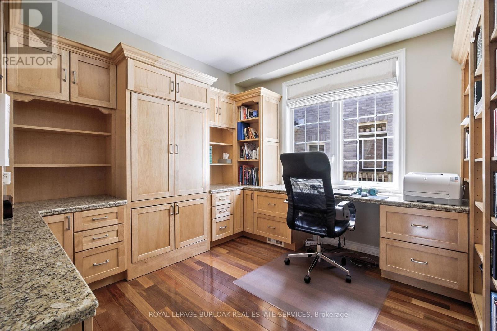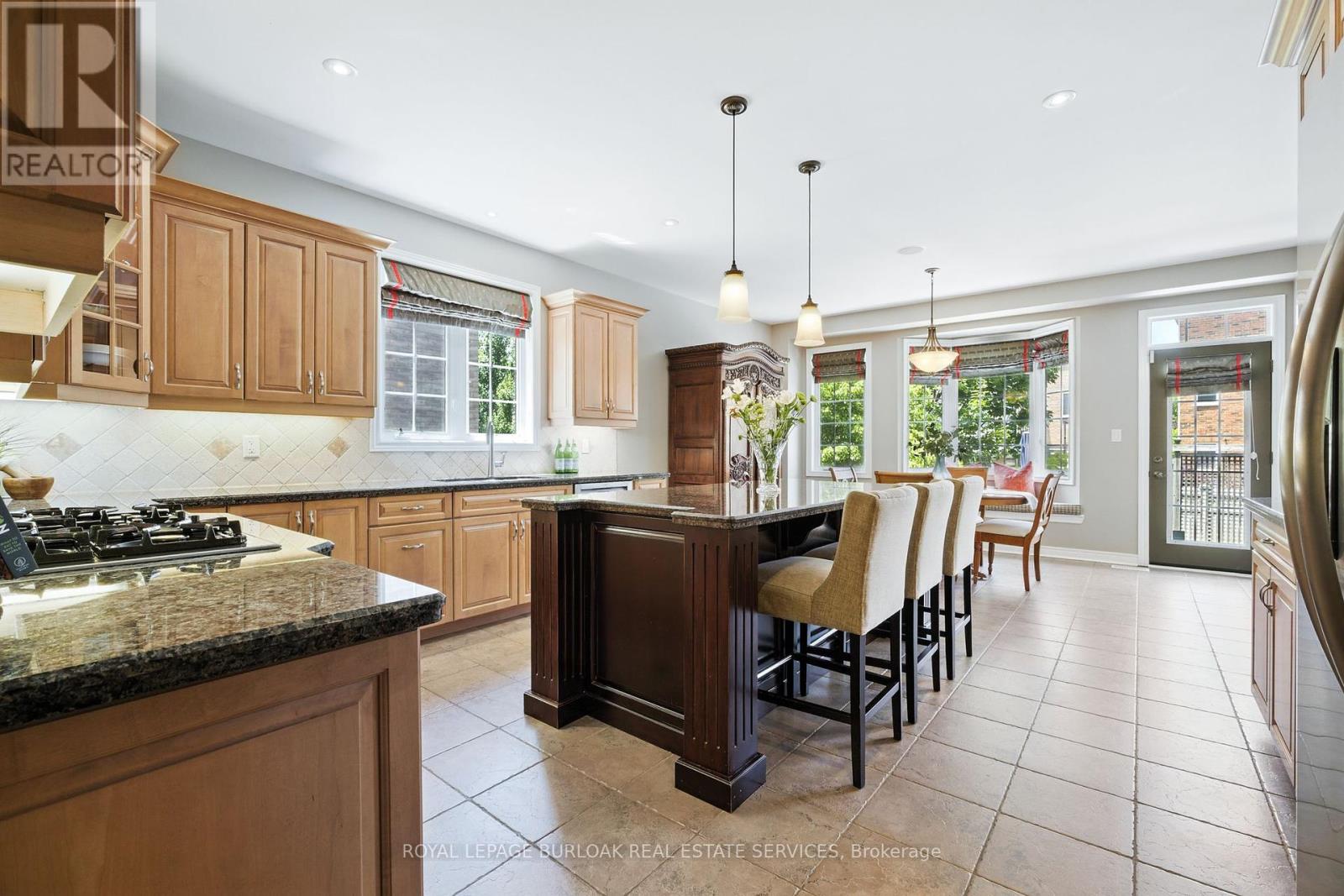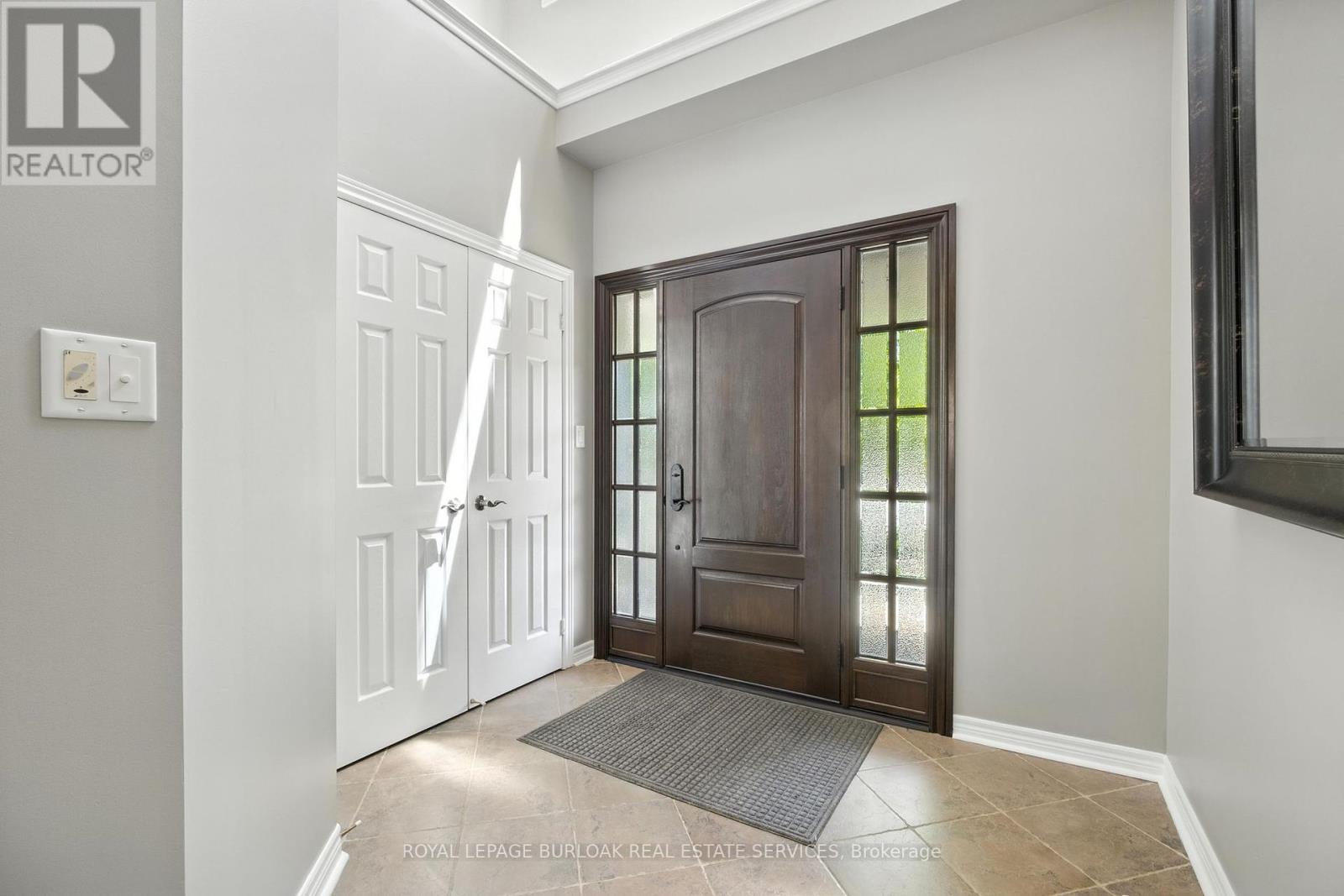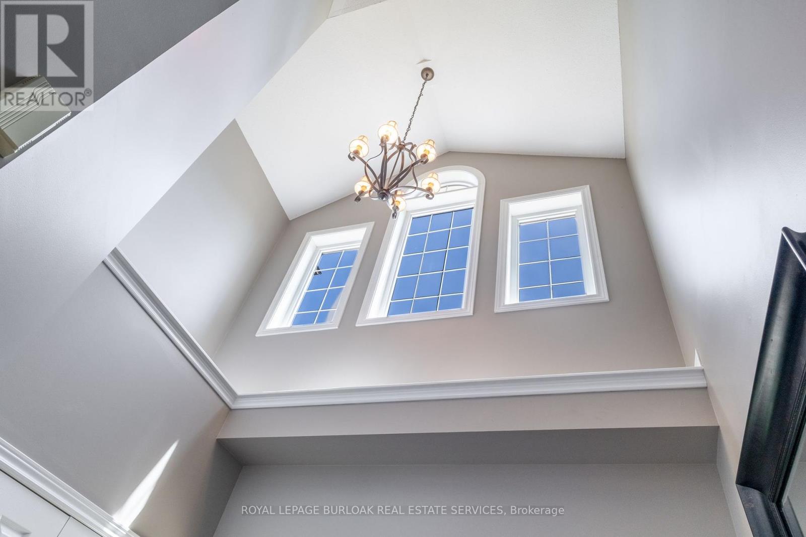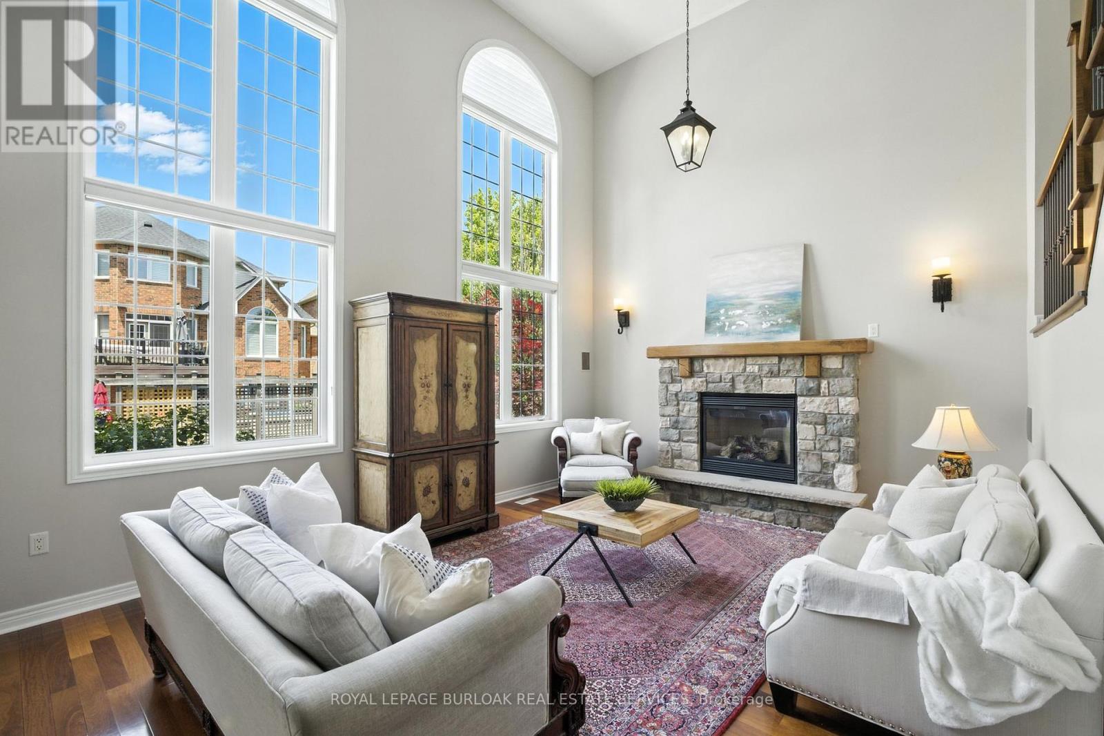 Exceptional 2-storey home with over 4,900 sq ft of carpet-free, finished living space, showcasing thoughtful design and meticulous attention to detail. Impressive stone and brick exterior, interlocking double driveway, patios, and elegant light scaping. Curb appeal is outstanding. Welcoming two-storey foyer flooded with natural light, leading to a spacious and open main floor layout. Elegant living room features a gas fireplace and crown moulding, while the formal dining room accommodates large gatherings ideal for entertaining. Grand staircase with Juliet balcony overlooks the impressive two-storey family room, with Palladian windows and a gas fireplace. The gourmet kitchen is a chefs dream, featuring a large island, granite countertops, marble backsplash, gas cooktop, double wall ovens, wine fridge, and abundant cabinetry. The bright breakfast area, with bay window and built-in bench seating, offers views of the private backyard patio. A main floor office with custom built-ins, powder room, and laundry room with garage access complete the level. A second staircase off the kitchen adds convenience and ease of flow. Upstairs, the luxurious principal suite includes a 5-piece ensuite with dual vanities, a soaker tub, separate shower, and a large walk-in closet. The second bedroom features a 4-piece ensuite. Third and fourth bedrooms share a convenient Jack-and-Jill bathroom. Bright, spacious, fully finished lower level has oversized windows, a large rec room with fireplace, fifth bedroom with ensuite privilege to a 4-piece bath, an exercise room, and a utility/storage area. Private backyard oasis with heated saltwater inground pool and water feature includes a new liner and heater. Expansive patio offers both a lounging area and a cozy sitting area. Located on a quiet crescent, this exceptional home is just minutes from top-rated schools, parks, trails, shopping, dining, and access to Hwy 407. Truly a rare find in one of Burlington's most desirable neighbourhoods. (id:24334)