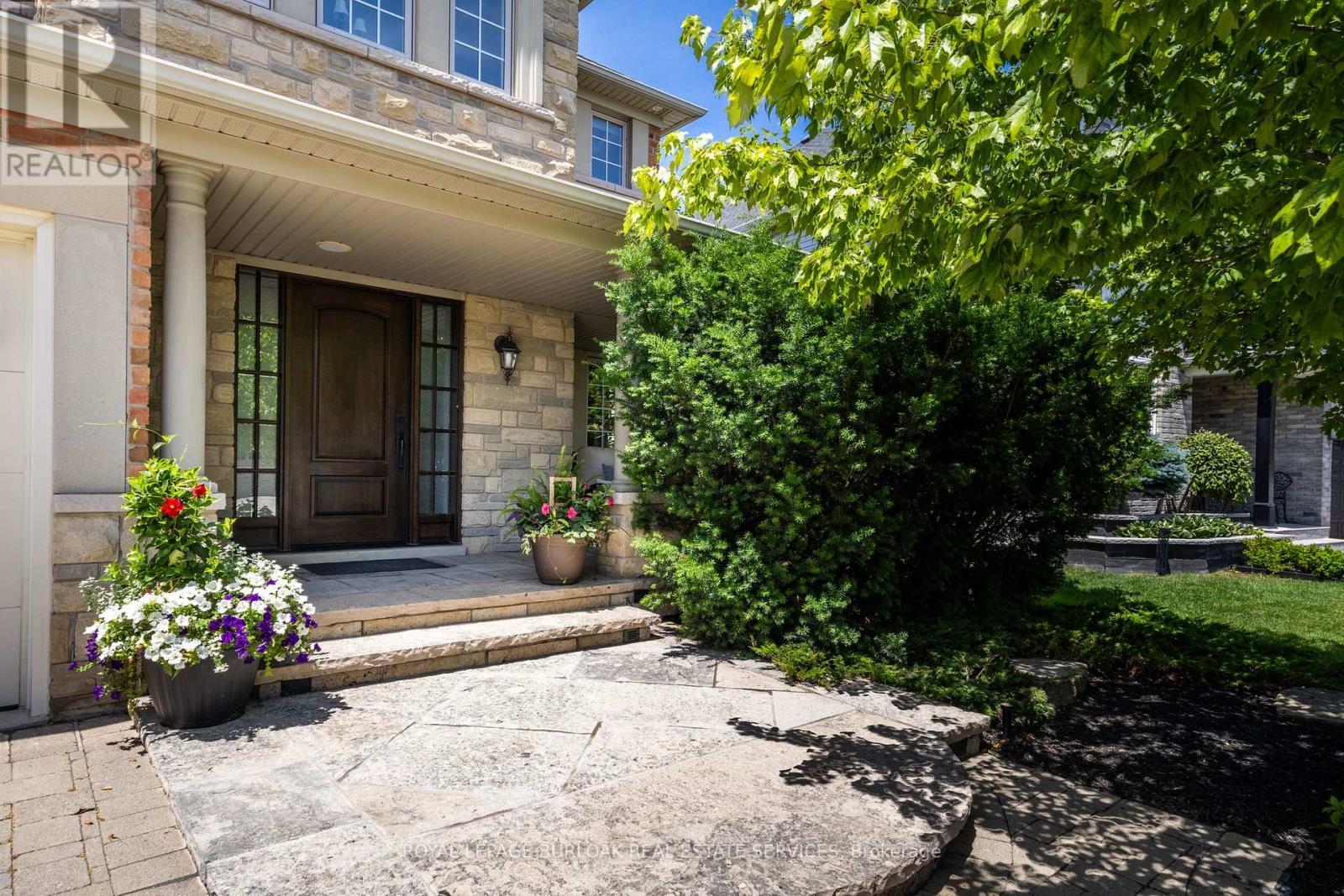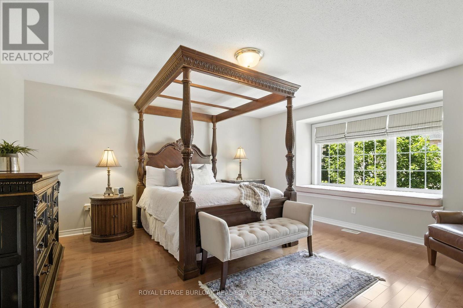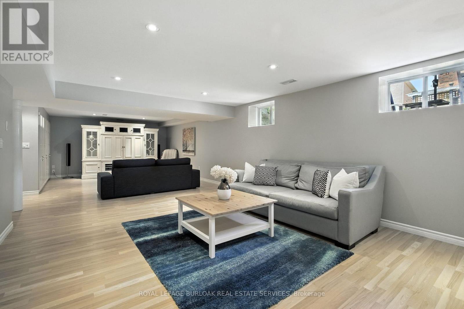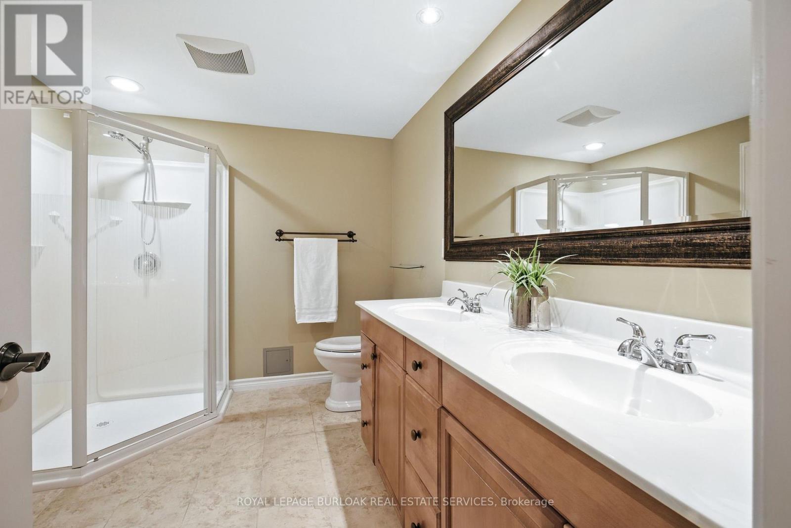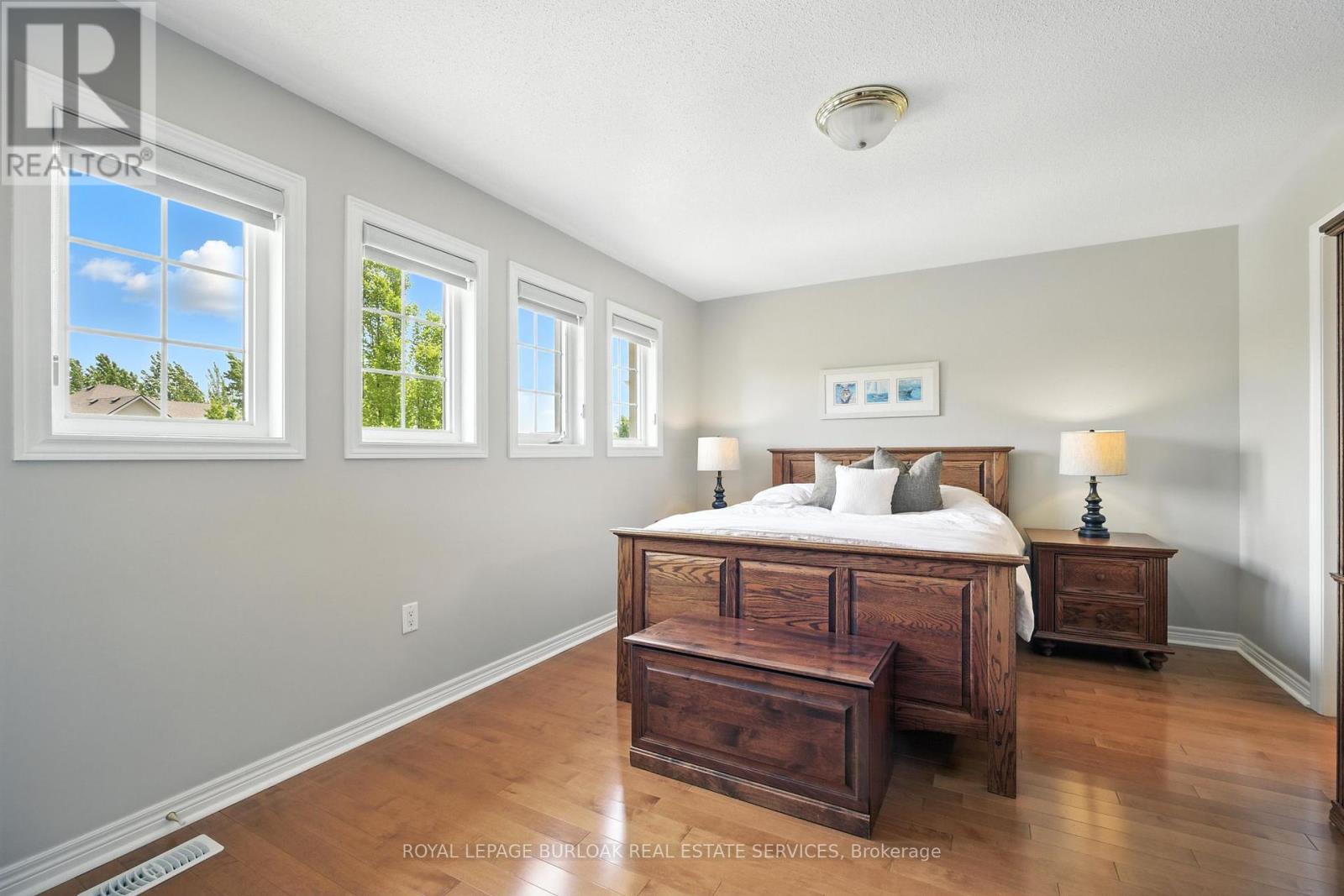 Exceptional 2-storey home with over 4,900 sq ft of carpet-free, finished living space, showcasing thoughtful design and meticulous attention to detail. Impressive stone and brick exterior, interlocking double driveway, patios, and elegant light scaping. Curb appeal is outstanding. Welcoming two-storey foyer flooded with natural light, leading to a spacious and open main floor layout. Elegant living room features a gas fireplace and crown moulding, while the formal dining room accommodates large gatherings ideal for entertaining. Grand staircase with Juliet balcony overlooks the impressive two-storey family room, with Palladian windows and a gas fireplace. The gourmet kitchen is a chefs dream, featuring a large island, granite countertops, marble backsplash, gas cooktop, double wall ovens, wine fridge, and abundant cabinetry. The bright breakfast area, with bay window and built-in bench seating, offers views of the private backyard patio. A main floor office with custom built-ins, powder room, and laundry room with garage access complete the level. A second staircase off the kitchen adds convenience and ease of flow. Upstairs, the luxurious principal suite includes a 5-piece ensuite with dual vanities, a soaker tub, separate shower, and a large walk-in closet. The second bedroom features a 4-piece ensuite. Third and fourth bedrooms share a convenient Jack-and-Jill bathroom. Bright, spacious, fully finished lower level has oversized windows, a large rec room with fireplace, fifth bedroom with ensuite privilege to a 4-piece bath, an exercise room, and a utility/storage area. Private backyard oasis with heated saltwater inground pool and water feature includes a new liner and heater. Expansive patio offers both a lounging area and a cozy sitting area. Located on a quiet crescent, this exceptional home is just minutes from top-rated schools, parks, trails, shopping, dining, and access to Hwy 407. Truly a rare find in one of Burlington's most desirable neighbourhoods. (id:24334)