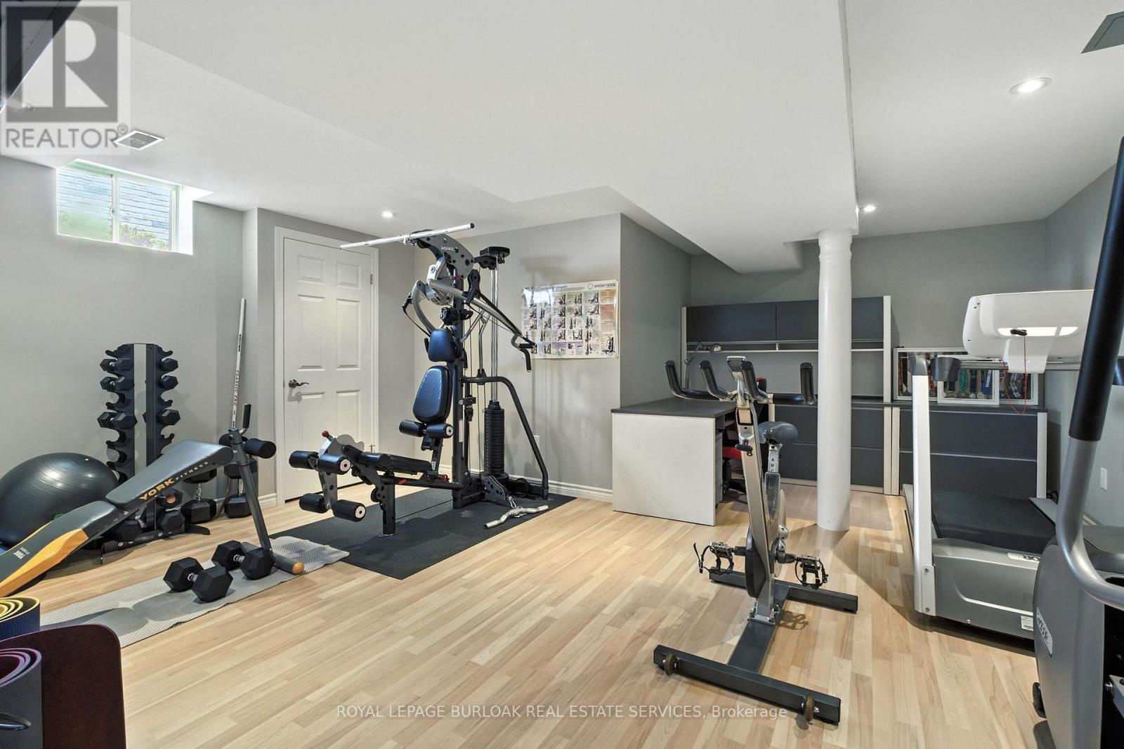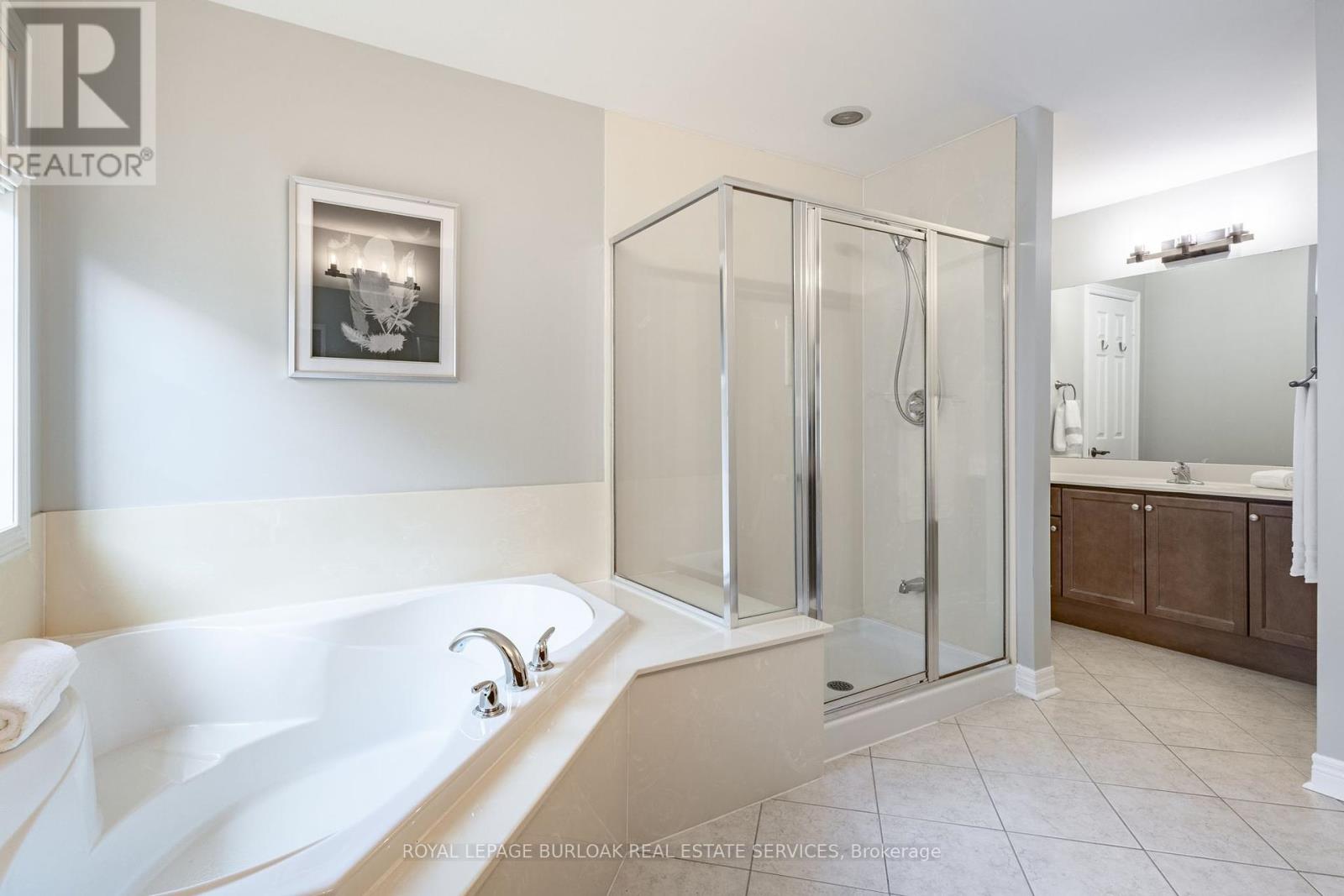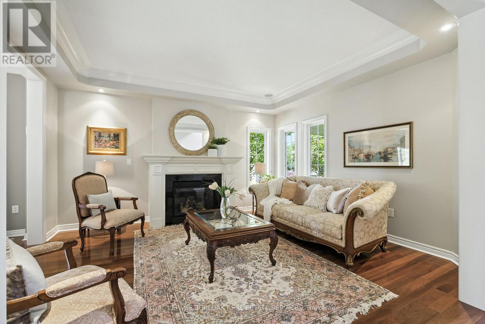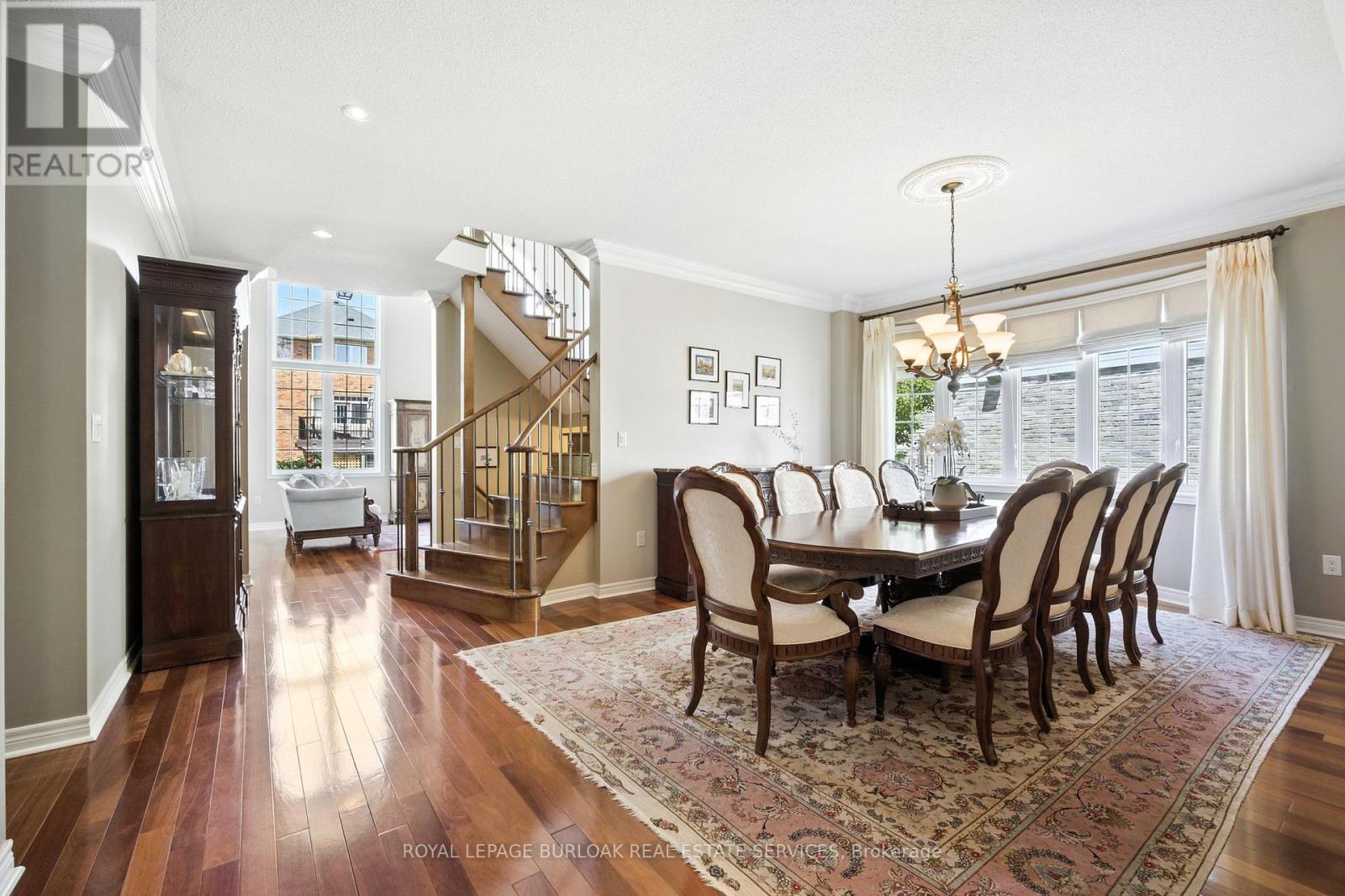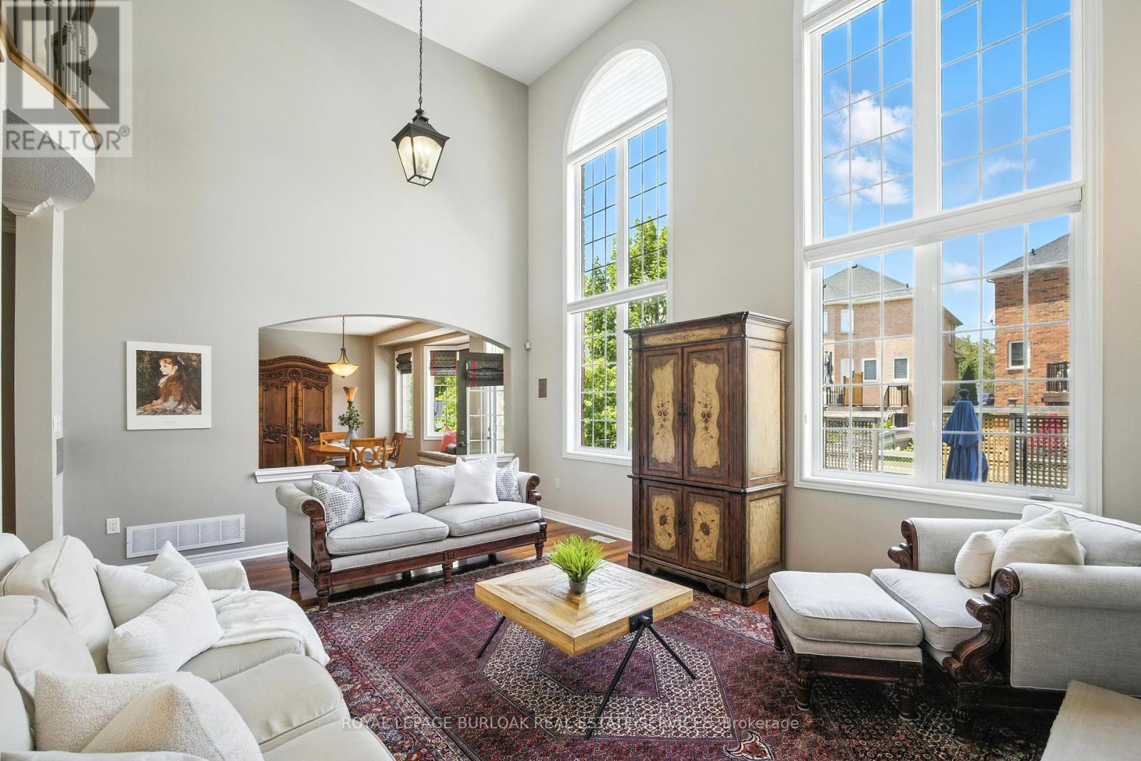 Exceptional 2-storey home with over 4,900 sq ft of carpet-free, finished living space, showcasing thoughtful design and meticulous attention to detail. Impressive stone and brick exterior, interlocking double driveway, patios, and elegant light scaping. Curb appeal is outstanding. Welcoming two-storey foyer flooded with natural light, leading to a spacious and open main floor layout. Elegant living room features a gas fireplace and crown moulding, while the formal dining room accommodates large gatherings ideal for entertaining. Grand staircase with Juliet balcony overlooks the impressive two-storey family room, with Palladian windows and a gas fireplace. The gourmet kitchen is a chefs dream, featuring a large island, granite countertops, marble backsplash, gas cooktop, double wall ovens, wine fridge, and abundant cabinetry. The bright breakfast area, with bay window and built-in bench seating, offers views of the private backyard patio. A main floor office with custom built-ins, powder room, and laundry room with garage access complete the level. A second staircase off the kitchen adds convenience and ease of flow. Upstairs, the luxurious principal suite includes a 5-piece ensuite with dual vanities, a soaker tub, separate shower, and a large walk-in closet. The second bedroom features a 4-piece ensuite. Third and fourth bedrooms share a convenient Jack-and-Jill bathroom. Bright, spacious, fully finished lower level has oversized windows, a large rec room with fireplace, fifth bedroom with ensuite privilege to a 4-piece bath, an exercise room, and a utility/storage area. Private backyard oasis with heated saltwater inground pool and water feature includes a new liner and heater. Expansive patio offers both a lounging area and a cozy sitting area. Located on a quiet crescent, this exceptional home is just minutes from top-rated schools, parks, trails, shopping, dining, and access to Hwy 407. Truly a rare find in one of Burlington's most desirable neighbourhoods. (id:24334)