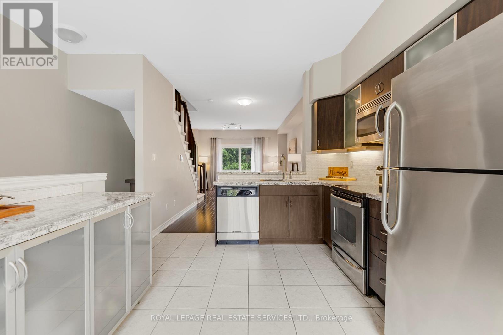 Exceptional 2-Bedroom, 2-Bath Freehold Townhome in Burlingtons Sought-After Shoreacres Neighbourhood! This well-appointed freehold townhome offers a spacious and functional layout, ideal for professionals, downsizers, or first-time buyers. Located in a quiet, well-maintained enclave with low POTL fees, this home combines the benefits of freehold ownership with minimal maintenance responsibilities. The main level features a bright, open-concept living and dining area, perfect for entertaining, with a walkout to a balcony overlooking your beautiful treed backyard. The kitchen is outfitted with granite countertops, a bay window for natural light, and ample cabinetry for exceptional storage.Upstairs, you'll find two generously sized bedrooms, including one with a Murphy bed for added versatility. The ground-level has additional living space that can be used as a family room or office space with walkout to a private patio. Freshly installed new carpet provides a clean and updated look. Additional highlights include a new furnace and air conditioner (2024), ensuring year-round comfort and efficiency. This prime location offers excellent commuter access with proximity to the GO Train, QEW, and major highways, while also being just minutes to parks, schools, shopping, and local amenities. A rare opportunity to enjoy comfortable, low-maintenance living in one of Burlingtons most desirable communities. (id:24334)