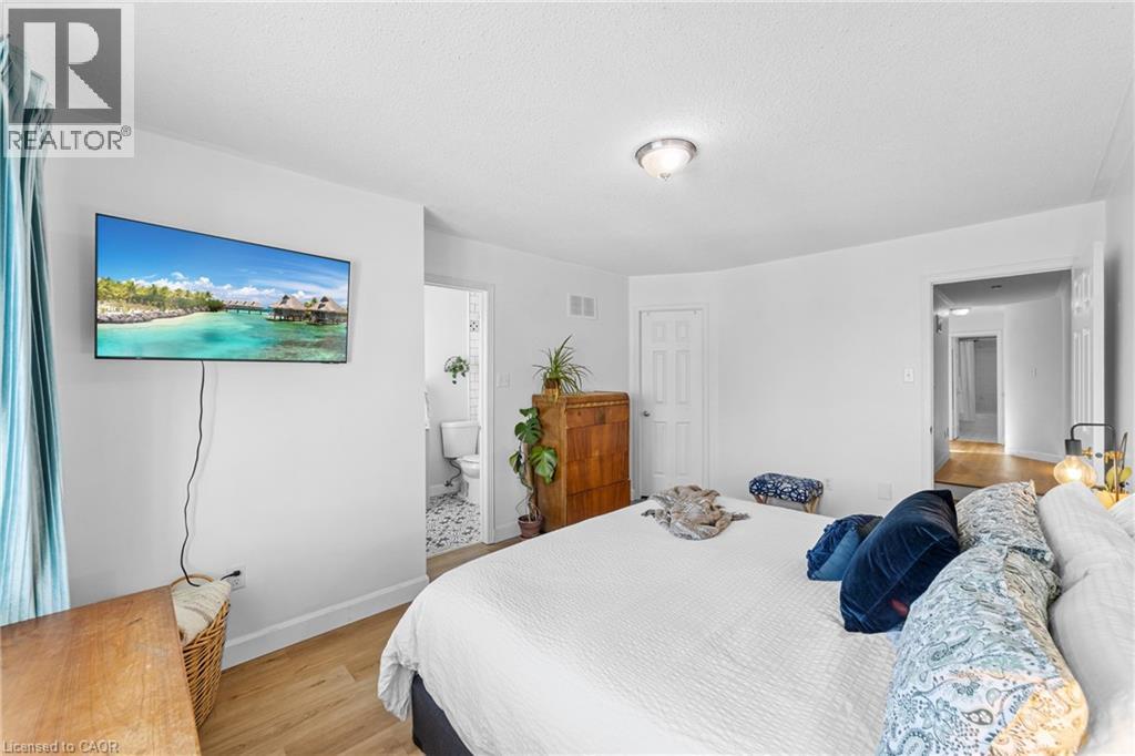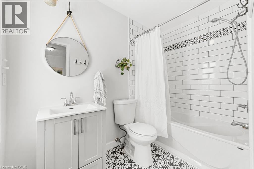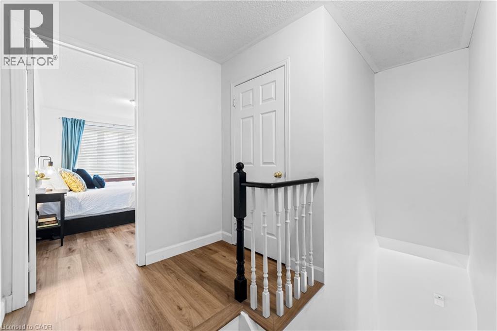 Bright 3-bedroom, 2.5-bath end-unit freehold townhome located on a quiet street. This home offers several windows throughout and a sun-filled main level, freshly painted throughout. The kitchen is rear facing overlooking the back yard and offers butcher block style countertops and a farmhouse style sink giving this space a unique vibe while providing a functional, welcoming space for everyday living. The living room features a cozy gas fireplace, offering enviable warmth on those winter evenings. The upper level has newer flooring and generously sized bedrooms. The unique second-floor layout creates separation between the primary suite and the additional bedrooms, ideal for privacy. The primary bedroom includes a walk-in closet and a very nicely updated separate ensuite. Other recent upgrades include a newer furnace and water heater, newer rear deck, and a newer garage door. Take a walk to the lower level finished basement with rec room, cold cellar area and decent storage space to give you the room you need for years to come. This home shows well and is very well kept, which means this is the ideal place to call home. This property is conveniently located close to Appleby GO, restaurants, Centennial Bike Path, and excellent schools just to name a few—this home combines comfort, functionality, and an unbeatable location. (id:24334)